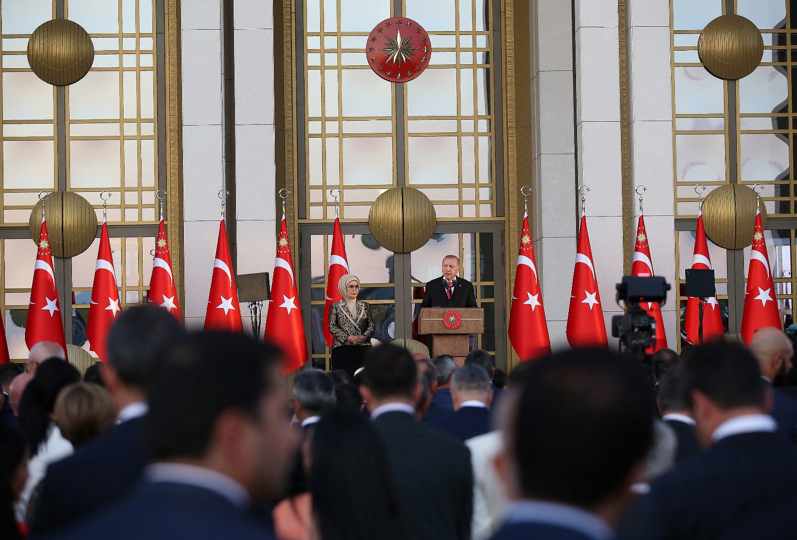 Resepsiyona katılanlara teşekkür eden Erdoğan, 30 Ağustos Zafer Bayramı'nı kutladı.
