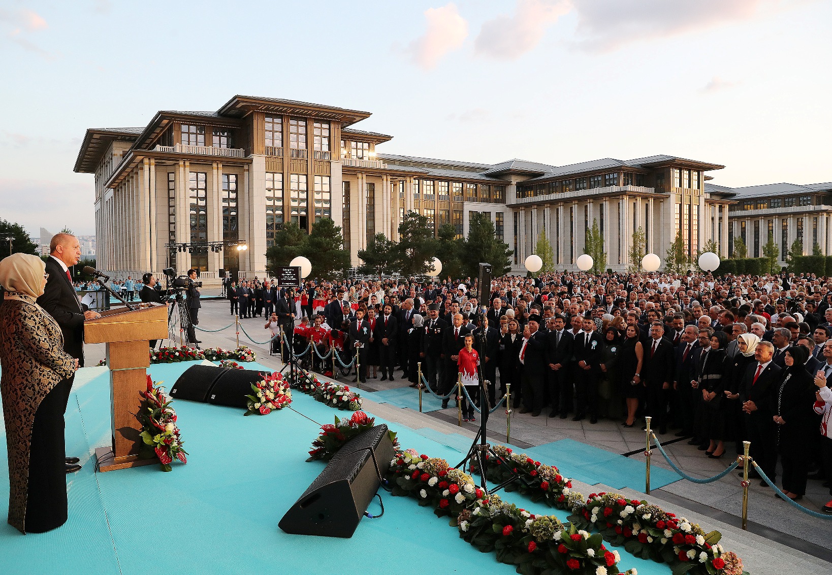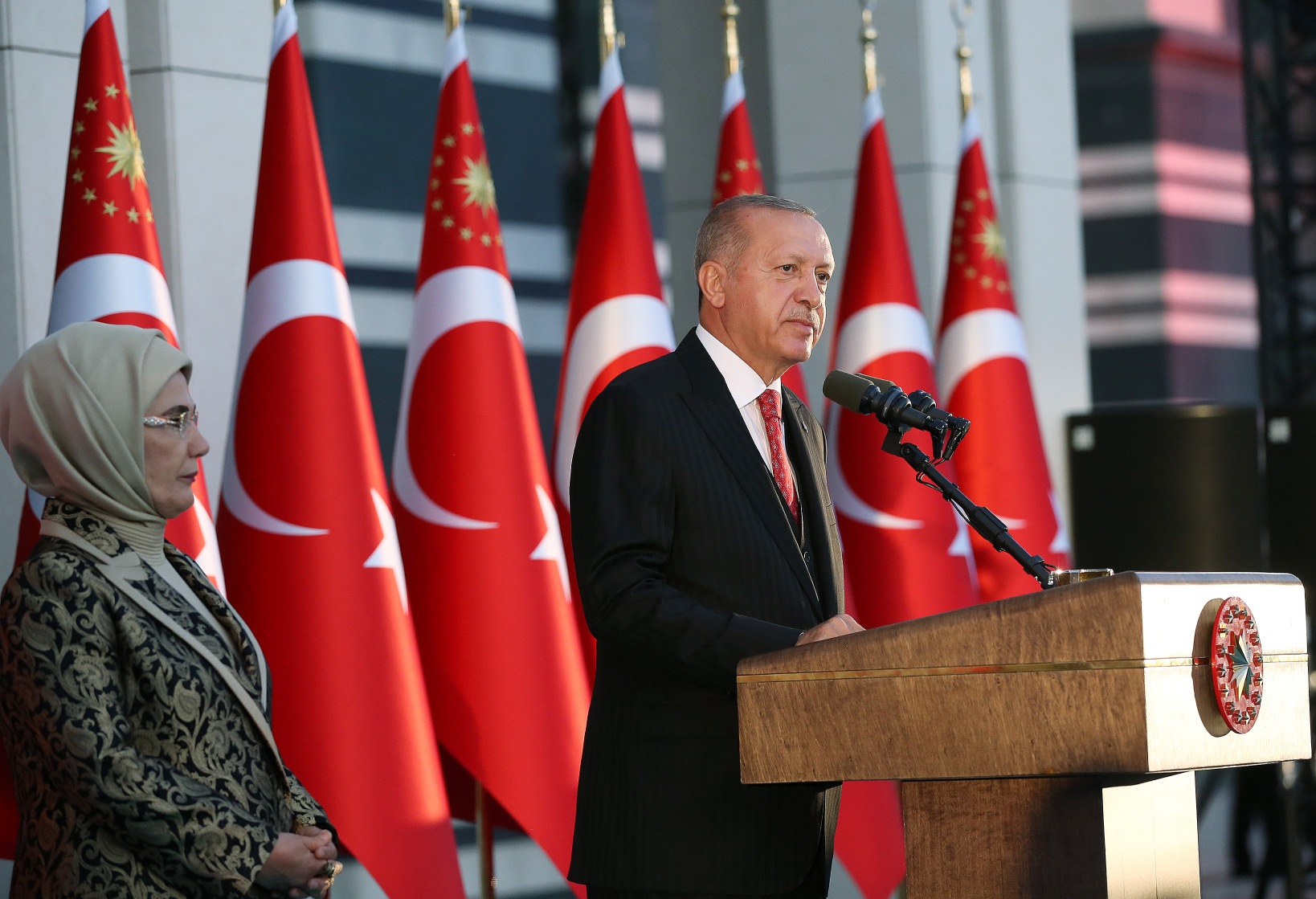 Cumhurbaşkanı Recep Tayyip Erdoğan, Cumhurbaşkanlığı Külliyesi'nde düzenlenen 30 Ağustos Zafer Bayramı resepsiyonundaki konuşmasına, kendisini dinleyenleri selamlayarak başladı.