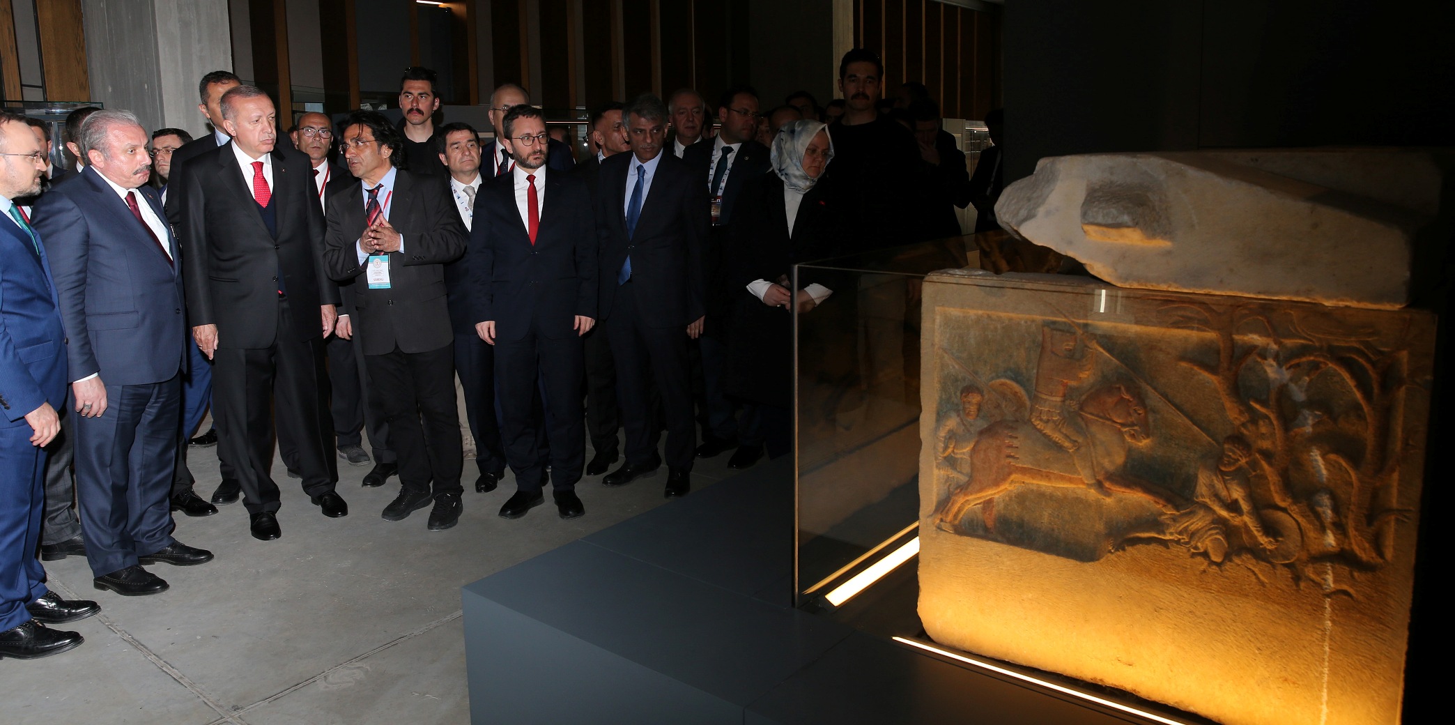 Cumhurbaşkanı Erdoğan, hükümet olarak son 17 yılda bu alanda gerçekten büyük çaba harcadıklarının altını çizerek, "Türk müzeciliğini güçlendirmek için pek çok adım attık. Ülke genelinde 142 müzemizi yeniledik, 52 yeni müze açtık. Koleksiyonuyla dünyanın sayılı müzeleri arasında yer alan Anadolu Medeniyetleri Müzesi'ni restore ettik. Böylece 2002 yılında müze ve ören yerleri ziyaretçi sayısını 7,4 milyondan 2018 yılında 28,2 milyona ulaştırdık." bilgilerini paylaştı.
