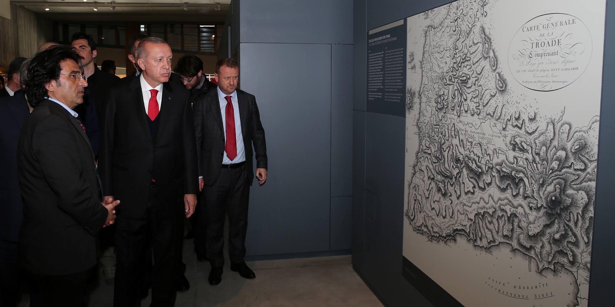 Erdoğan, Türkiye'den yurt dışına kaçırılan eserleri tekrar ait oldukları yere geri getirmenin mücadelesini de verdiklerini bildirerek, "Açılışını yapacağımız Troya Müzesi tarihimizi gelecek kuşaklara en güzel biçimde taşıma çabamızın son örneğidir." şeklinde konuştu.
