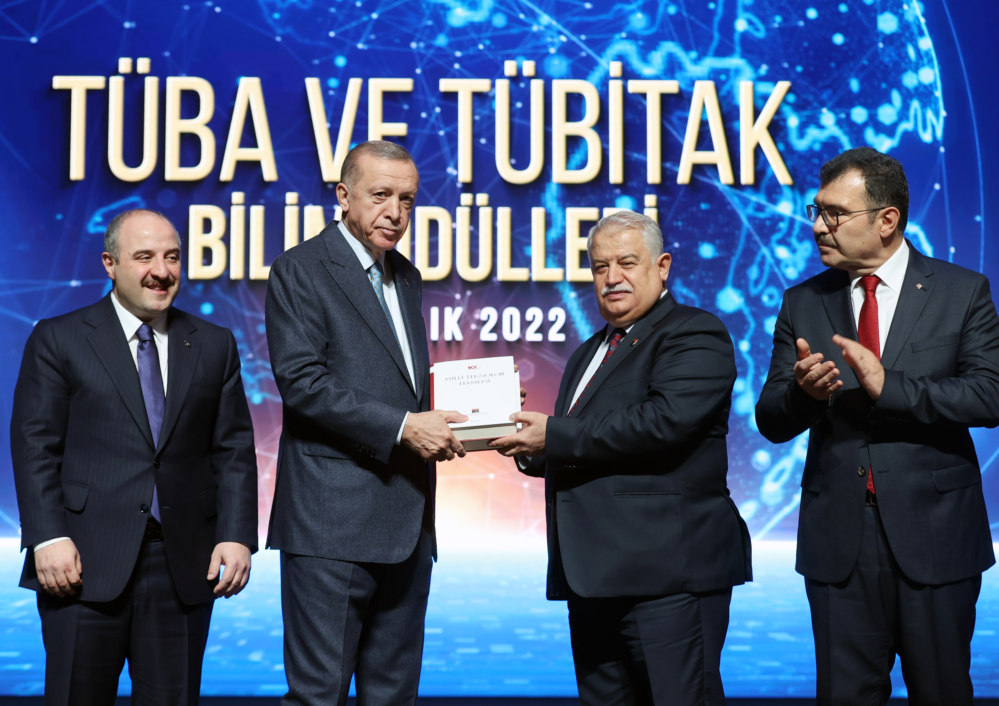 Ödül sistemini, bilim insanları için bir motivasyon ve teşvik kaynağı olarak değerlendirdiklerini belirten Cumhurbaşkanı Erdoğan, 2022 TÜBA ve TÜBİTAK Bilim Ödülleri’nin bilim camiasına hayırlı olmasını dileyerek ödül alan bilim insanlarını tekrar tebrik etti. Cumhurbaşkanı Erdoğan, "Ülkemiz, millî teknoloji hamlesi rehberliğinde gerçekleştirdiği çalışmalarla dünyanın ilk 10 ekonomisi arasına girme hedefine adım adım yaklaşıyor. Biz siyasi bağımsızlığın, teknolojik bağımsızlıktan geçtiğine samimiyetle inanıyoruz. Bilim ve teknolojiyi Türkiye'nin hedeflerine ulaşmasında en önemli araç, en etkili imkân olarak görüyoruz." dedi.