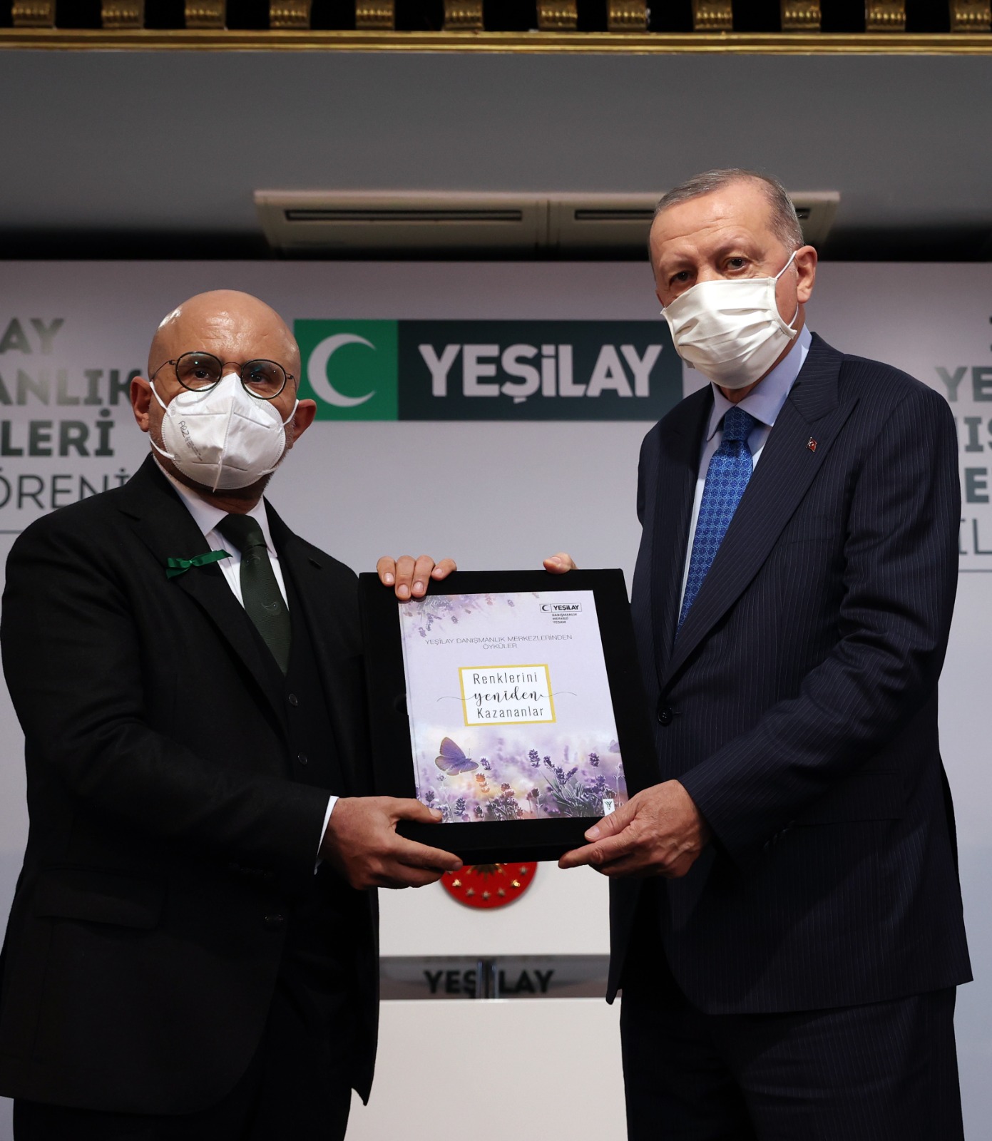 Konuşmasının ardından Cumhurbaşkanı Erdoğan'a, Yeşilay Genel Başkanı Mücahit Öztürk tarafından Yeşilay Danışmanlık Merkezi’nden (YEDAM) destek alan bağımlıların hikâyelerinden oluşan "Renklerini Yeniden Kazananlar" kitabının ilk nüshası hediye edildi.