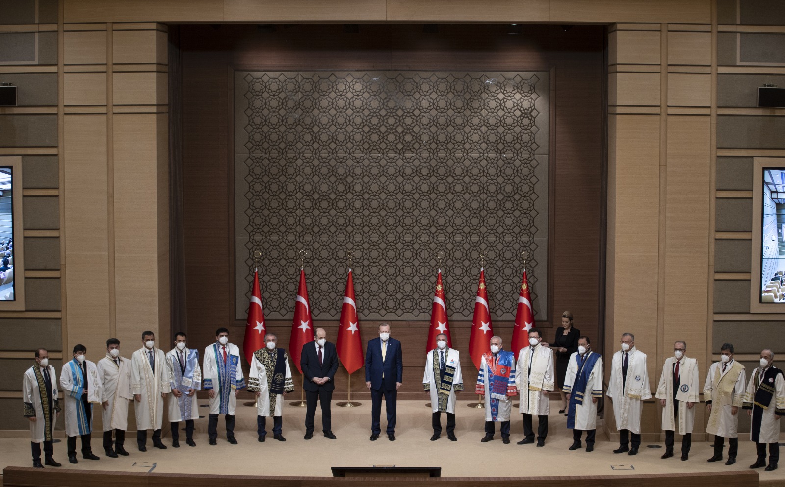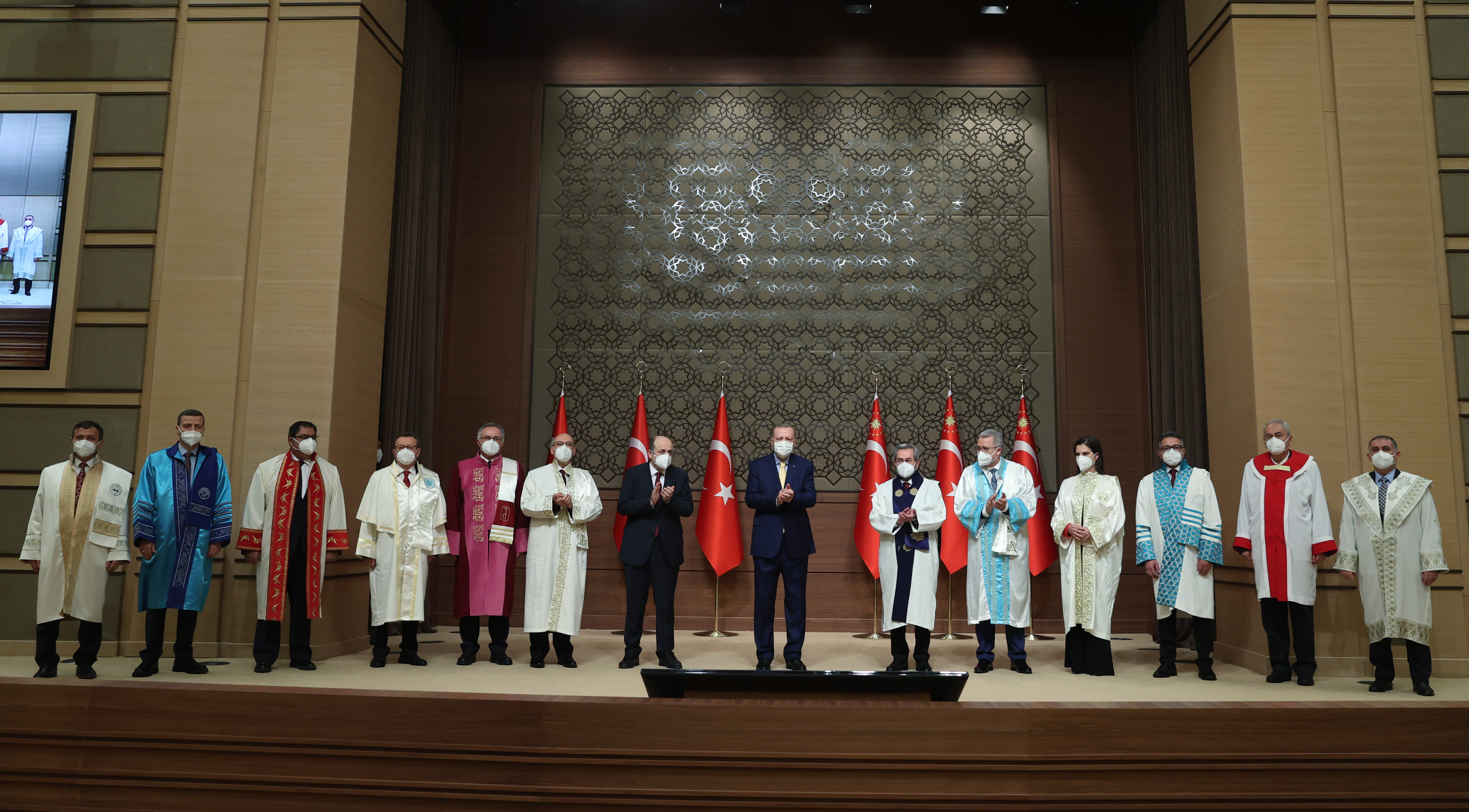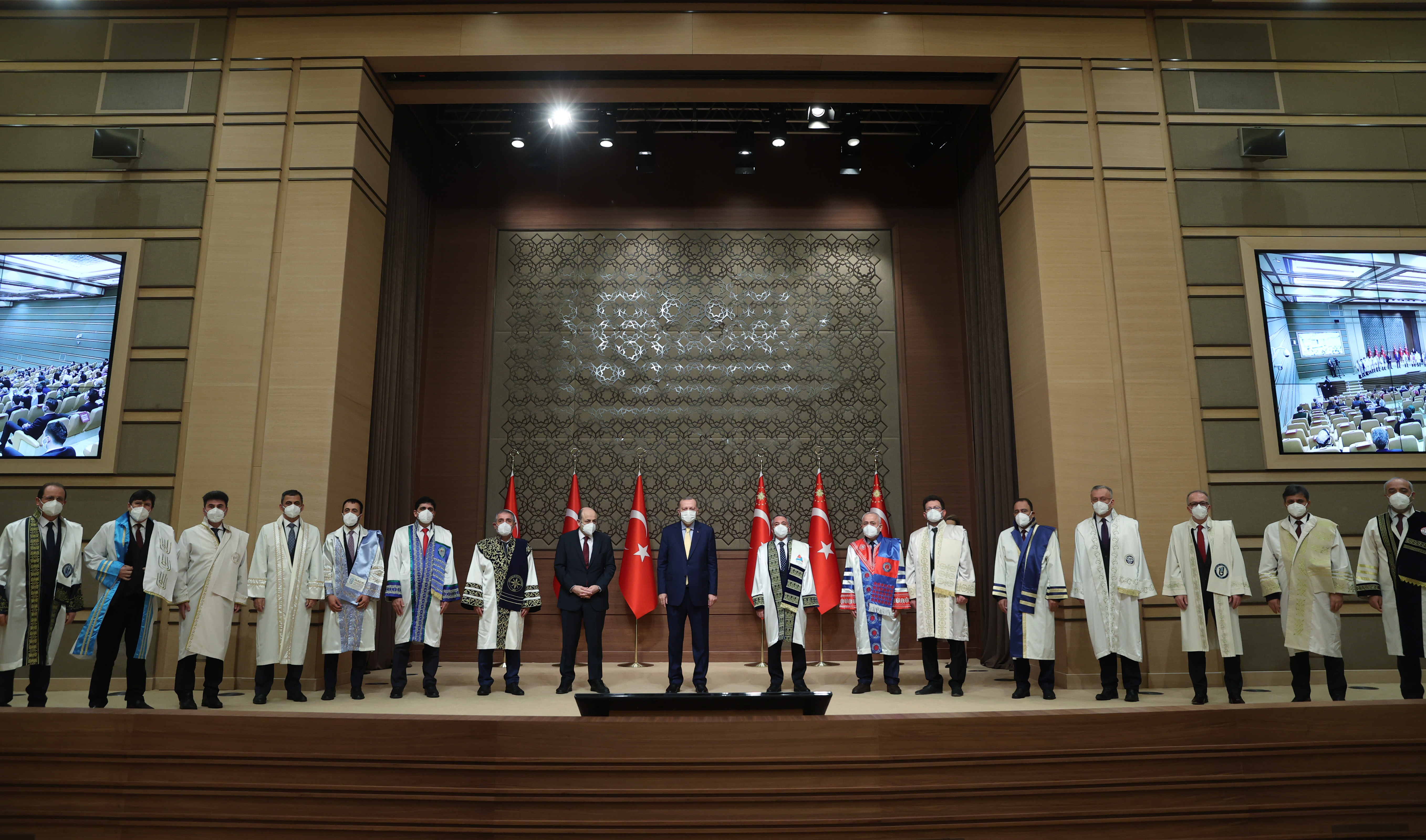 Cumhurbaşkanı Erdoğan, konuşmasının ardından kıdemli üniversitelerin rektörleri ve genç üniversitelerin rektörleri ile ayrı ayrı aile fotoğraf çektirdi.