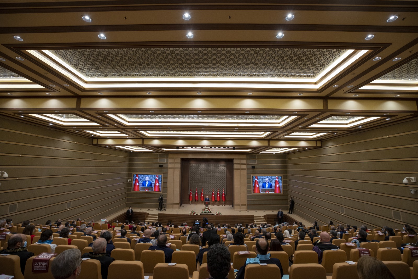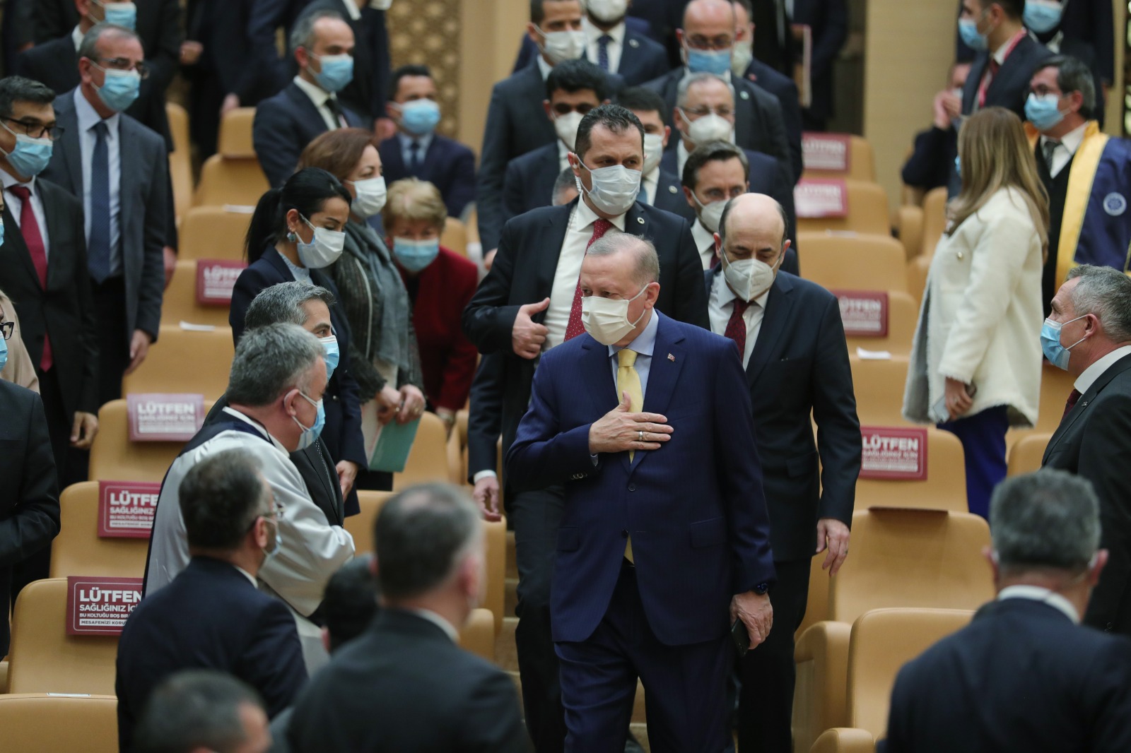 Törene, Cumhurbaşkanı Yardımcısı Fuat Oktay, Aile Çalışma ve Sosyal Hizmetler Bakanı Zehra Zümrüt Selçuk, Gençlik ve Spor Bakanı Mehmet Muharrem Kasapoğlu, Milli Savunma Bakanı Hulusi Akar, Tarım ve Orman Bakanı Bekir Pakdemirli, Sanayi ve Teknoloji Bakanı Mustafa Varank, AK Parti İzmir Milletvekili Binali Yıldırım, Cumhurbaşkanlığı İletişim Başkanı Fahrettin Altun, YÖK Başkanı Prof. Dr. Yekta Saraç ve YÖK üyeleri katıldı.