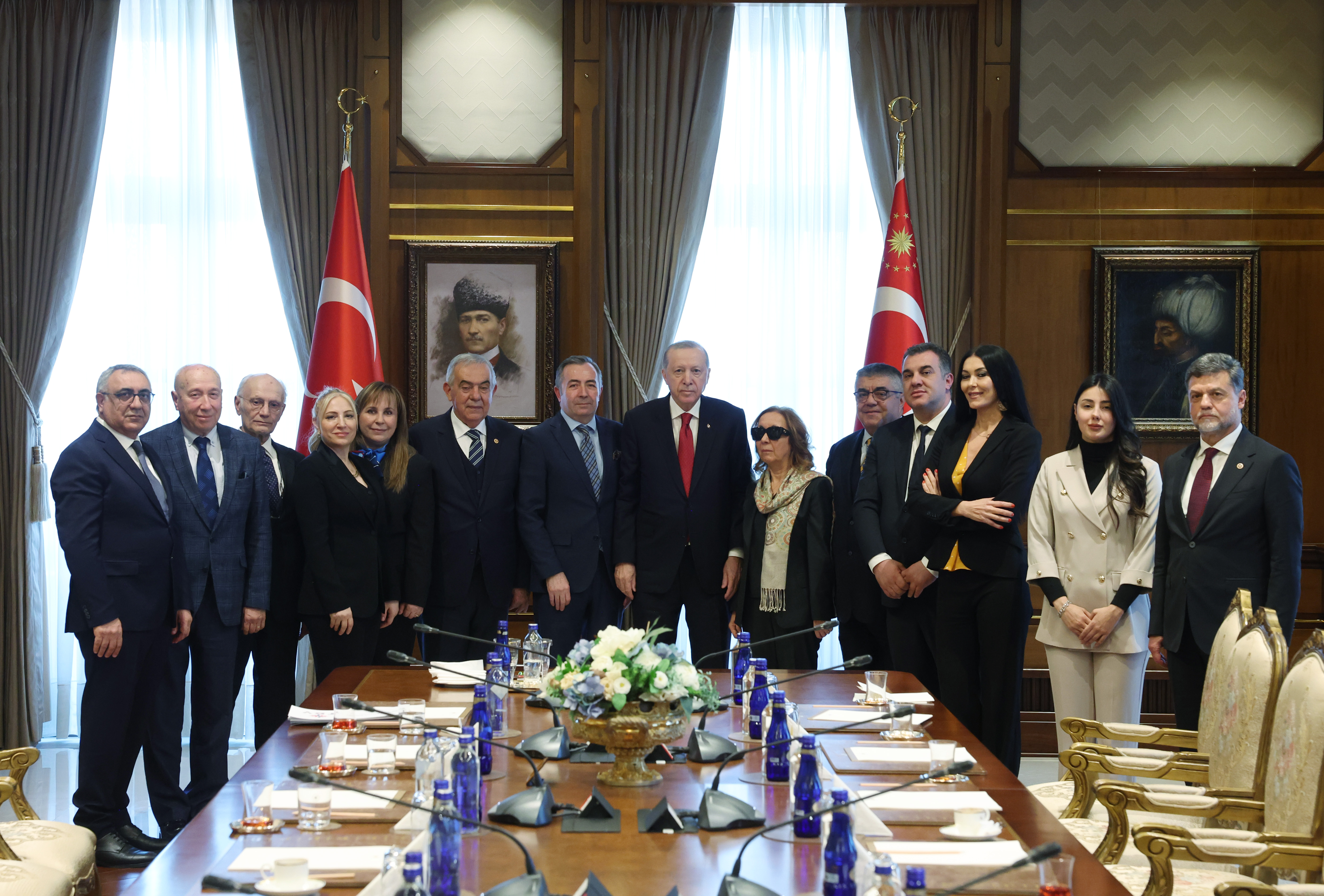Cumhurbaşkanı Recep Tayyip Erdoğan, Baki Mert başkanlığındaki Türk Demokrasi Vakfı heyetini Cumhurbaşkanlığı Külliyesinde kabul etti. Kabulde, Cumhurbaşkanlığı İletişim Başkanı Burhanettin Duran da yer aldı.