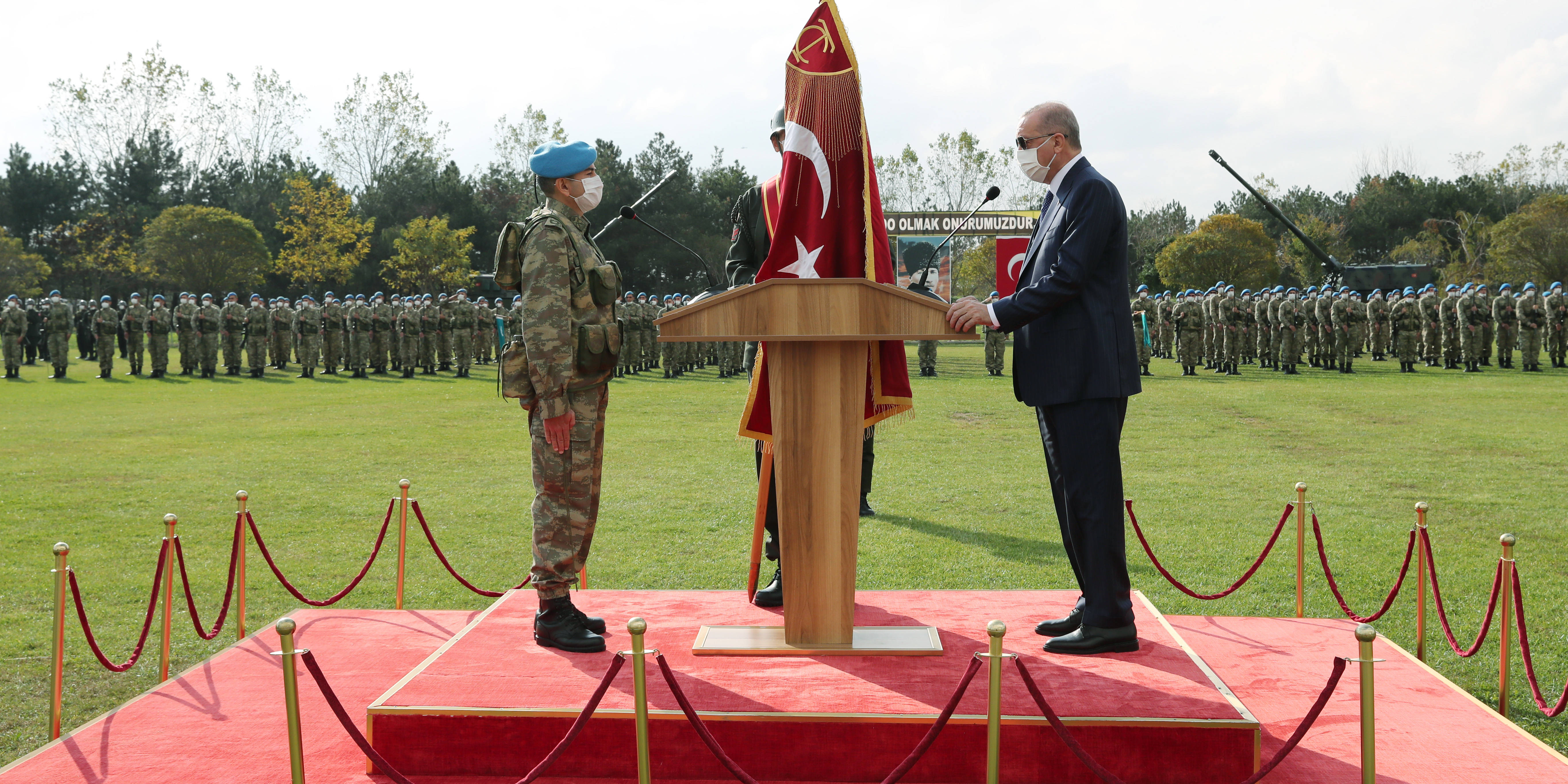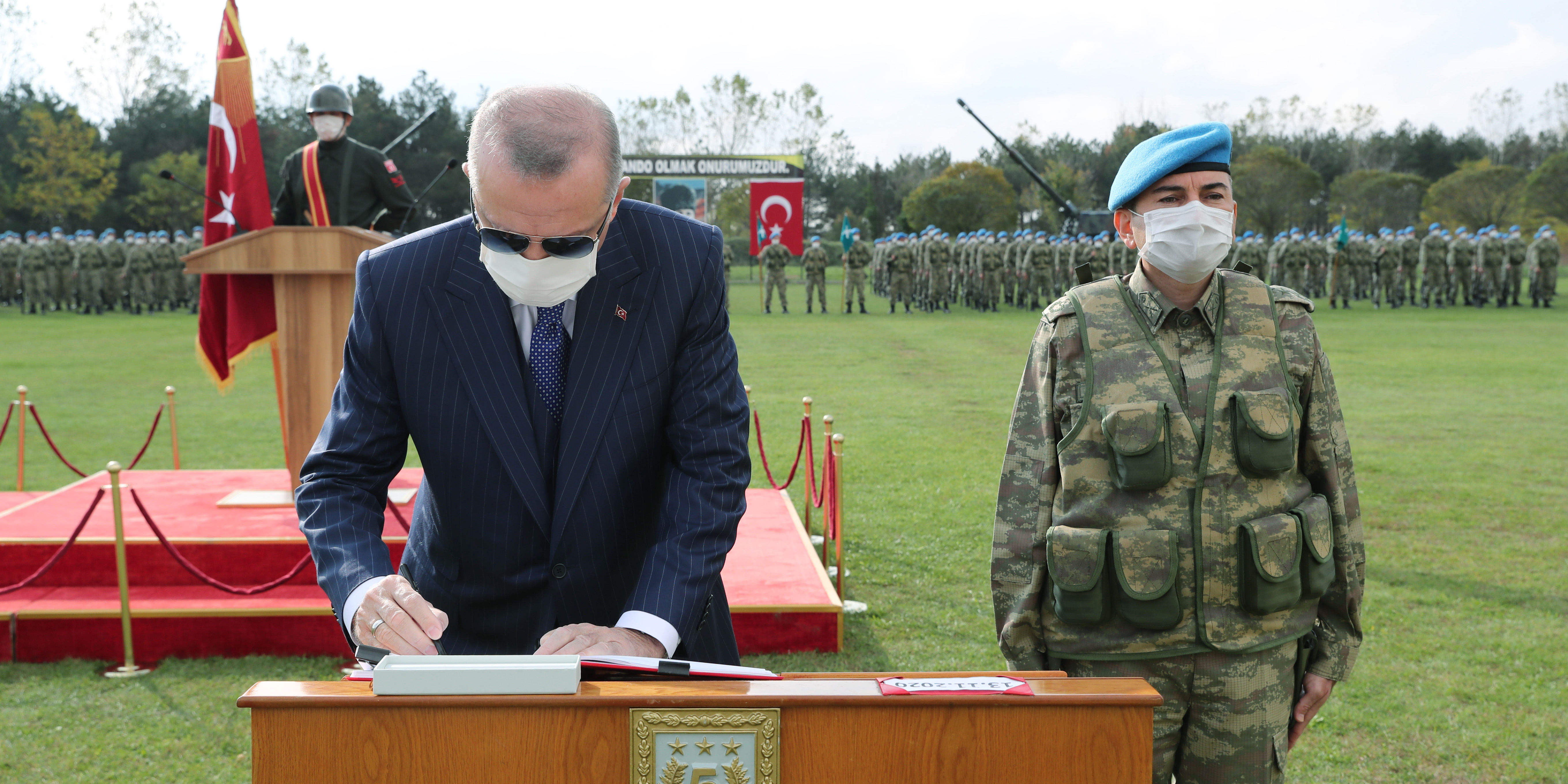 105. Topçu Alay Komutanlığı'na geçen Cumhurbaşkanı Erdoğan, burada gerçekleşen 41. Komando Tugay Komutanlığı Sancak Verme Töreni'ne katıldı.