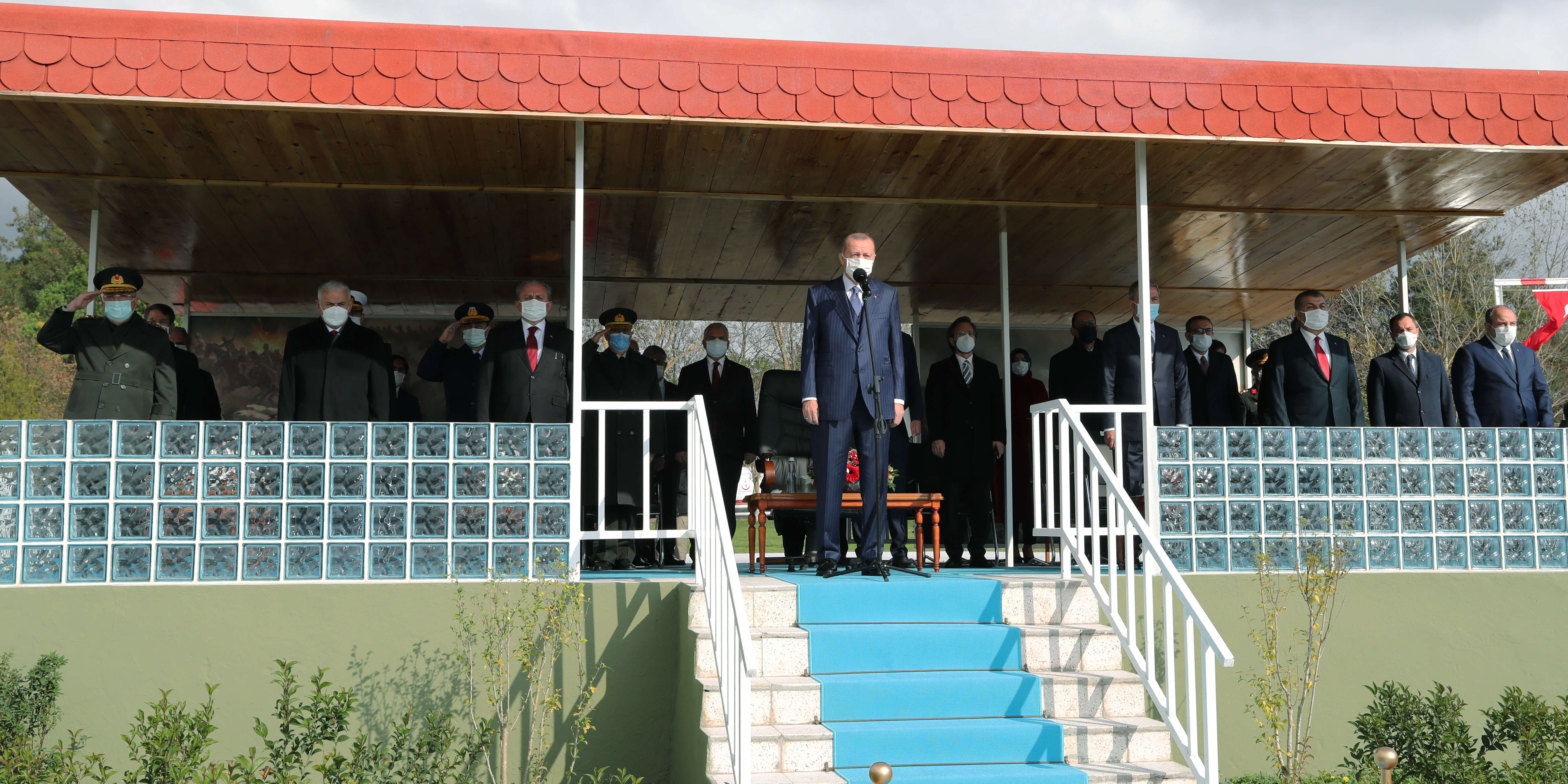 Cumhurbaşkanı Recep Tayyip Erdoğan, Türk ordusunun hiçbir birliğinin sancağının, son neferi de can vermeden toprağa düşmediğini belirterek, "Vatan topraklarında bin yıldır kesintisiz devam eden mücadelemizin her anında, her cephesinde ecdadımız bu anlayışla nice destanlar yazmıştır. Bugün de sizler elde ettiğiniz zaferlerle o şanlı ecdadın, şanlı torunları olduğunuzu her gün, yeniden ispatlıyorsunuz. Böyle bir ordunun başkomutanı sıfatı taşıyor olmaktan daha büyük bir onur, daha büyük bir mutluluk yoktur." dedi.