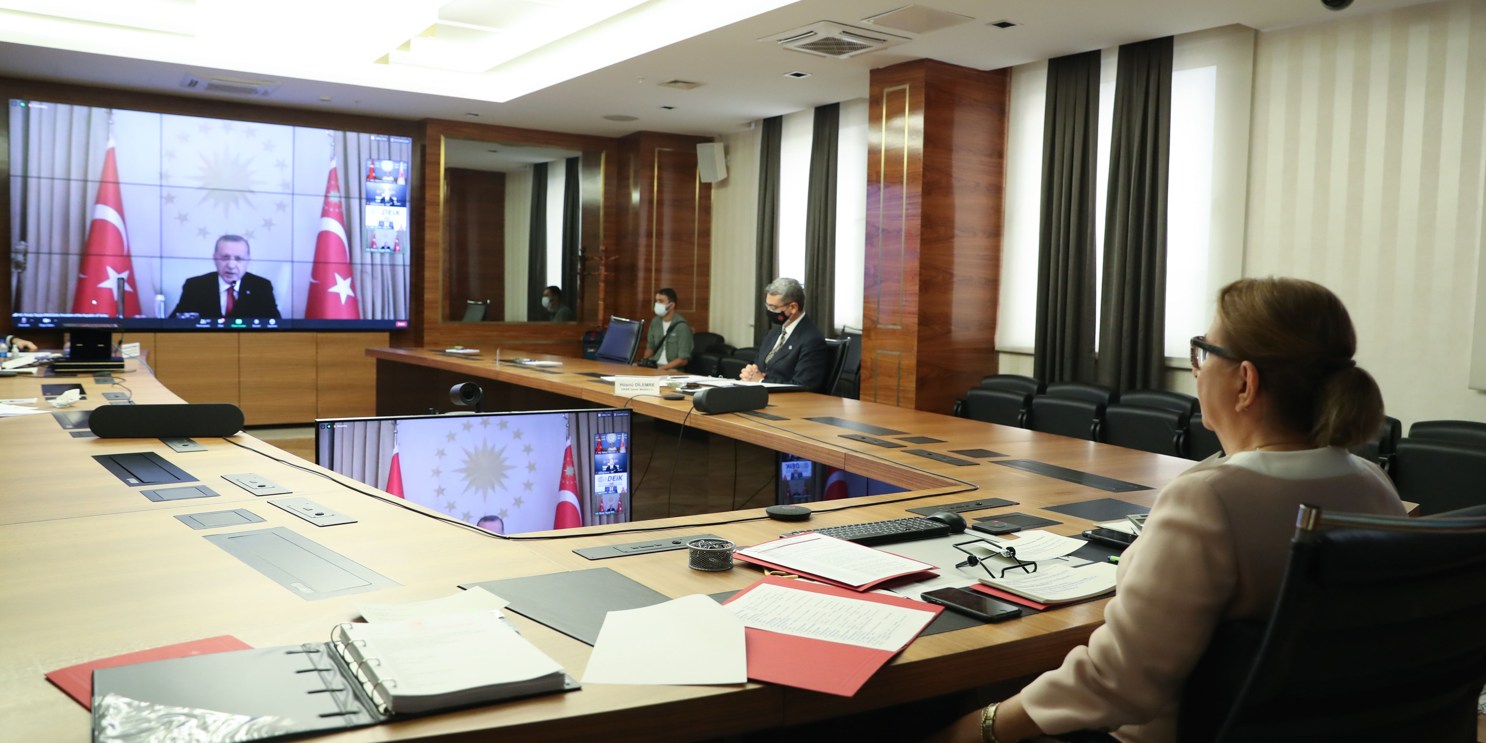 Salgınla mücadele ederken sosyoekonomik gerçeklikleri de bir kenara bırakamayacaklarını belirten Erdoğan, iktisadi hayatın ve ticaretin devam ettirilmesinin, salgının etkilerini en aza indirebilmek için hayati öneme sahip olduğunu söyledi.