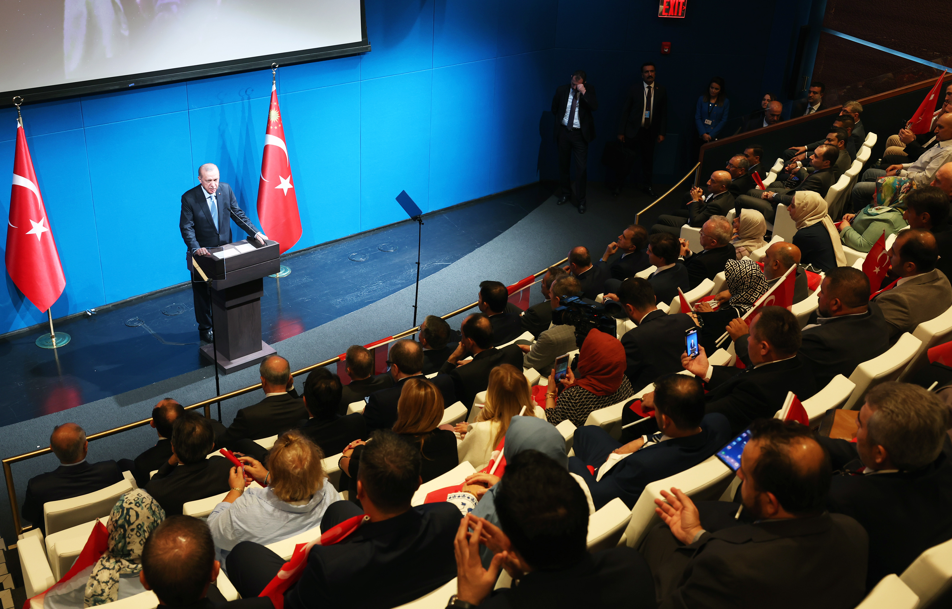 Birleşmiş Milletler (BM) 77. Genel Kurulu'na katılmak üzere New York'ta bulunan Cumhurbaşkanı Recep Tayyip Erdoğan, ABD'de yaşan Türk vatandaşları ile Türkevi'nde bir araya geldi.