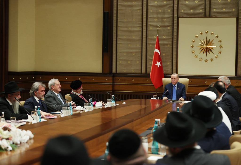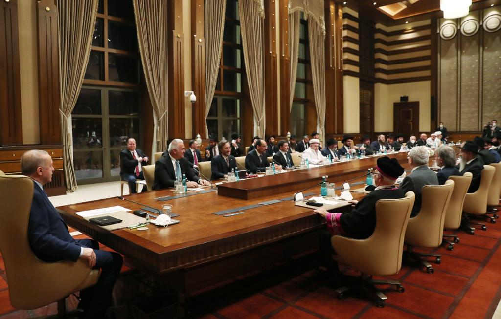 Cumhurbaşkanı Recep Tayyip Erdoğan, Türk Yahudi Toplumu ve İslam Ülkeleri Hahamlar İttifakı Üyelerini Cumhurbaşkanlığı Külliyesi'nde kabul etti.