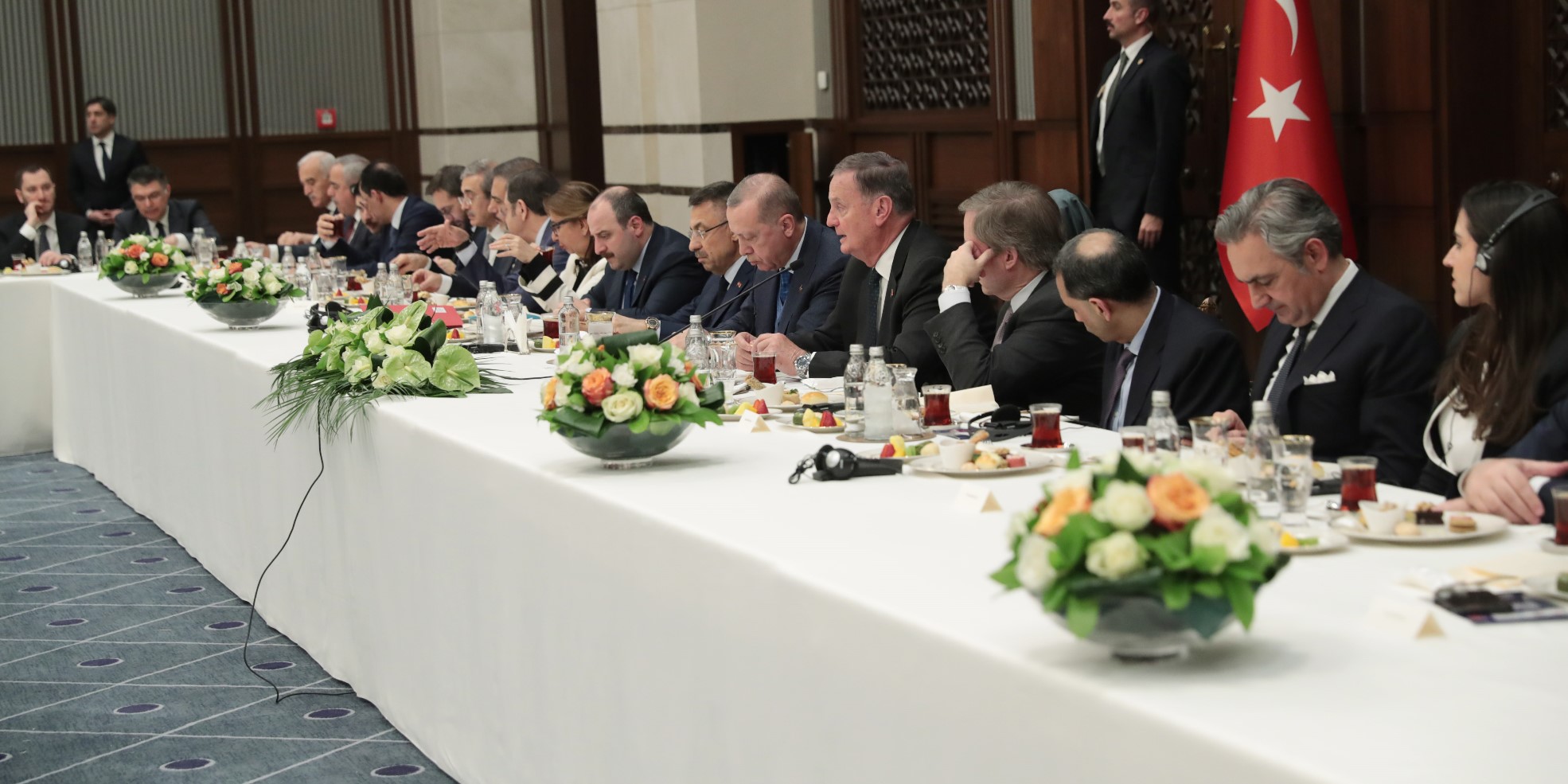 Cumhurbaşkanı Recep Tayyip Erdoğan, Cumhurbaşkanlığı Külliyesi'nde ABD Ticaret Odası ve Amerikan Türk Konseyi üyelerini kabulünde, heyeti misafir etmekten duyduğu memnuniyeti dile getirerek, ziyaretin ekonomik ve ticari ilişkiler başta olmak üzere Türk-Amerikan iş birliğinin güçlenmesine katkı sağlamasını diledi.