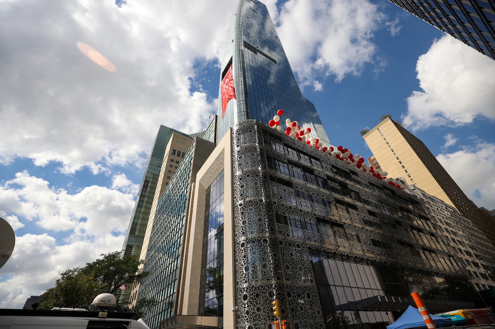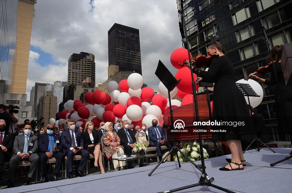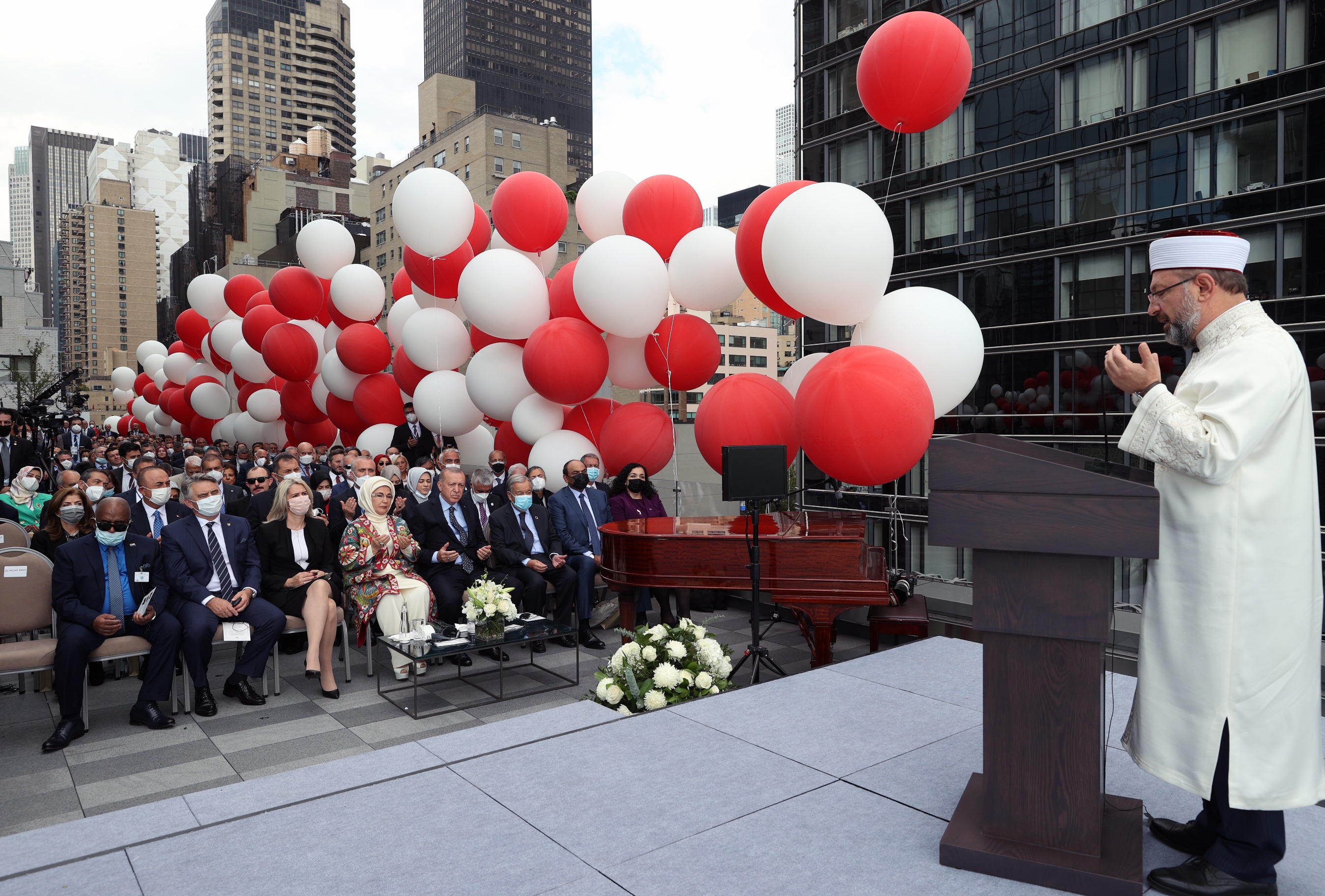 "Bugün haklı bir gurur yaşıyoruz. Gururluyuz, çünkü devletimize, milletimize kalıcı bir eser daha kazandırıyoruz. Gururluyuz, çünkü bu eserle New York'un silüetine tarihi ve geleneksel mimarimizin güzelliklerini ve zarafetini yansıtıyoruz. Gururluyuz, çünkü mimarlarımızın, mühendislerimizin, işçi kardeşlerimizin alın teriyle muhteşem bir eserin inşasını tamamladık. Bu göz kamaştırıcı binanın inşasında kullanılan malzeme ve tefrişat unsurları büyük ölçüde Türkiye'den getirildi. Mimarinin ve mühendisliğin en son imkanlarının kullanıldığı binamızın tasarımı, iklim değişikliğini konuştuğumuz şu dönemde çevreye duyarlılık esasına göre yapıldı. Böylece Türkiye bu eserle beraber büyüklüğünü, birikimini ve artan gücünü yansıtan bir başyapıt ortaya çıkardı."