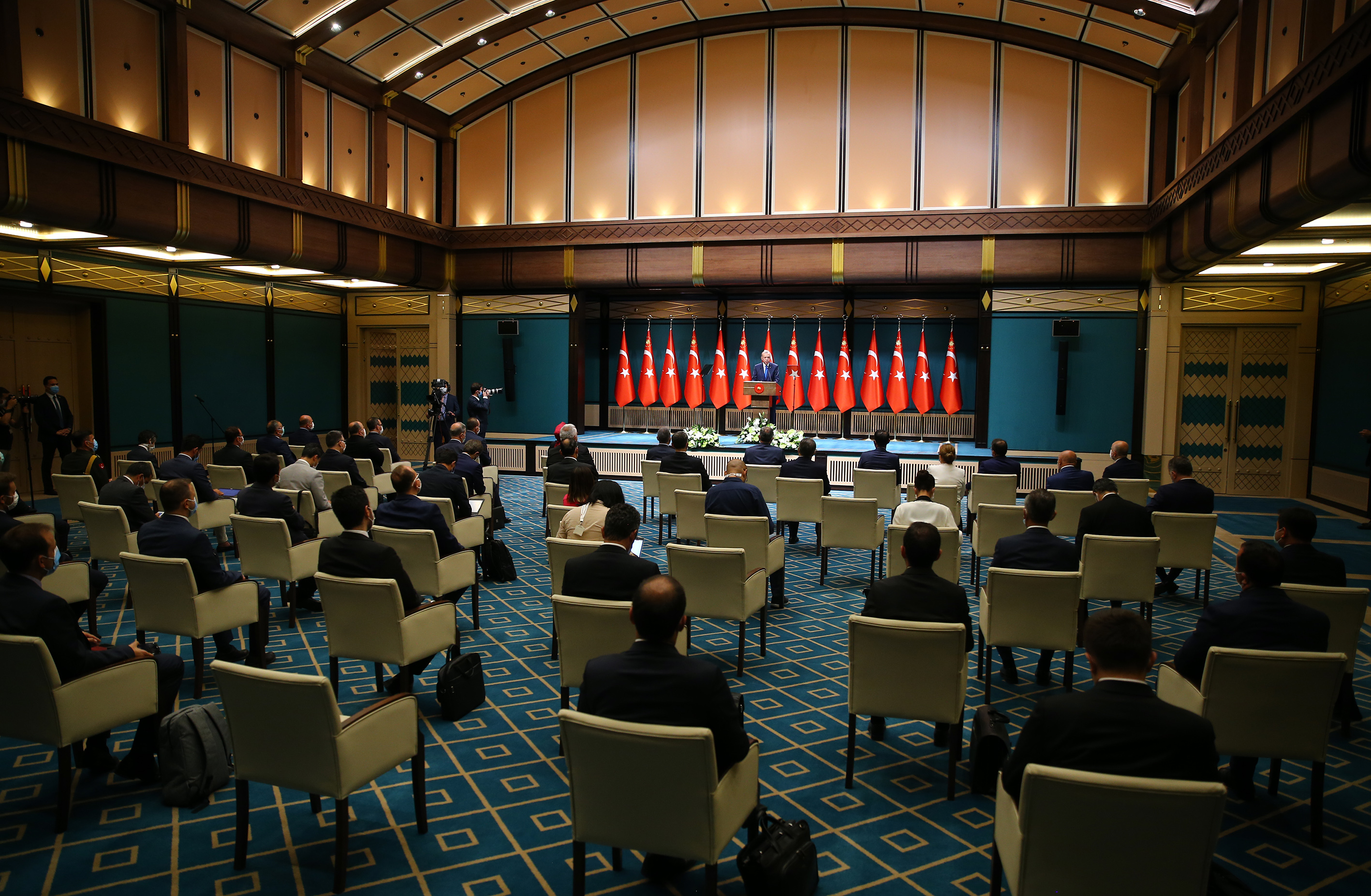 Dünyada vaka sayısının 28 milyona yaklaştığını, ölü sayısının da 900 bini aştığını söyleyen Erdoğan, "Yerküredeki hiçbir yerin bu salgının etkisinden kurtulamadığı anlaşılıyor. Günlük vaka rakamlarının 80 bini, ölü sayılarının bini geçtiği ülkeler var. Avrupa ülkelerinin bazıları salgının yeni dalgası ile boğuşuyor." değerlendirmesini yaptı.