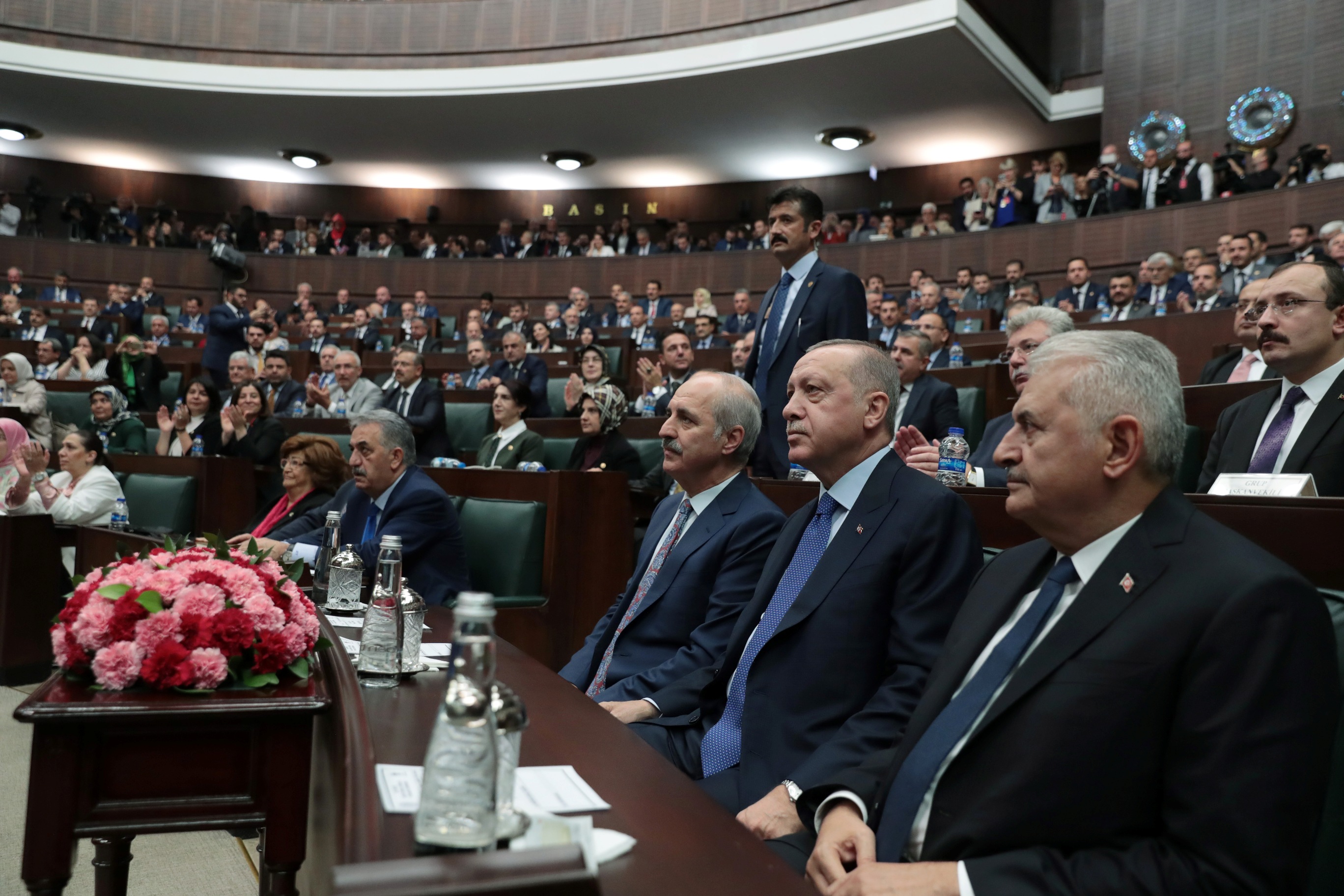 Suriye'de 9 Ekim'de saat 16.00'da başlatılan Barış Pınarı Harekatı'nın başarıyla devam ettiğini anlatan Erdoğan, "Türkiye, Barış Pınarı Harekatı'nı başlatma noktasına bir anda gelmemiştir. Bu işin bölücü terör örgütüyle mücadelemiz bakımından yaklaşık 40 yıllık, Suriye sorunu bakımından 8 yıllık mazisi var. Bugün geldiğimiz noktada 40 yıldır on binlerce vatandaşımızın canına mal olan, ülkemize yüzlerce milyar dolar maliyet getiren bölücü terör meselesinin nasıl ortaya çıktığını ve büyüdüğünü daha iyi anlıyoruz. Ülkemiz, her hal ve şart altında müttefiklik hukukunun gereklerini yerine getirmiştir. Buna karşılık müttefiklerimizin yüzümüze başka konuştuğu arkamızdan ise başka işler çevirdiği inkarı mümkün olmayan bir şekilde açığa çıkmıştır. Her şeye rağmen Türkiye'nin tavrı barıştan, huzurdan, esenlikten yana olmuştur, böyle de olacaktır." değerlendirmesinde bulundu.