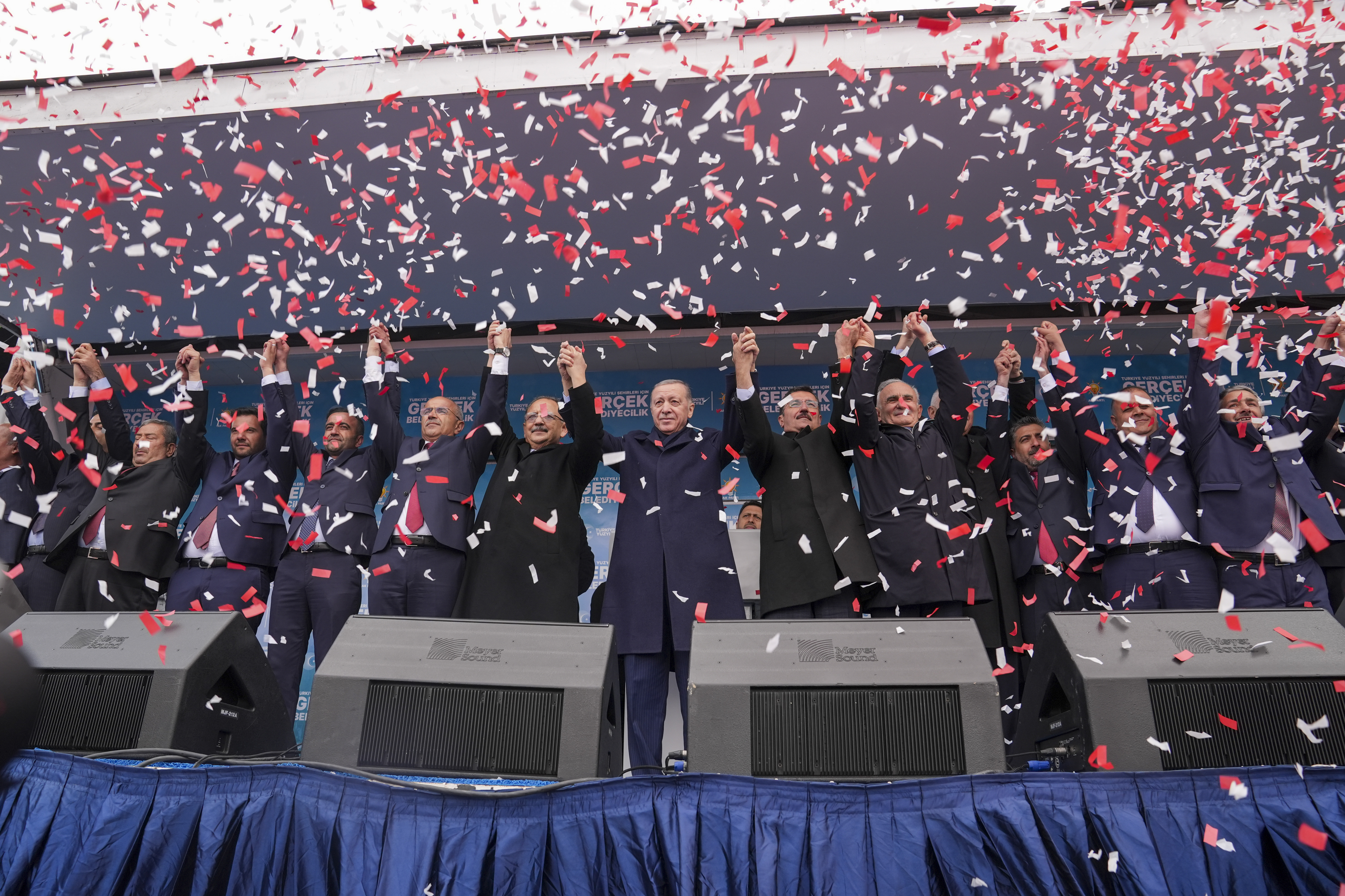 "Büyükşehir ve ilçe belediye başkan adaylarımı sizlere emanet ediyorum. Bu emanete sahip çıkmaya var mısınız?" sorusuna Cumhurbaşkanı Erdoğan, alandaki kalabalıktan "evet" yanıtını aldı.