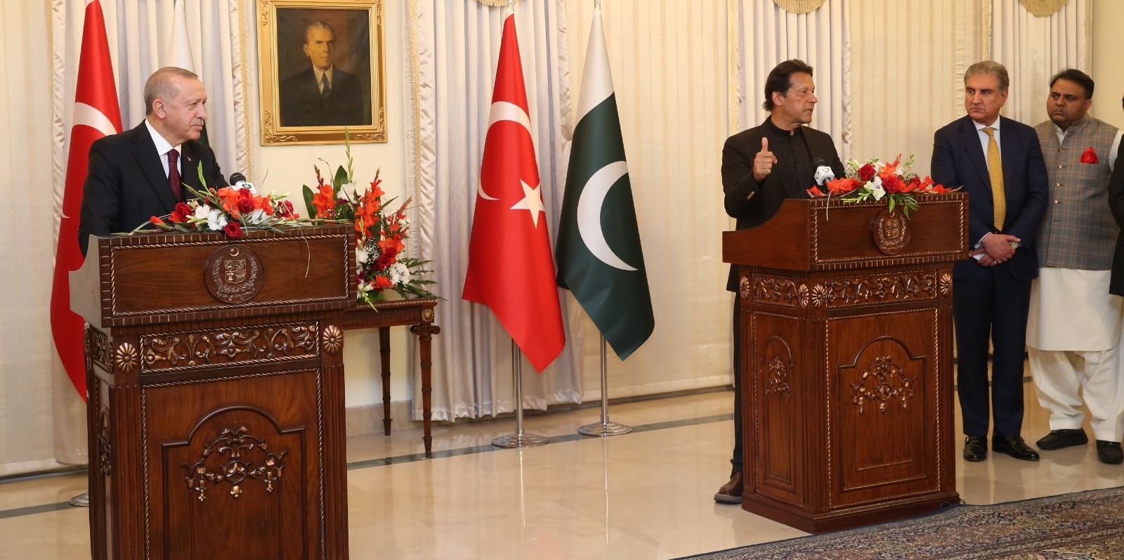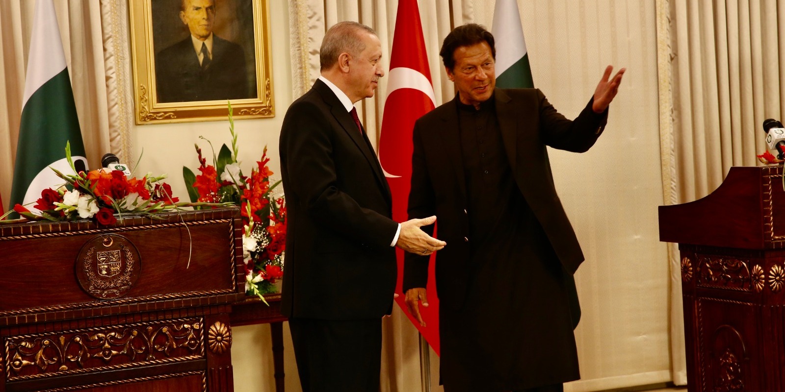 Pakistan Başbakanı Han ise Pakistan halkının Cumhurbaşkanı Erdoğan'ın ziyaretinden dolayı büyük mutluluk duyduğunu, Erdoğan'ın iktidara gelmesinin ardından ikili ilişkilerin daha da geliştiğini söyledi.