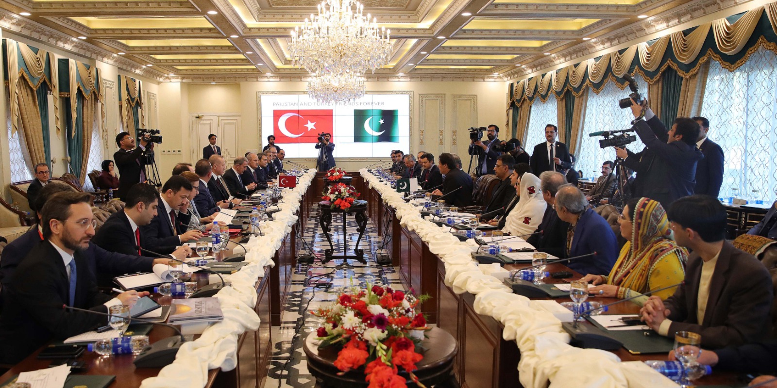 "Her ikisi de kardeşimiz olan Pakistan ve Afganistan'ın ilişkilerinin geliştirilmesi için gerekeni yapmaya hazır olduğumuzun bilinmesini isterim. Devletimiz ve milletimiz dün olduğu gibi bugün de büyük acılar yaşayan, muhtelif baskılara maruz kalan Keşmir halkıyla dayanışma içindedir. Eyaletteki durumun son dönemde atılan her türlü adımlara rağmen müşkül bir hal alması bizleri ciddi manada rahatsız etmektedir. Türkiye, Keşmir sorununun Pakistan ve Hindistan arasında diyalog yoluyla ilgili Birleşmiş Milletler kararları temelinde ve Keşmirli kardeşlerimizin beklentileri gözetilerek çözülmesinden yanadır. Pakistan'ın terör ve bölgesel istikrara yönelik tehditlerle mücadeledeki büyük fedakarlıklarını takdir ettiğimizi bir kez daha dile getirmek isterim."
