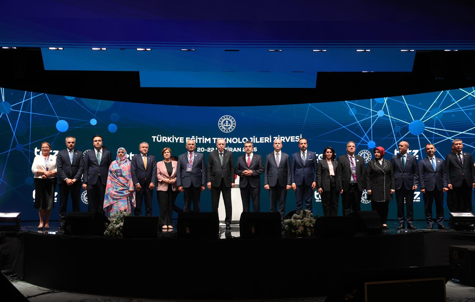 Yapay zekâ ve inovasyonun eğitimdeki rolünün tüm yönleriyle ele alınacağı zirvenin hayırlı olmasını dileyen Cumhurbaşkanı Erdoğan, "Bugün aynı zamanda 2024-2025 eğitim öğretim yılını da nihayete erdirmiş bulunuyoruz. Bu vesileyle ülkemizin dört bir yanında karne heyecanı yaşayan tüm evlatlarımızın tek tek gözlerinden öpüyor, her bir yavrumuza Rabb'imden üstün muvaffakiyetler niyaz ediyorum. Türkiye'nin yarınlarını şekillendirecek Türkiye Yüzyılı tasavvurumuzu her veçhesiyle hayata geçirecek bu evlatlarımızın kıymetli ailelerine, Edirne'den Iğdır'a 81 ilimizin tamamında, köylerimizde, ilçe ve şehir merkezlerimizde fedakârca görev yapan tüm öğretmenlerimize, kar, yağmur demeden, mesai mefhumu gözetmeden özveriyle çalışan maarif ordumuzun bütün neferlerine en içten şükranlarımı sunuyorum." diye konuştu.