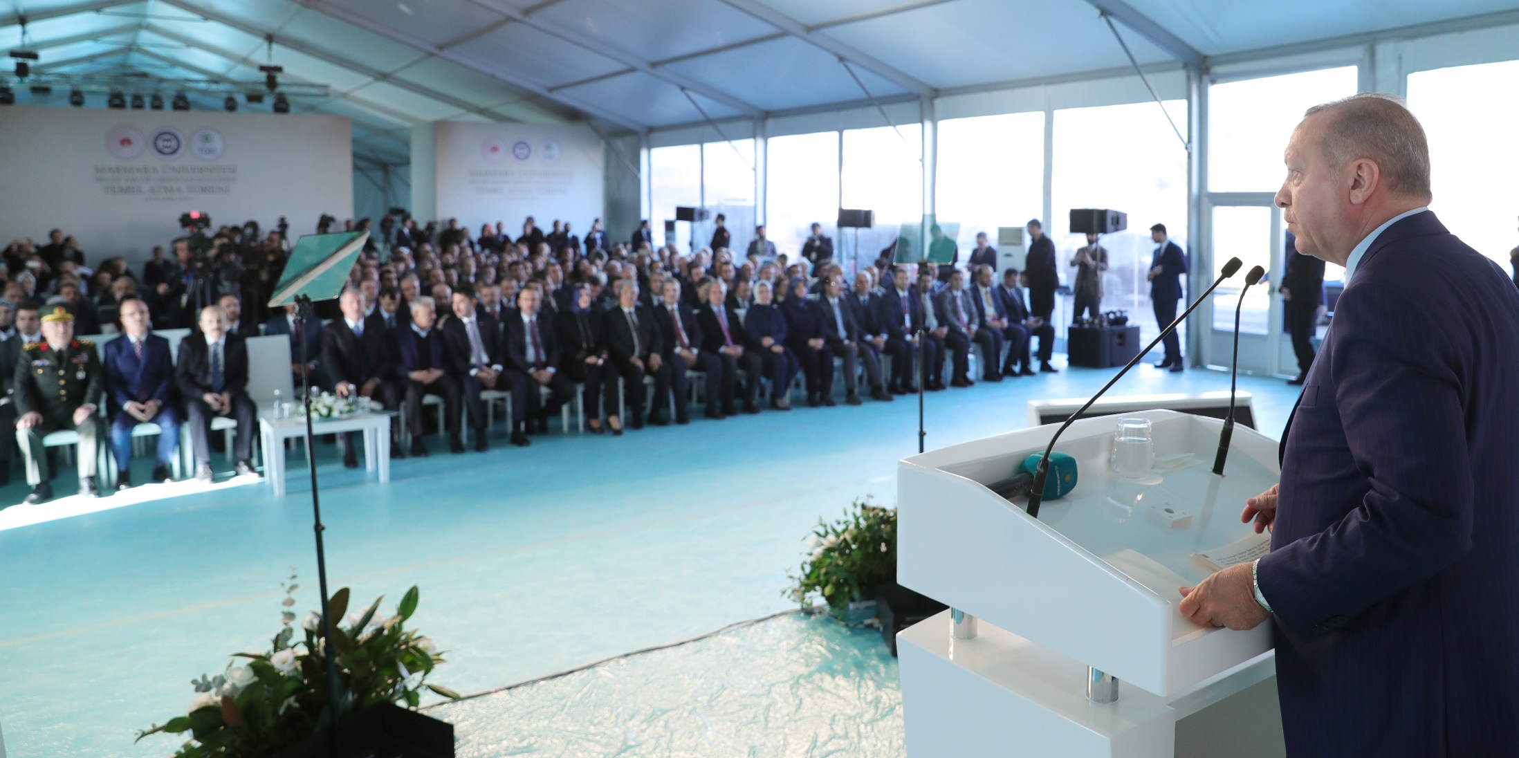 Erdoğan, "Marmara Üniversitesinin fiziki mekan olarak inşa edileceği, temelini atacağımız bu mekan, gerçekten ismiyle müsemma Marmara Denizi'ne nazır ve kendi mimari üslubumuzla inşa edilecek olan bu eser hakikaten sadece ülkemizin değil, dünyanın da müstesna eserlerinden bir tanesi olacak." diye konuştu.