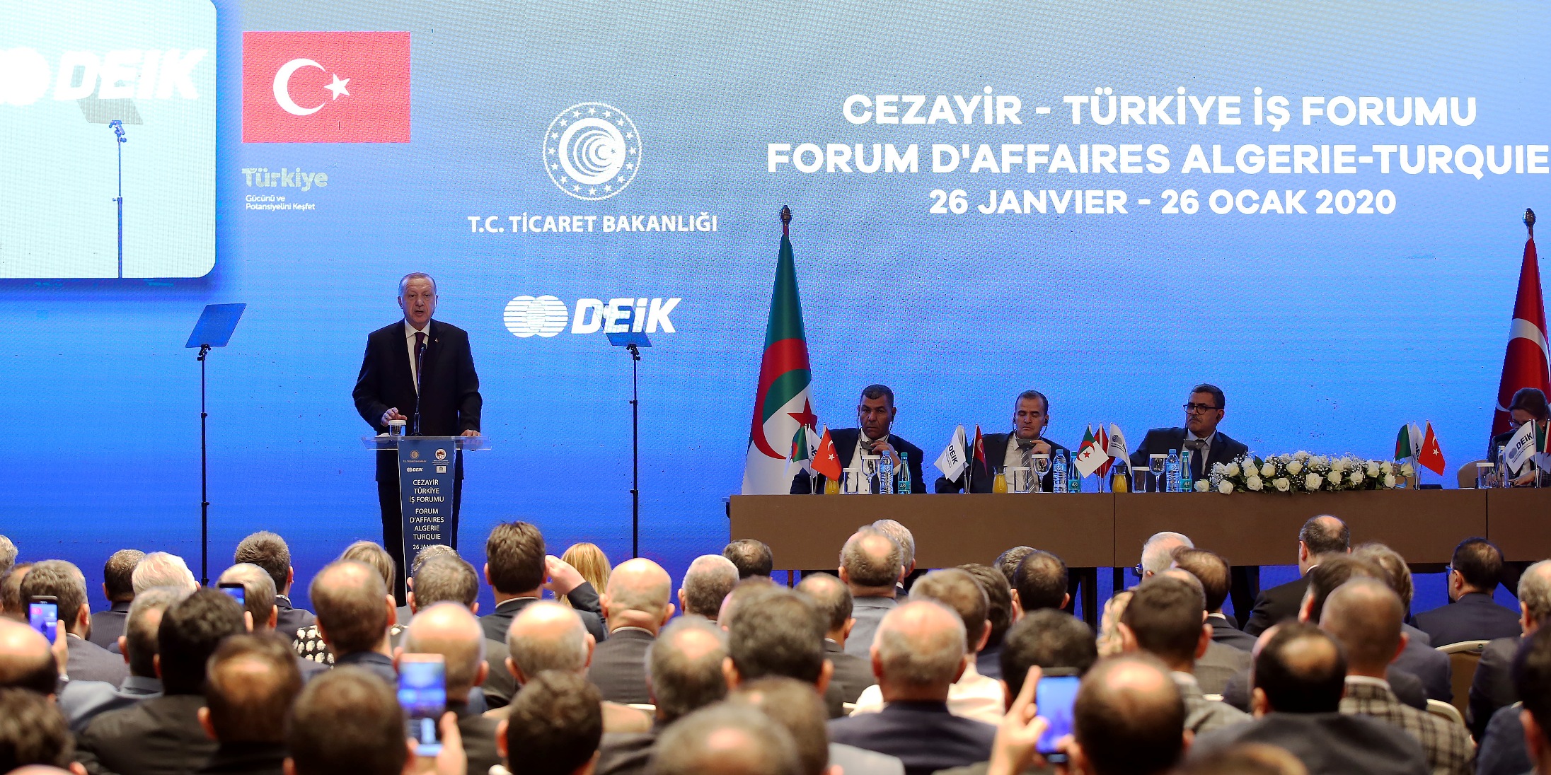 Türkiye ve Cezayir'in müşterek hedeflerine çok daha kararlı ve hızlı yürüyeceğini ifade eden Cumhurbaşkanı Erdoğan, "Ticari hedeflerimize ulaşabilmek için öncelikle sizlerin potansiyeline ket vuran bariyerlerin ortadan kaldırılması gerekiyor. Bu kadar köklü ve güçlü bağlara sahip Türkiye ile Cezayir arasında, halen serbest ticaret anlaşmasının bulunmaması ciddi bir eksikliktir ama bugün inşallah bakanlarımız kendi aralarında aldılar, adımı da inşallah süratle atacaklar." ifadelerini kullandı.