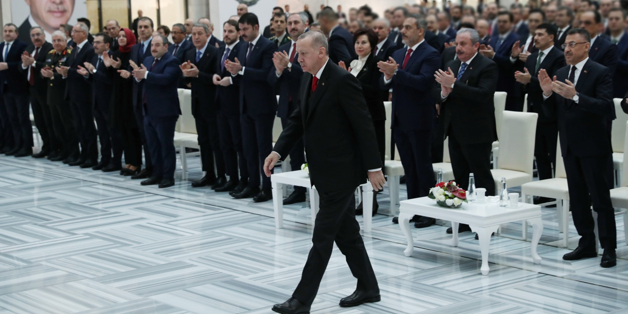 Dünyanın adeta yeniden yapılandığı bir dönemden geçtiklerini vurgulayan Erdoğan, "Bu sancılı süreçte karşı karşıya bulunduğumuz tehditler hem değişiyor hem artıyor. Yeni dönemin en önemli tehdidi hiç şüphesiz terördür. PKK/YPG, FETÖ, DEAŞ gibi terör örgütleri adeta ülkemize karşı topyekün savaş ilan etmiş durumdalar. Bir başka önemli tehdit de bölgemizdeki ülkelerin yaşadığı iç karışıklıklar ve bunların yol açtığı krizlerdir. Suriye'den kaynaklı her gelişme hem terör boyutu hem göç meselesi hem siyasi sonuçları itibarıyla ülkemizi doğrudan ilgilendiriyor." değerlendirmesinde bulundu.