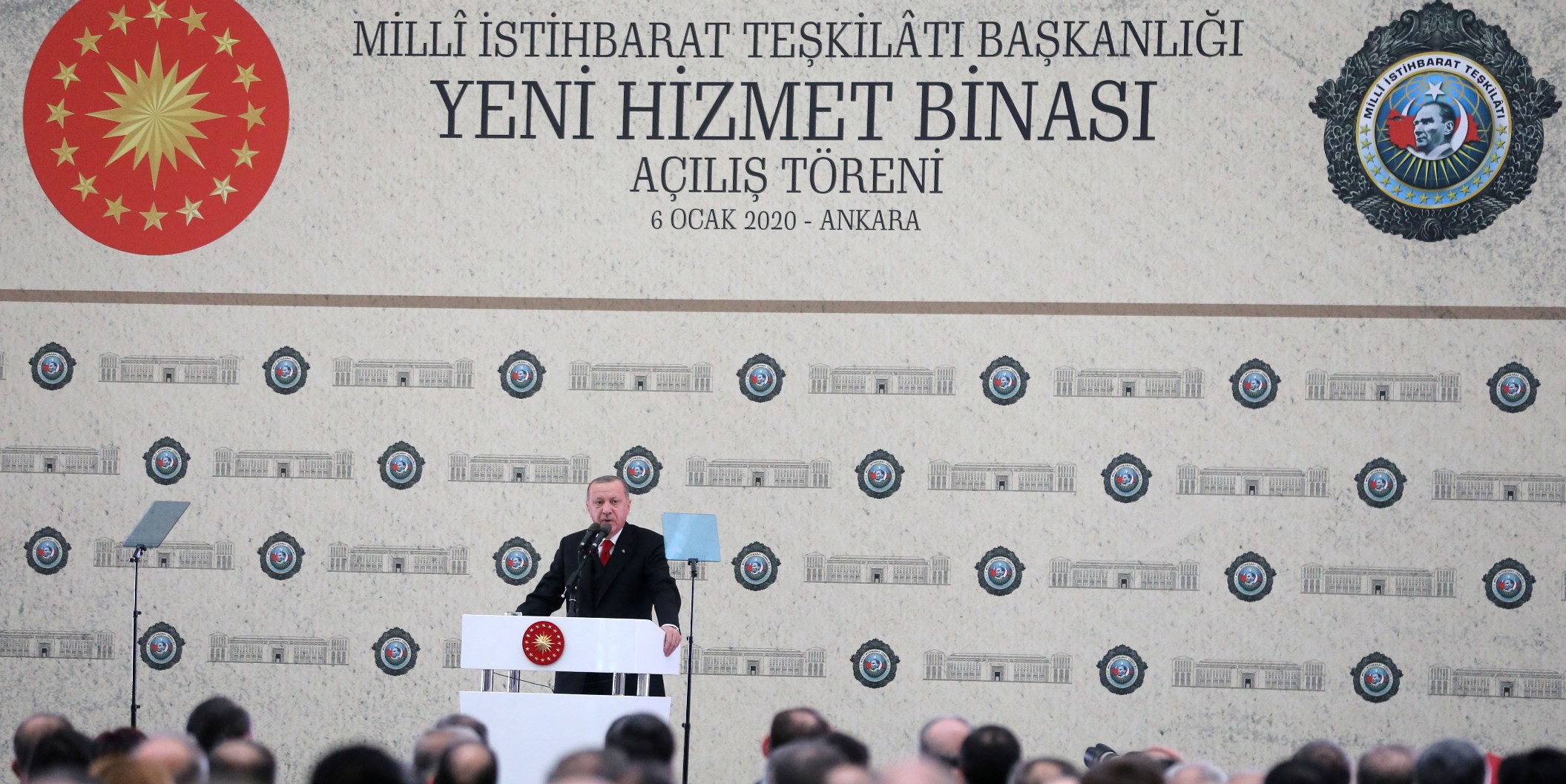 "Son olarak 2014 yılında teşkilatımızın kanununu baştan sona yenileyerek günümüzün beklentilerine uygun hale getirdik. Zaman zaman tartışmaların merkezine yerleştirilmiş olsa da ülkemizin ve milletimizin istihbarat teşkilatına olan ihtiyacı hiçbir zaman azalmamıştır çünkü istihbarat bilgileri yalnızca savaş değil barış dönemlerinde de devletin bekası için vazgeçilmezdir. Bugününe hakim olamayan geleceğini şekillendiremez. Ülkemizin ve dünyanın kritik bir süreçten geçtiği şu dönemde Milli İstihbarat Teşkilatımızın desteğine her zamankinden daha çok ihtiyaç bulunuyor. Geniş bir coğrafyada gece gündüz fedakarca görev yapan isimsiz kahramanlarımızın her birinin başarılarıyla gurur duyuyoruz. İnşallah bugün açılışını yaptığımız yeni hizmet binasıyla teşkilatımızın gücü ve imkanları daha da artmıştır."