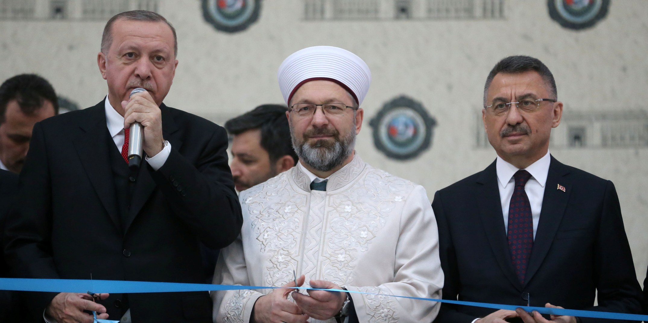 Diyanet İşleri Başkanı Prof. Dr. Ali Erbaş'ın yaptığı duanın ardından Cumhurbaşkanı Erdoğan ve beraberindekiler kurdele keserek "KALE"nin açılışını gerçekleştirdi.