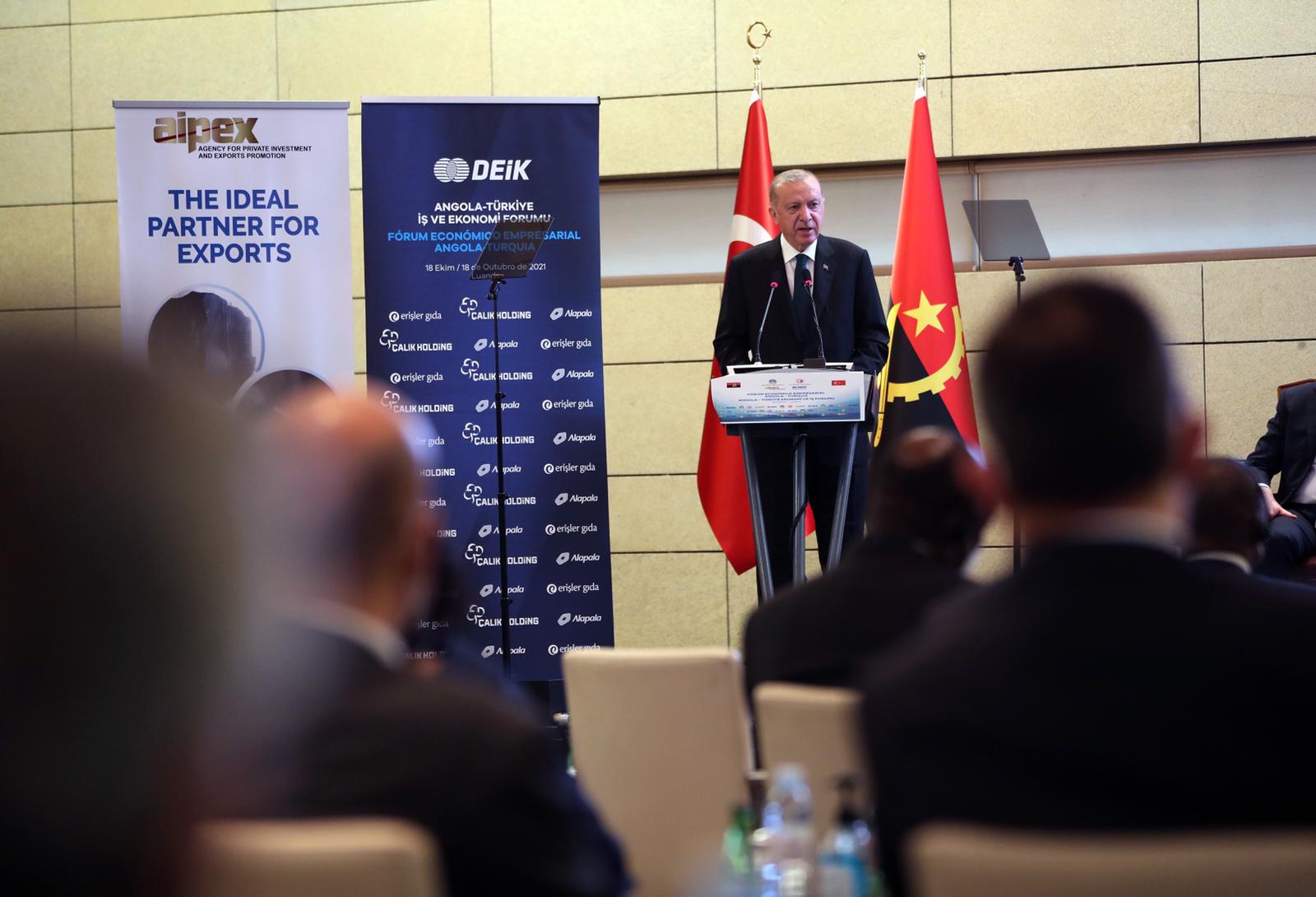 Cumhurbaşkanı Erdoğan Epic Sana Otel'de, Dış Ekonomik İlişkiler Kurulunca düzenlenen Angola-Türkiye İş Forumu'nda yaptığı konuşmaya, iş forumunun ülkelere ve iş dünyası temsilcilerine hayırlı olmasını dileyerek başladı.