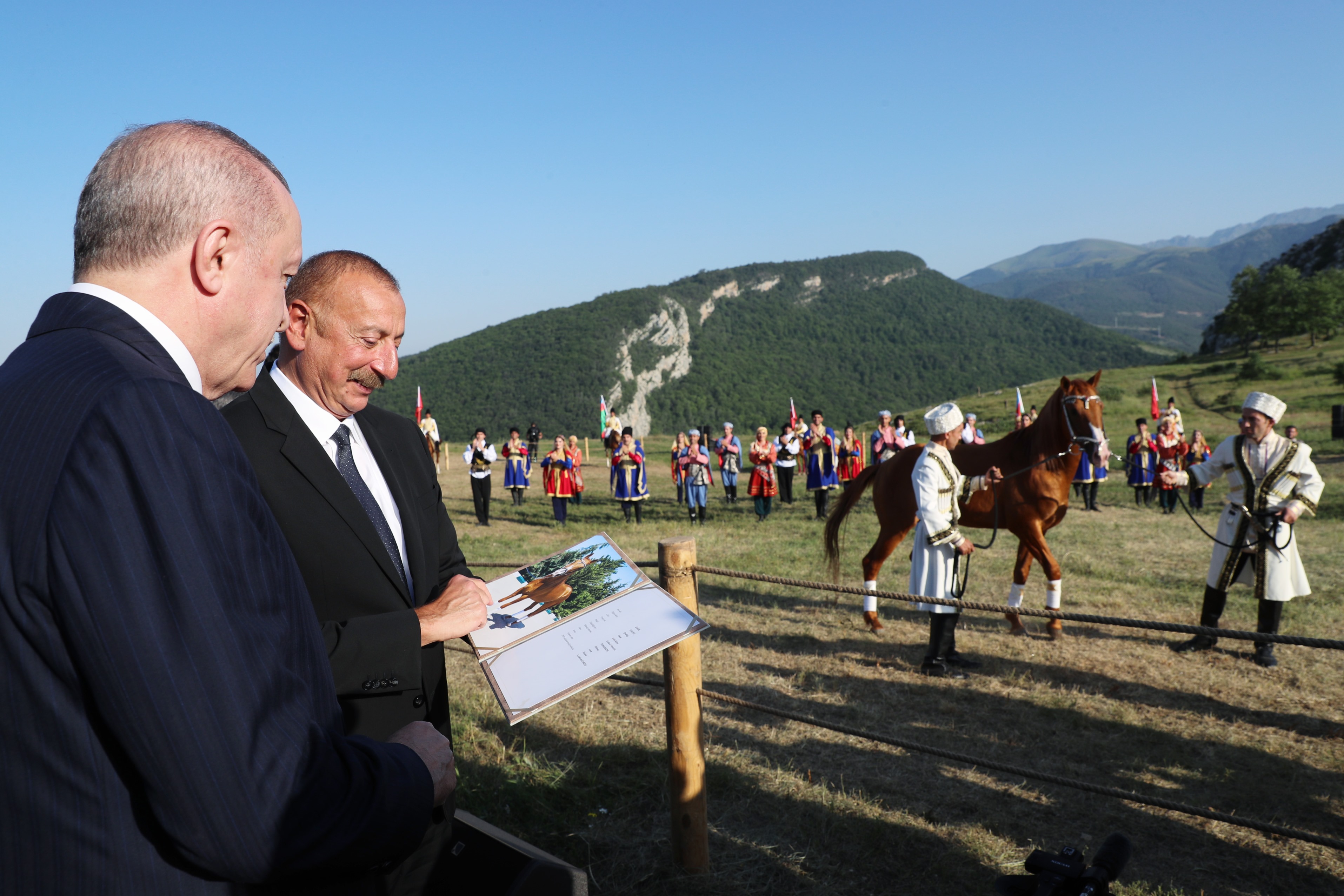 Liderler, burada yerel sanatçılar tarafından icra edilen yöreye ait "Karabağ Sikeştesi" eserini dinledi.