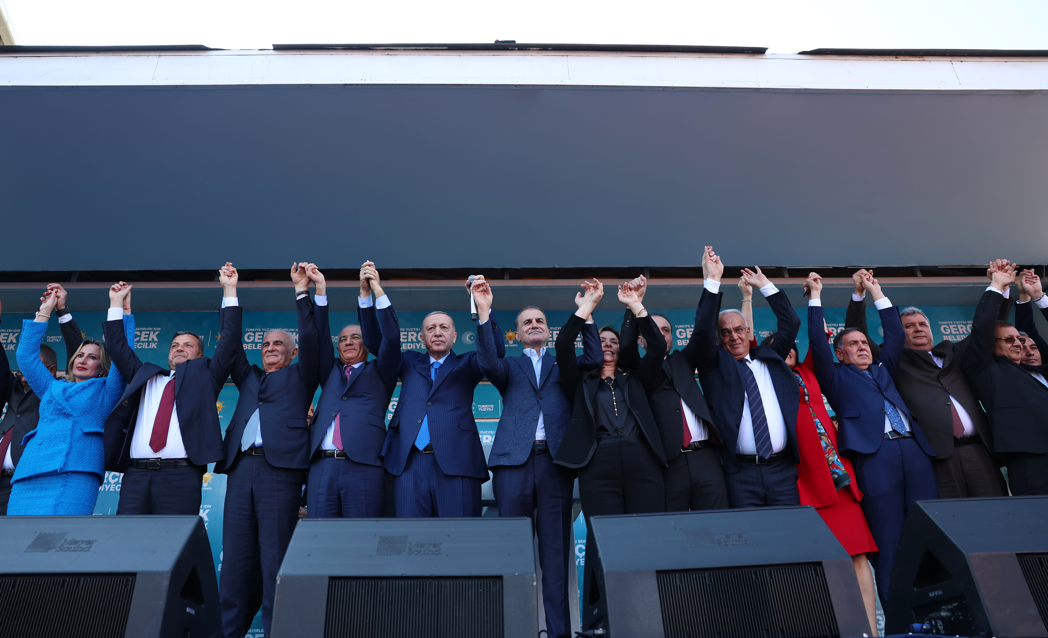 Cumhurbaşkanı Erdoğan, konuşmasının ardından Adana Büyükşehir Belediye Başkan adayı Fatih Mehmet Kocaispir ve ilçe belediye başkan adaylarını alfabetik sıraya göre çağırarak tanıttı.