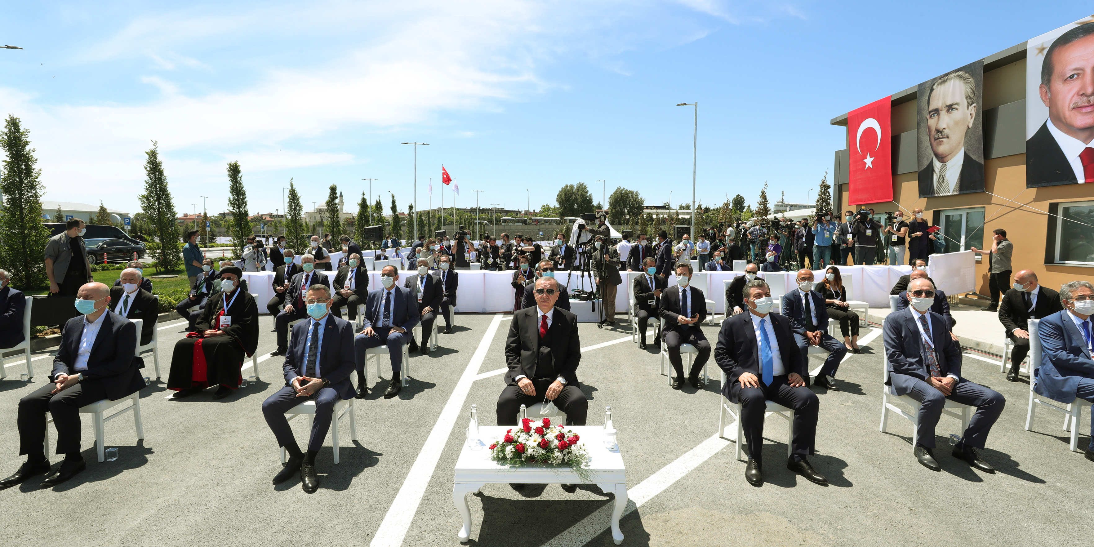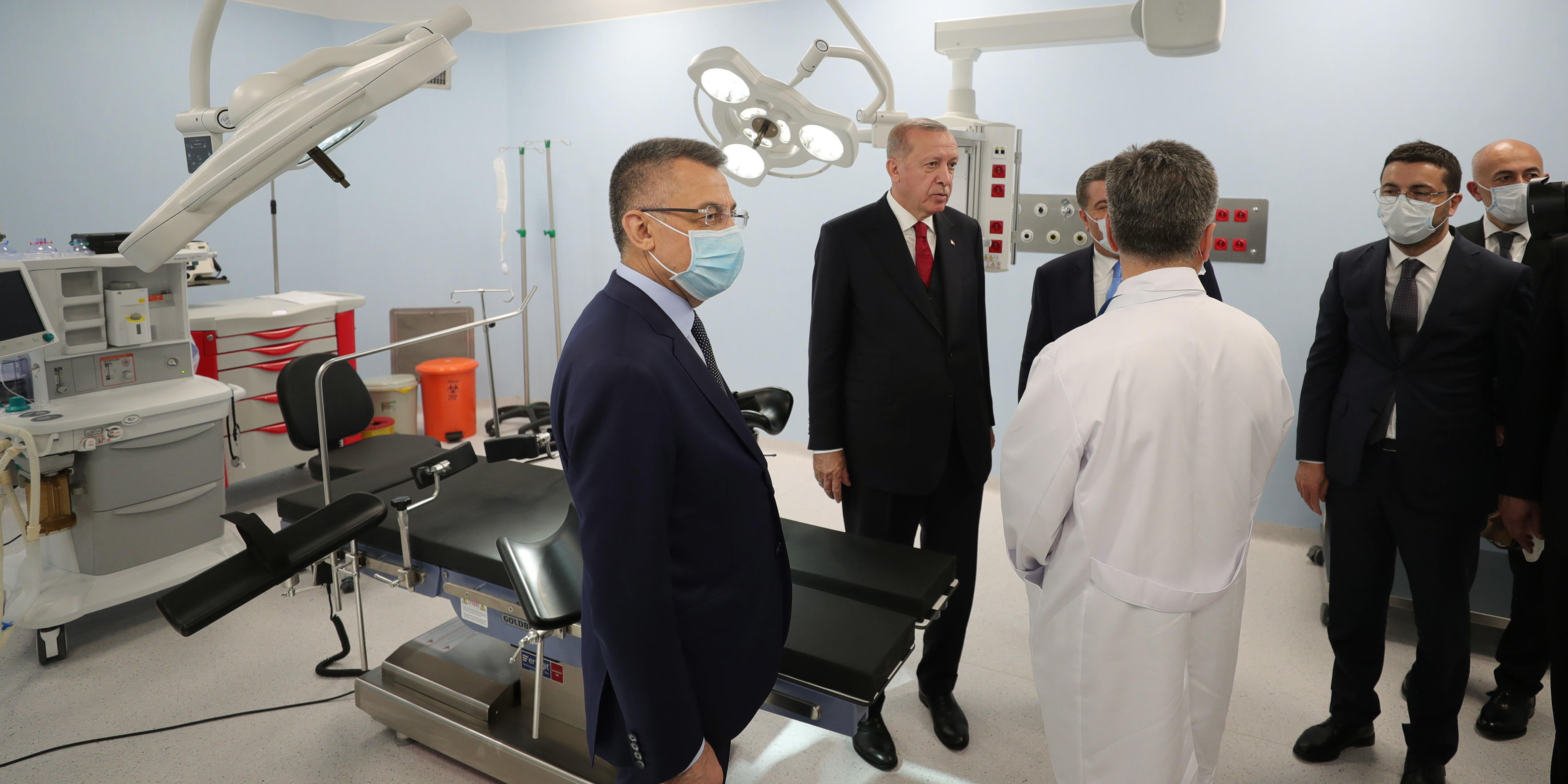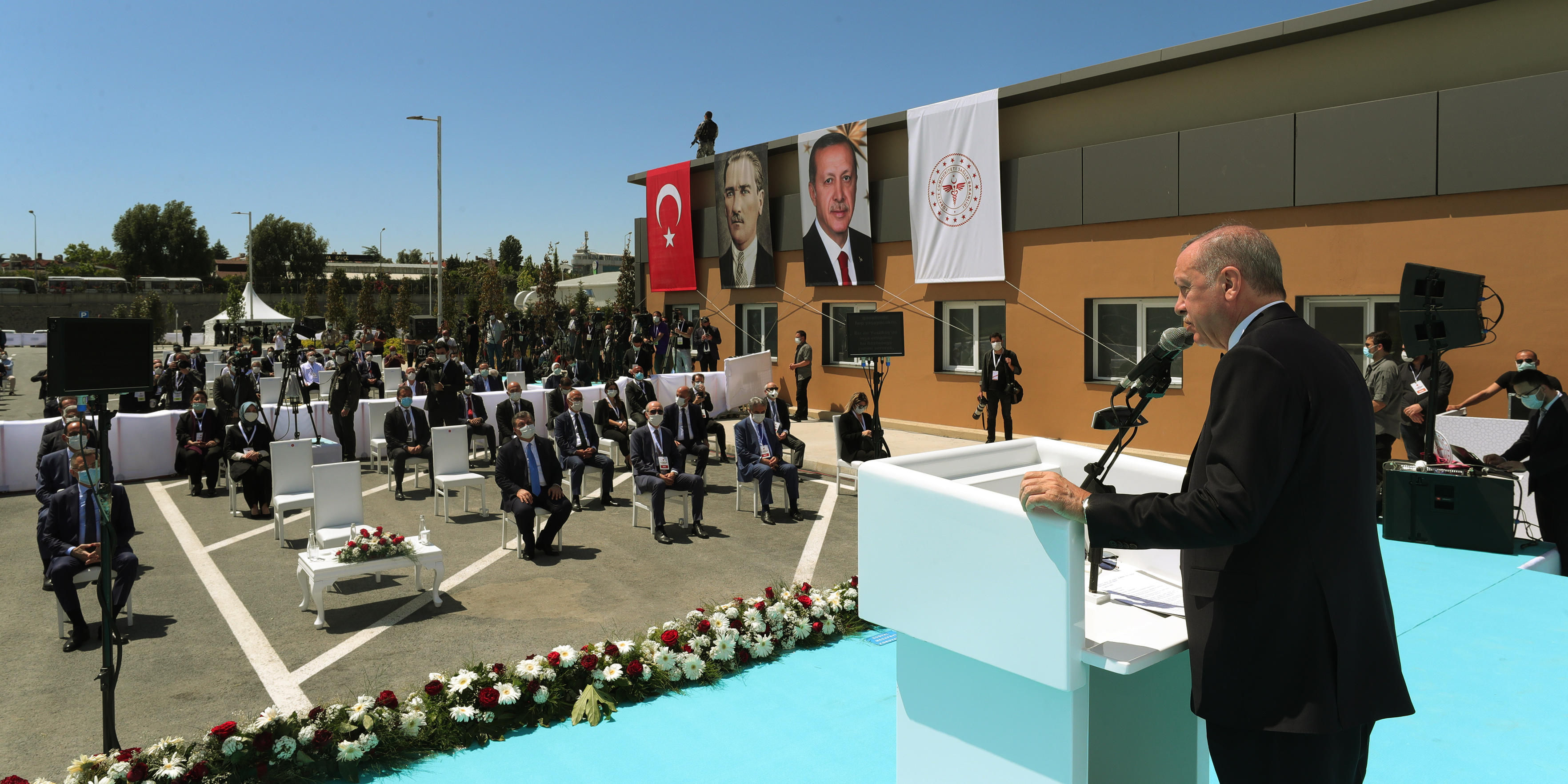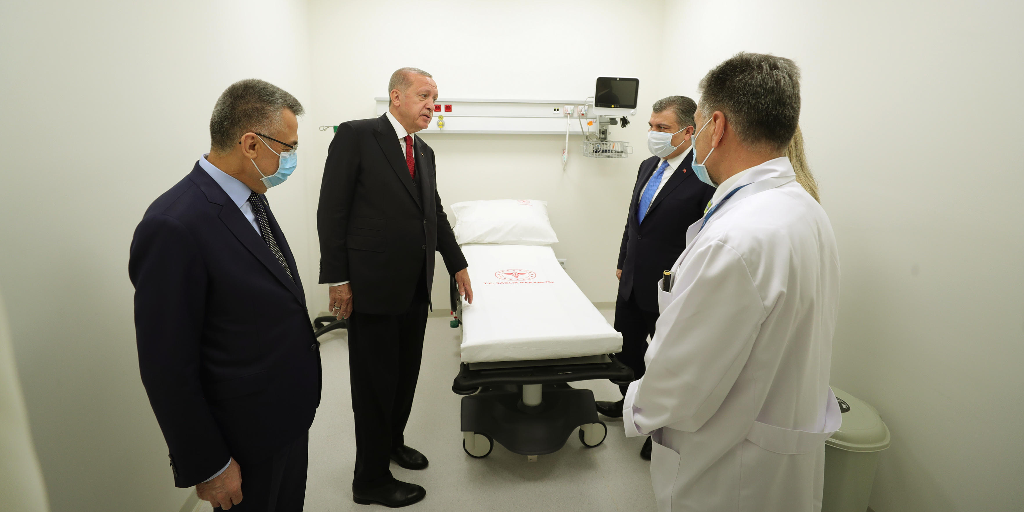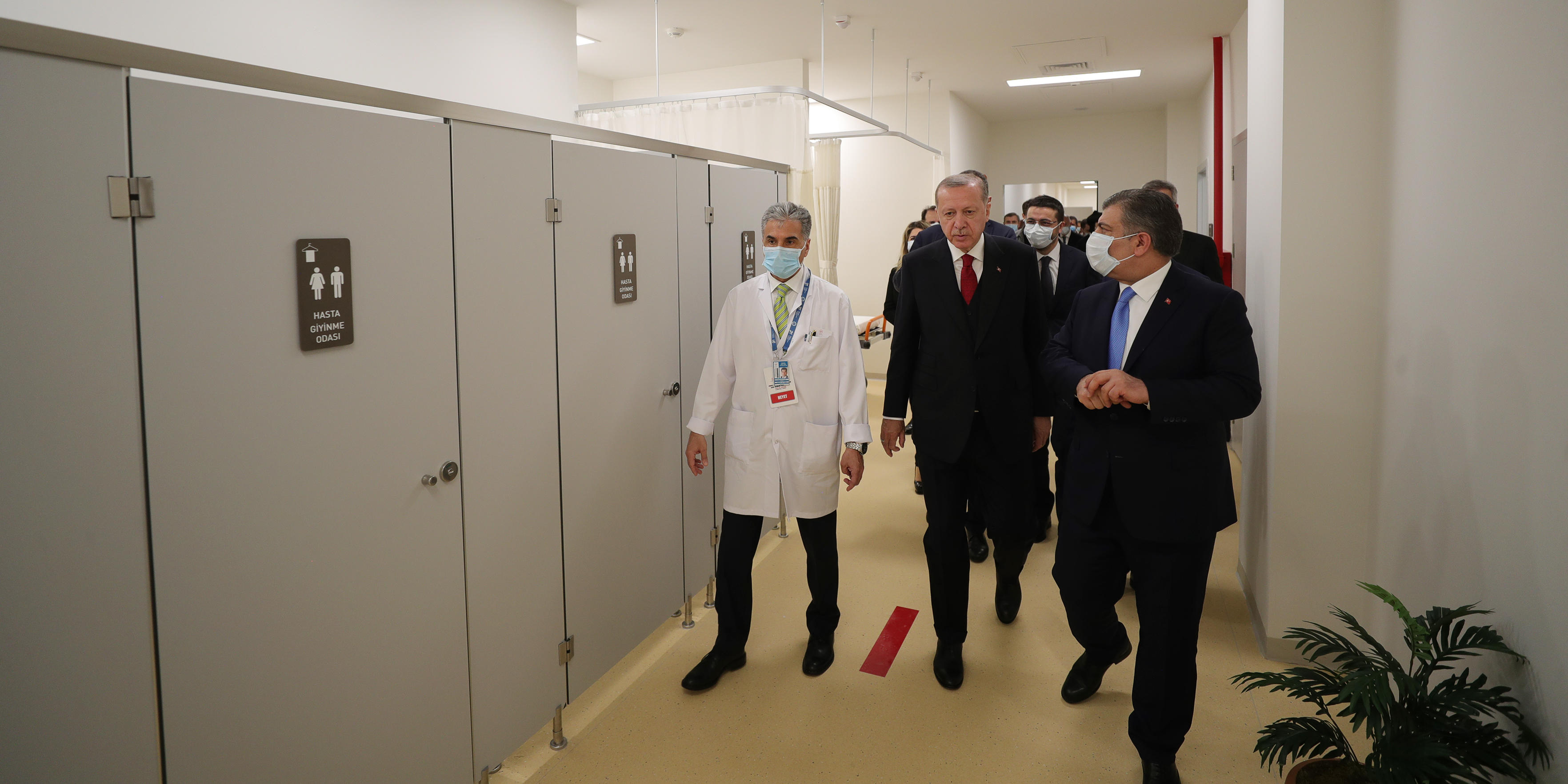 Aynı şekilde salgın döneminde iki ayı bulmadan inşasını tamamlayıp hizmete sundukları bu acil durum hastanelerinin özellikle örnek alınacak bir model olduğuna inandığını vurgulayan Erdoğan, "Dünyada pek çok ülkenin geçici sahra ve prefabrik hastaneler kurarak çözmeye çalıştıkları sorunu biz çok daha kısa sürede kalıcı hastane inşa ederek aşmayı başardık." dedi.