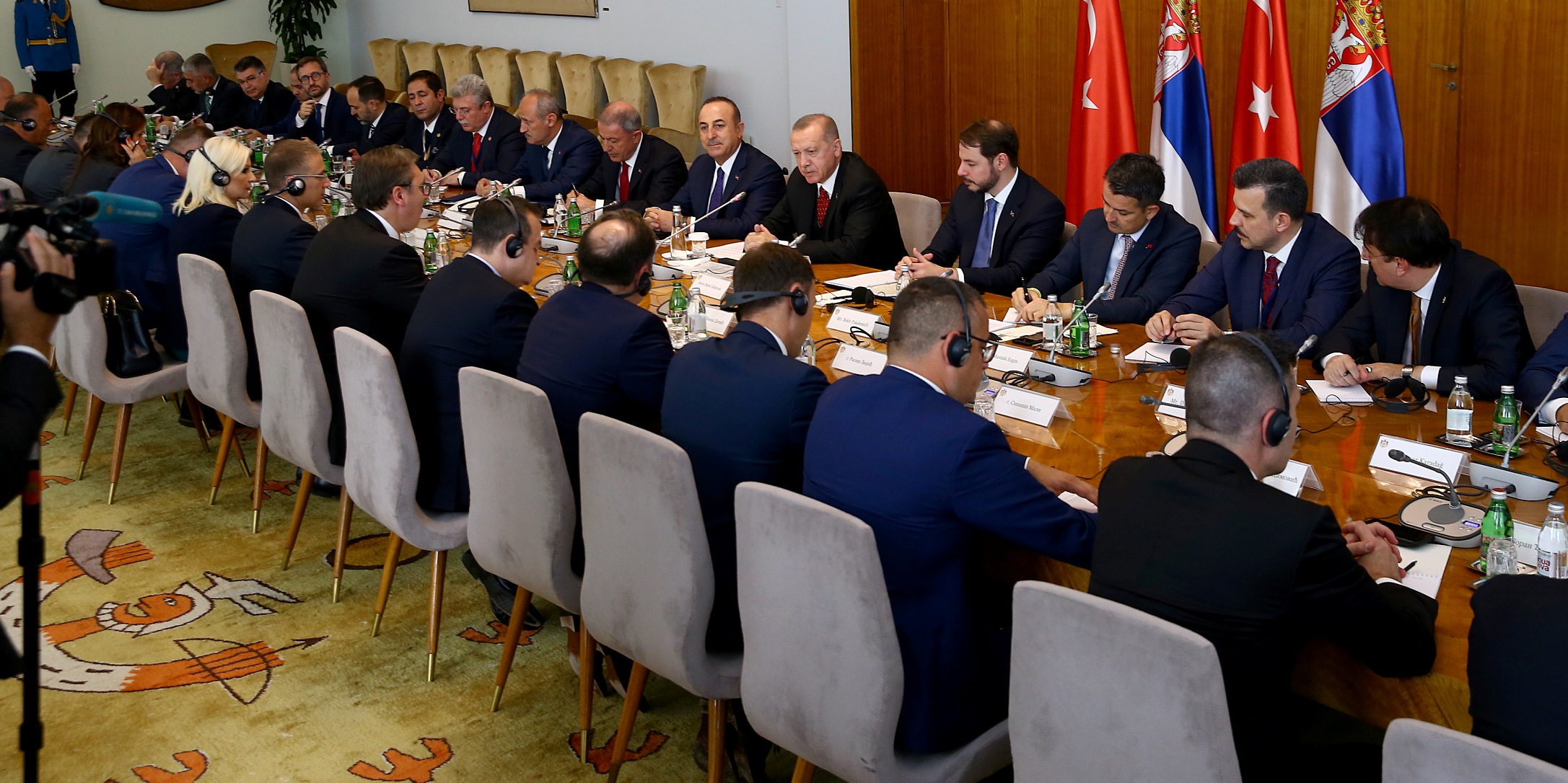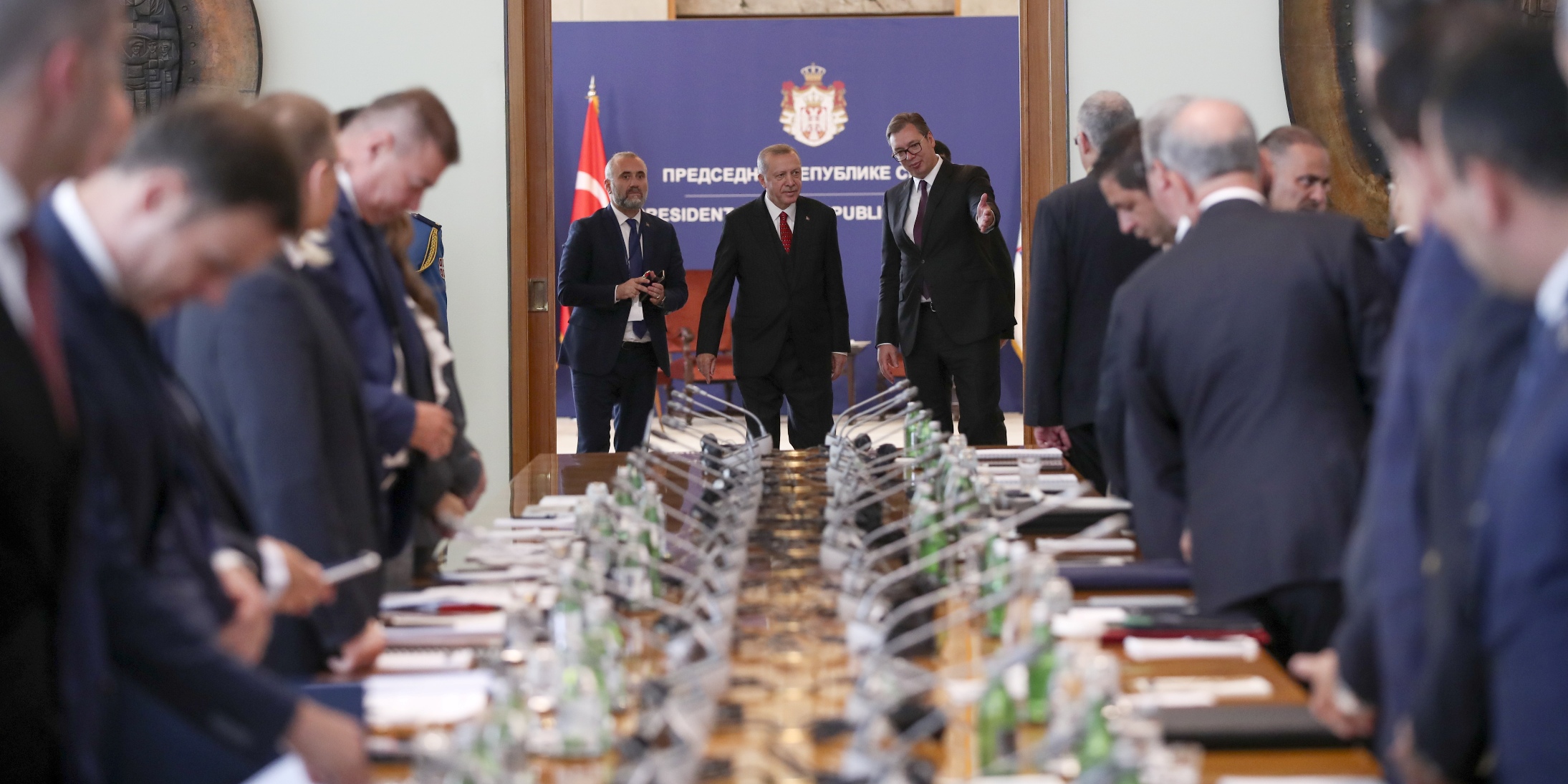 Cumhurbaşkanı Erdoğan ve Sırbistan Cumhurbaşkanı Aleksandar Vucic, Sırbistan Sarayı'ndaki baş başa görüşmelerinin ardından Türkiye-Sırbistan Yüksek Düzeyli İşbirliği Konseyi'nin ikinci toplantısına başkanlık etti.