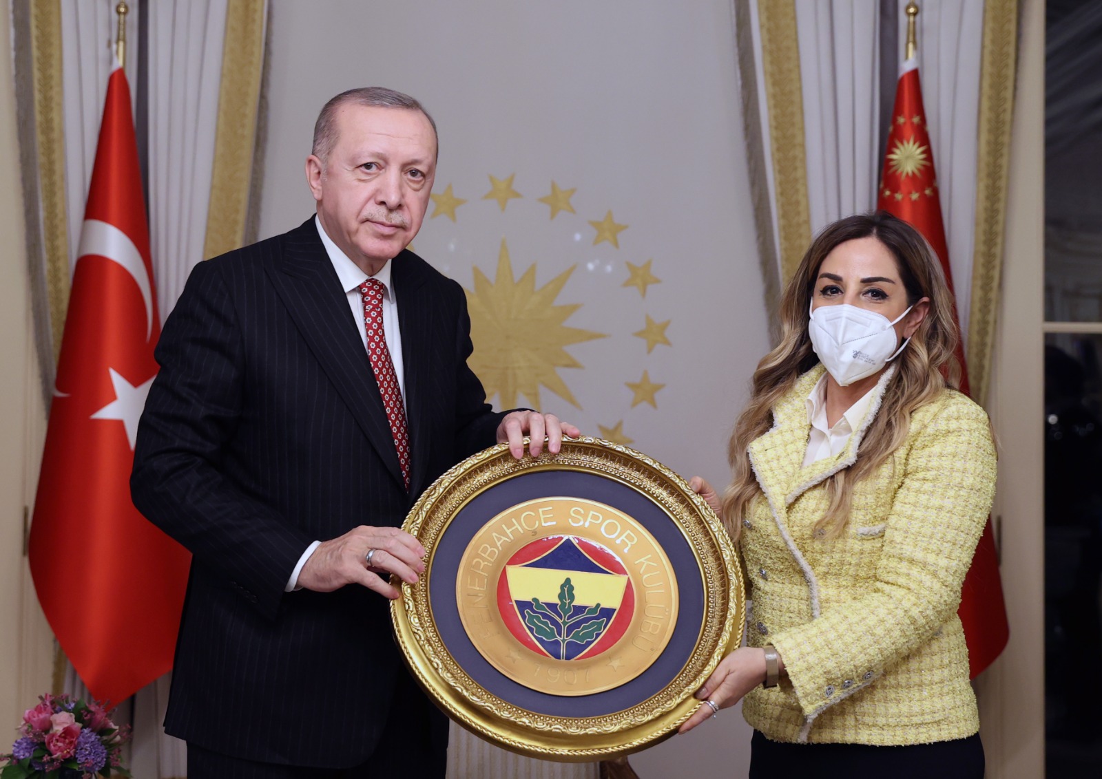 Beykoz Cam ve Billur Müzesi'nin açılışının ardından Vahdettin Köşkü'ne geçen Cumhurbaşkanı Erdoğan'a, Türkiye Voleybol Federasyonu yönetici ve oyuncuları hediye takdim etti.