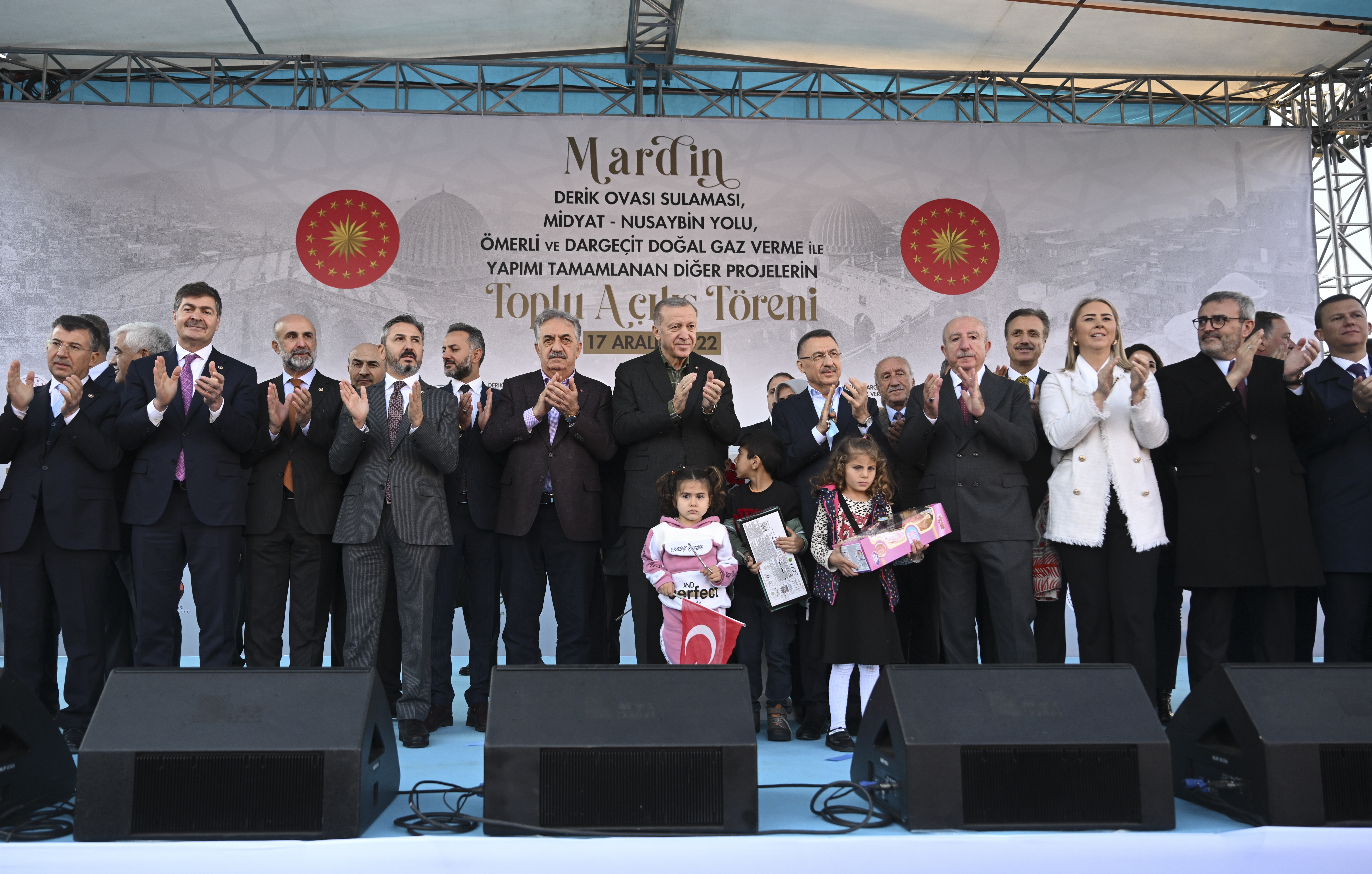 Bugün, Mardinli vatandaşlarla hasret gidermenin yanında Mardin'e kazandırdıkları toplam yatırım bedeli 8,5 milyar liraya, güncel bedeli 17,5 milyar liraya ulaşan yüzlerce eser ve hizmetin resmi açılışını da yaptıklarını belirten Cumhurbaşkanı Erdoğan, konuşmasına şöyle devam etti:
