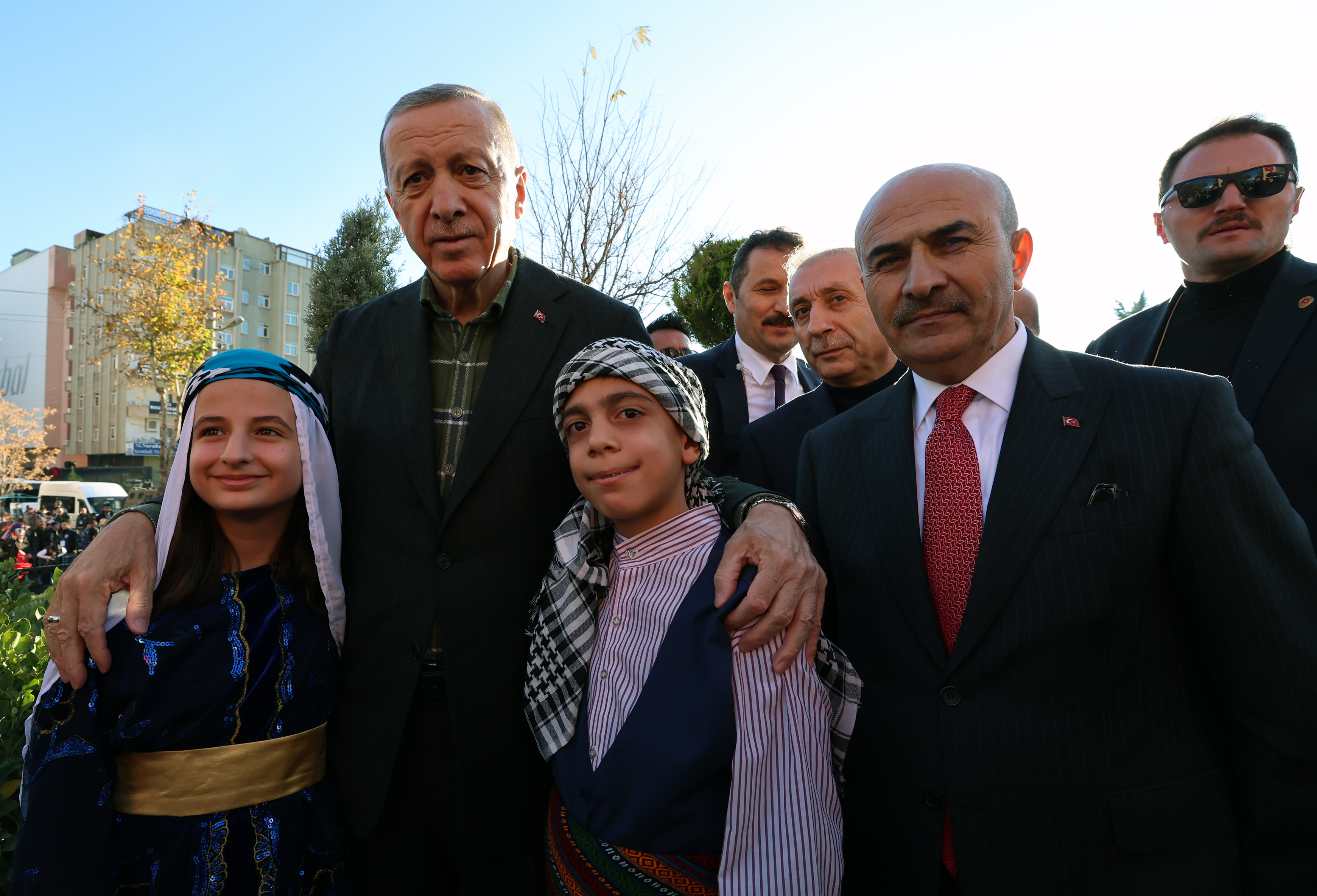 Cumhurbaşkanı Erdoğan, Mardin Havalimanı'ndan 15 Temmuz Demokrasi ve Şehitler Meydanı'ndaki tören alanına gelişi sırasında Mardinlilerin sevgi gösterileriyle karşılandı. Cumhurbaşkanı Erdoğan yol boyunca vatandaşları selamladı, çocuklara da hediyeler verdi.