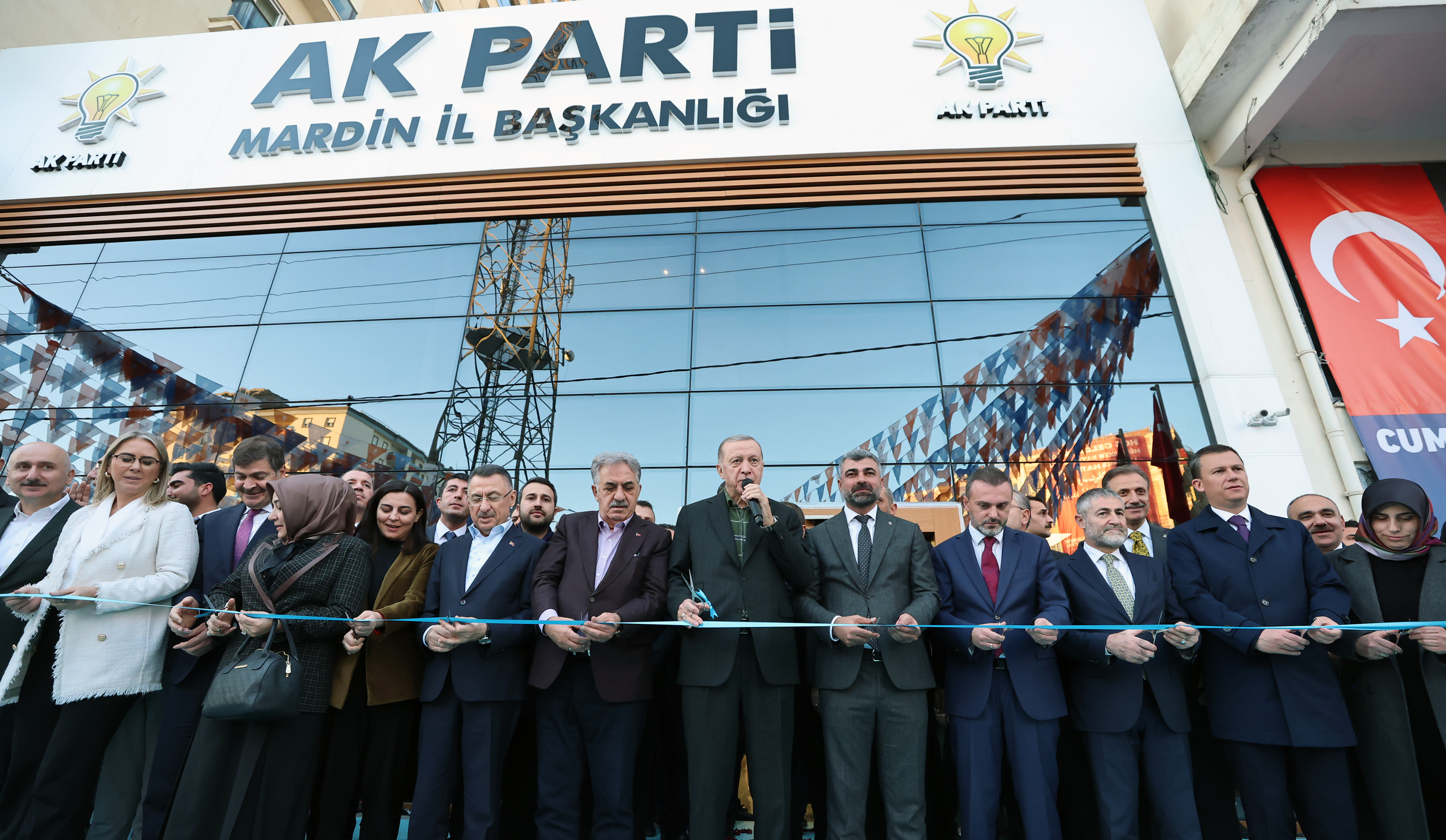 Açılışta, "Partimizin Mardin il hizmet binasının, yeni hizmet alanının tüm Mardin'imize, Mardinli kardeşlerime hayırlı olmasını temenni ediyorum." diyen Cumhurbaşkanı Erdoğan, daha sonra parti binasına geçti.