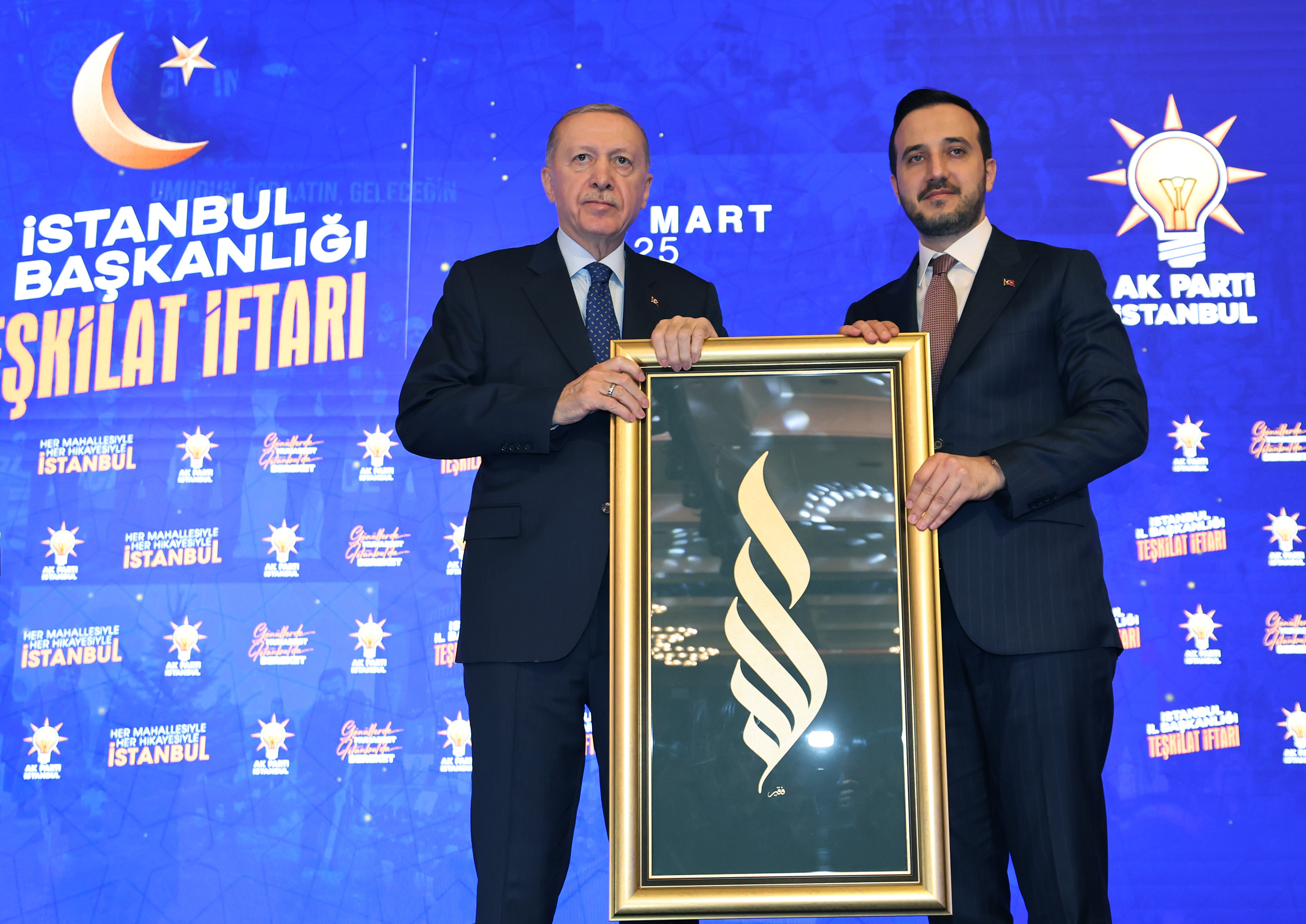 Konuşmaların ardından AK Parti İstanbul İl Başkanı Abdullah Özdemir, günün anısına Cumhurbaşkanı Erdoğan'a hediye takdim etti.