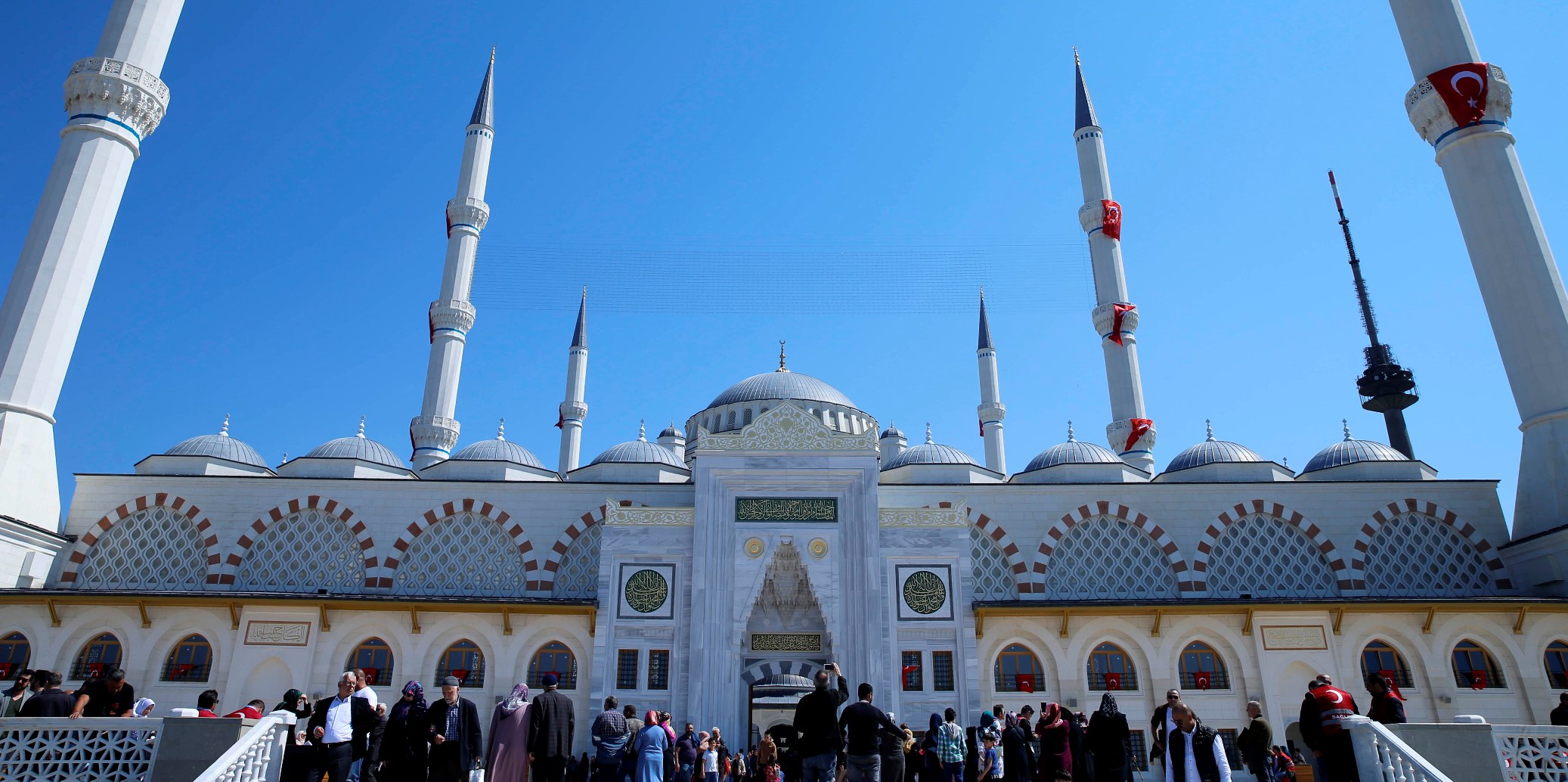 Böylesine muhteşem bir eserin şehre kazandırılmasında emeği geçen mimarından, mühendisinden, işçisine, sanatçısına, hayırseverinden tezhip ve tezyin ustalarına kadar herkese şükranlarını sunan Erdoğan, kentin güzelliğine güzellik katan caminin içinden cemaati, minarelerinden ezanı, kubbesinden Kur'an nidalarını kıyamete kadar eksik etmesin diye Allah'a dua ettiğini söyledi.