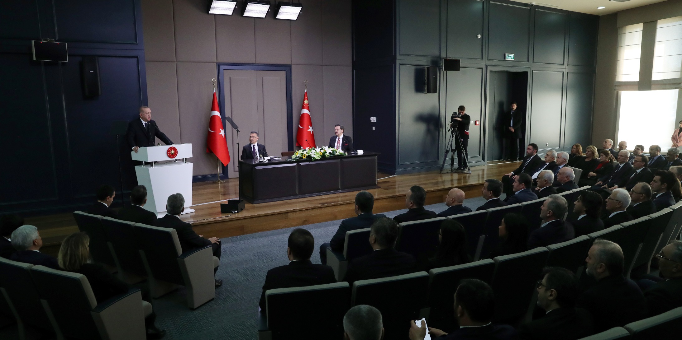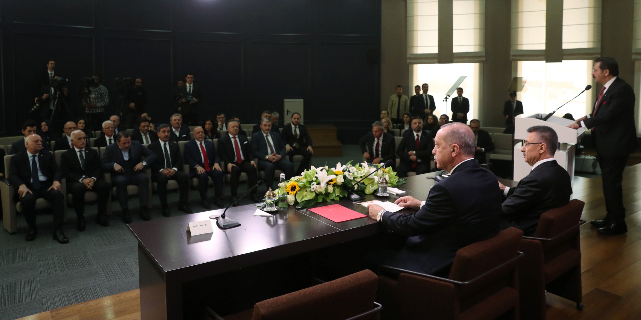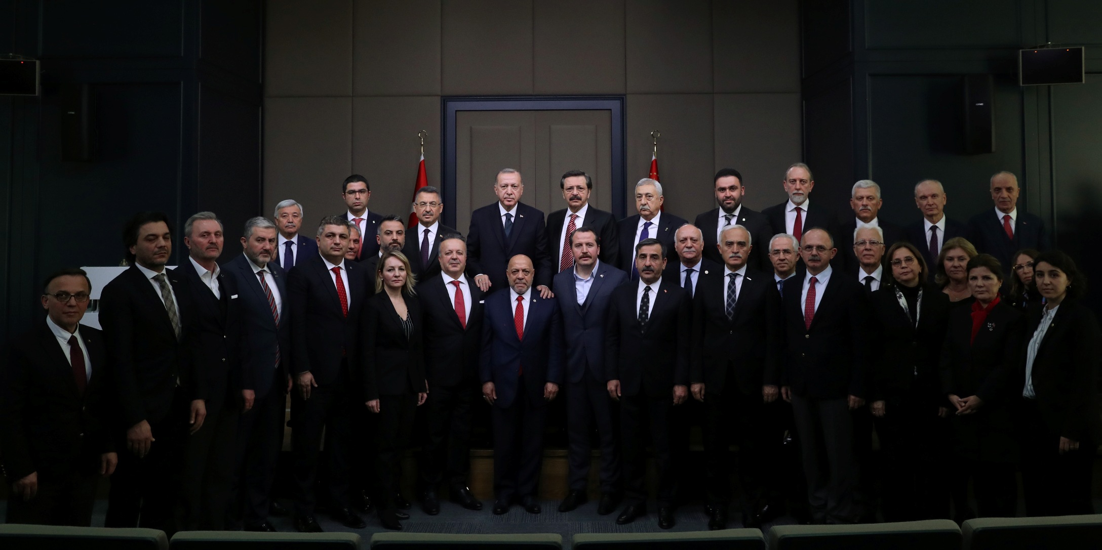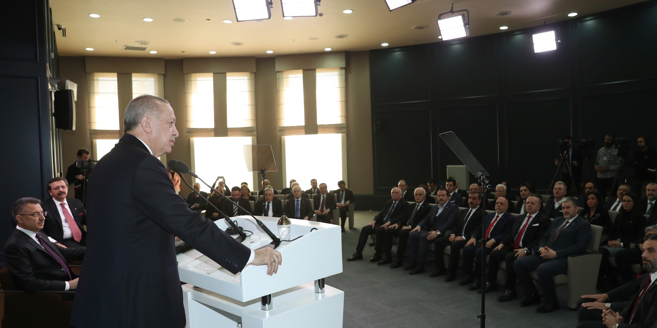 Kendisini dinleyenleri selamlayarak konuşmasına başlayan Erdoğan, Türkiye'nin Suriye sınırlarında ve özellikle İdlib'de tarihi bir mücadele verdiği bu dönemde, gösterdikleri birlik ve beraberlik için Hisarcıklıoğlu ve STK temsilcilerine teşekkür etti.