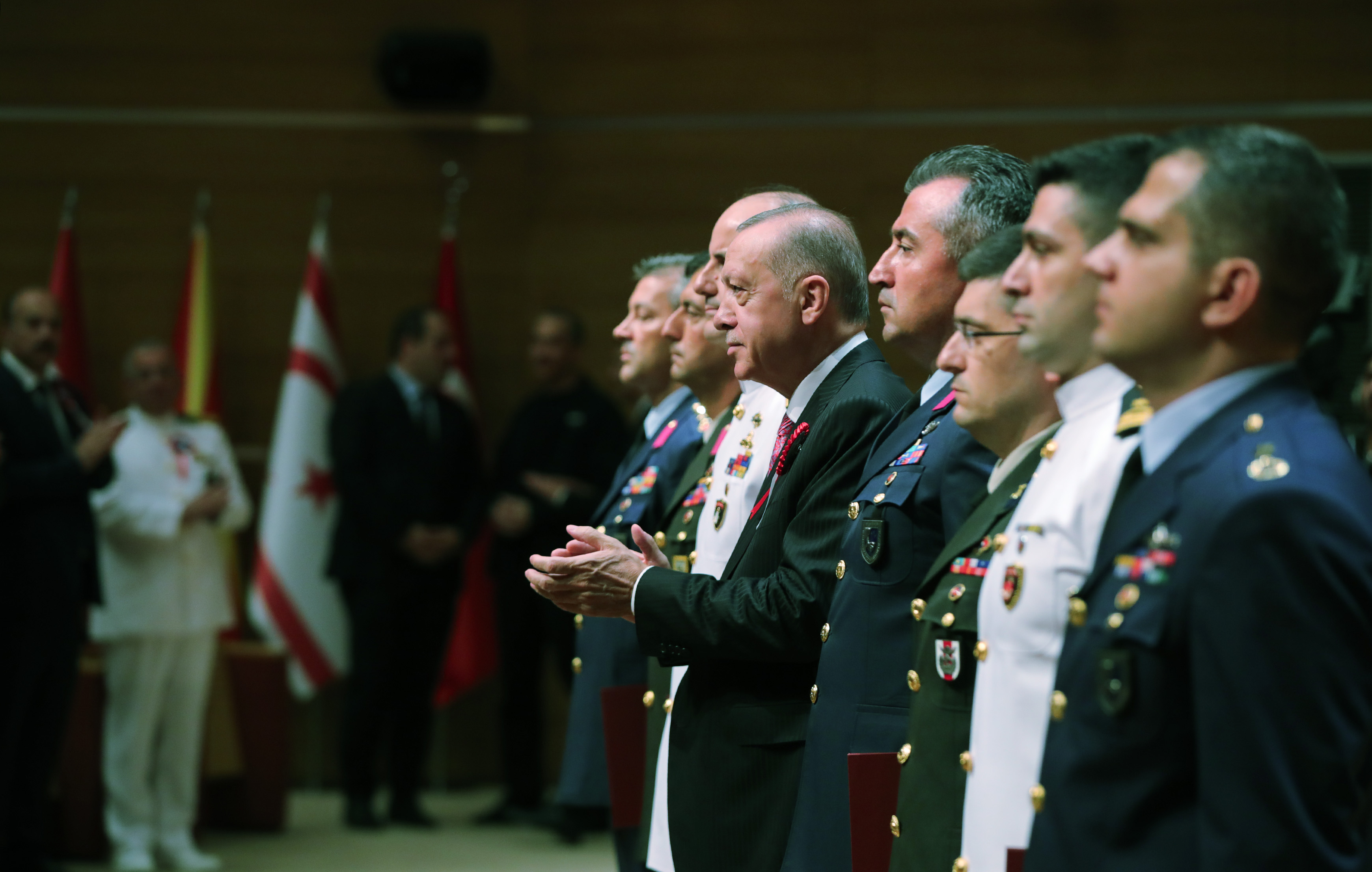 İyi eğitimli, nitelikli, milletine ve devletine sadakatle bağlı, maneviyatı güçlü, disiplinli bir personel yapısı ve Allah'ın izniyle ordunun karada, denizde ve havada üstesinden gelemeyeceği hiçbir tehdit olmadığını ifade eden Cumhurbaşkanı Erdoğan, son 6 yılda harekât alanlarında gösterdiği "dosta güven, düşmana korku veren" başarılarıyla Türk Silahlı Kuvvetlerinin dünyanın sayılı ordularının başında geldiğini aktardı.