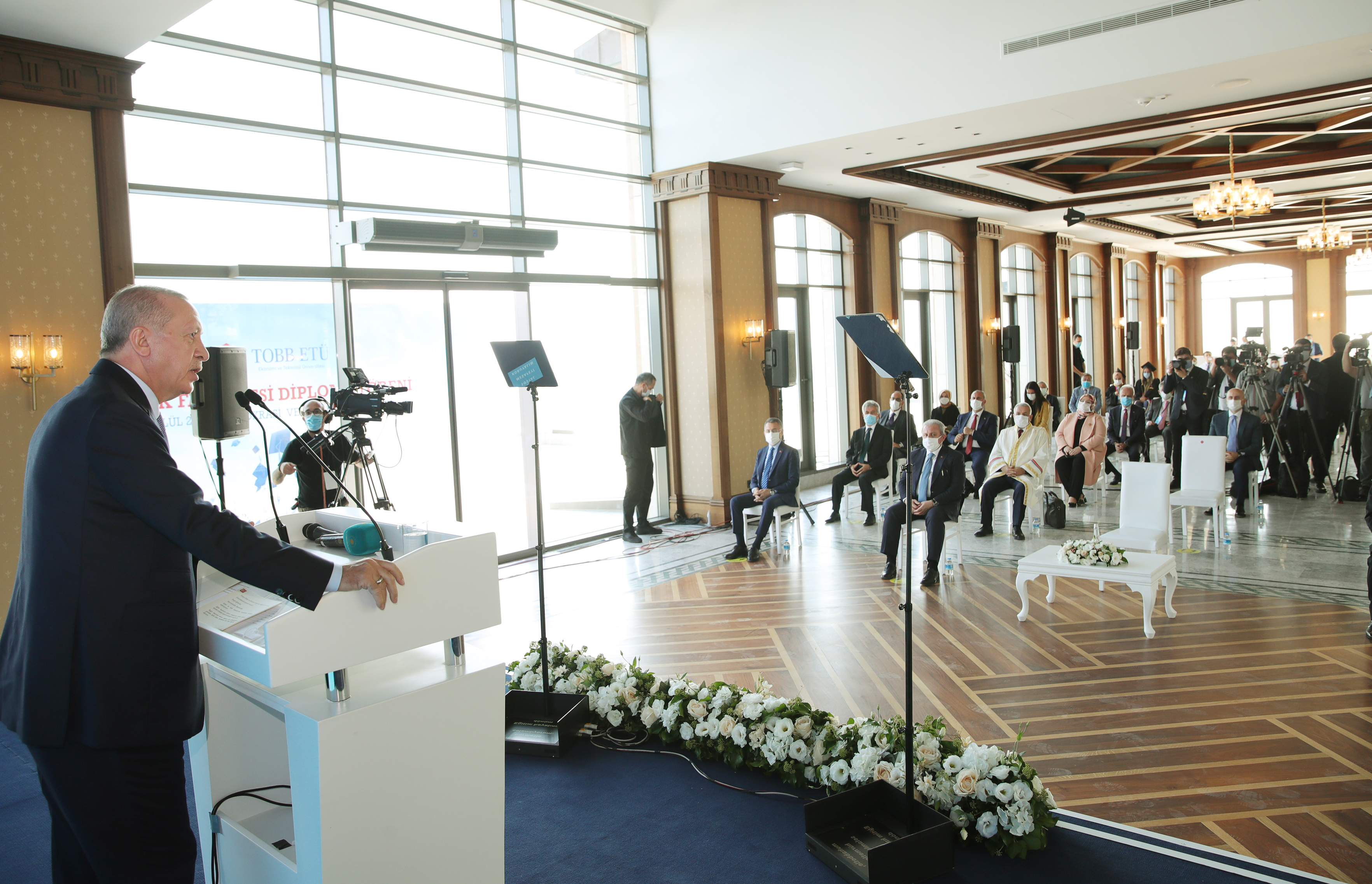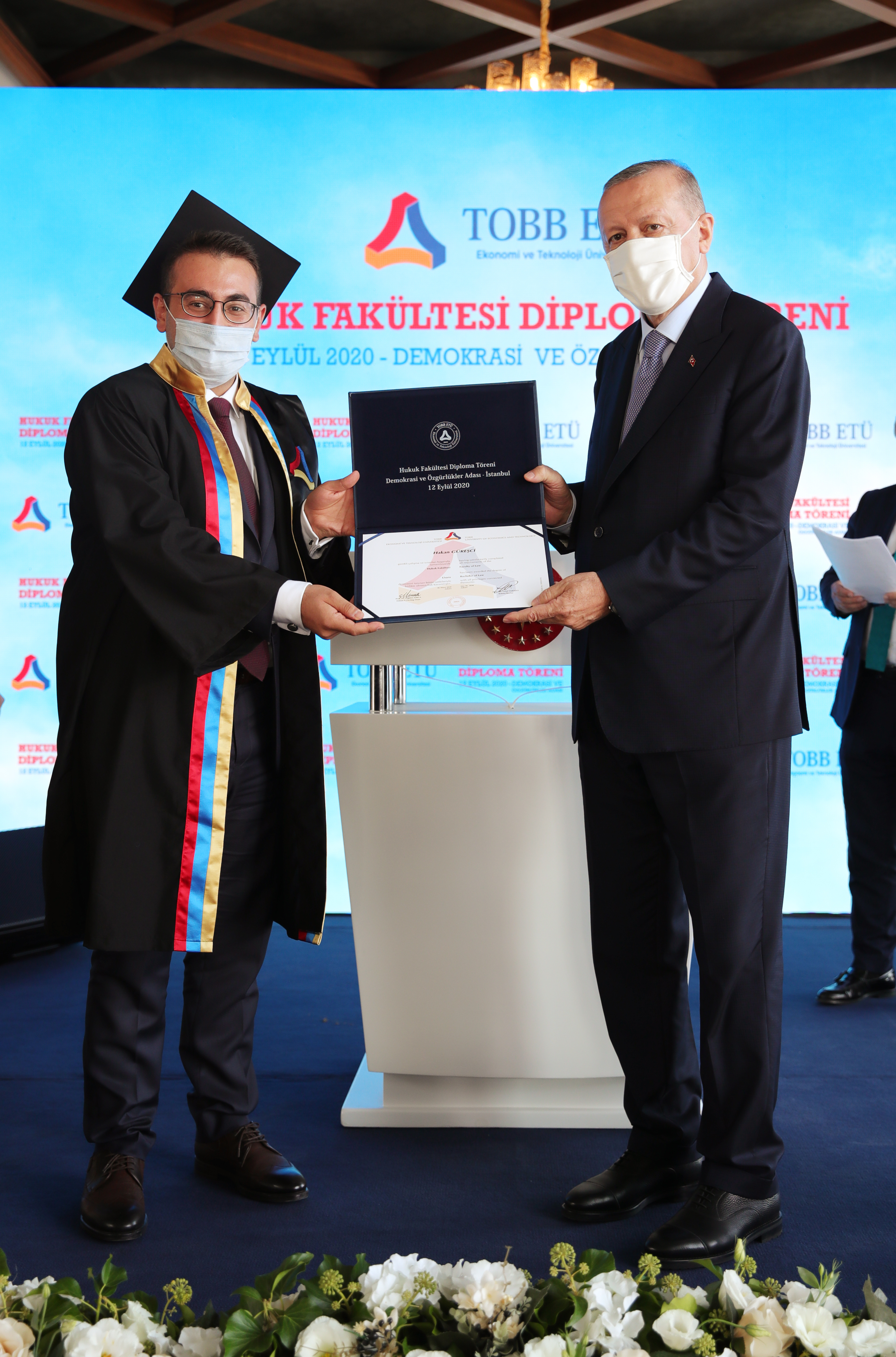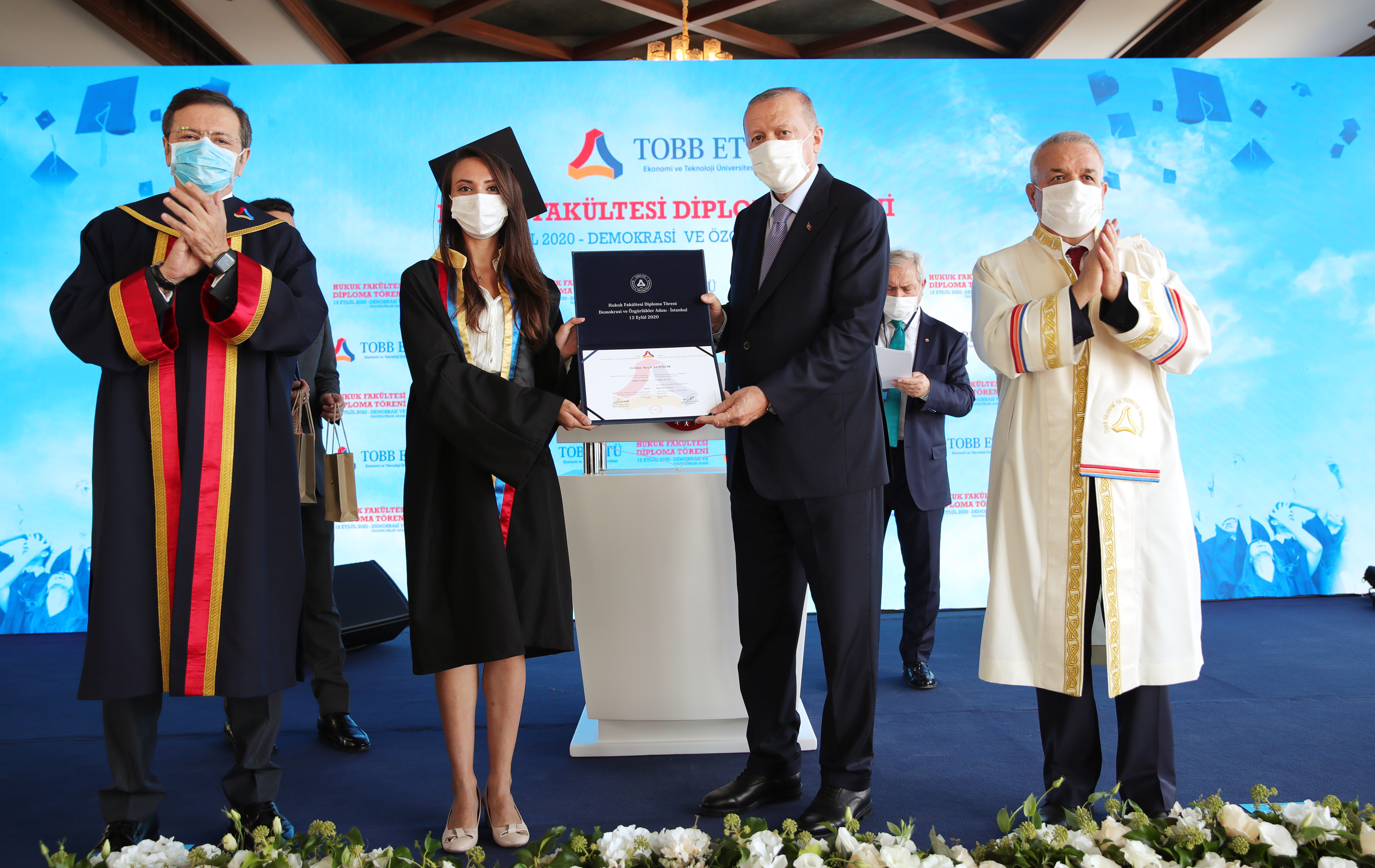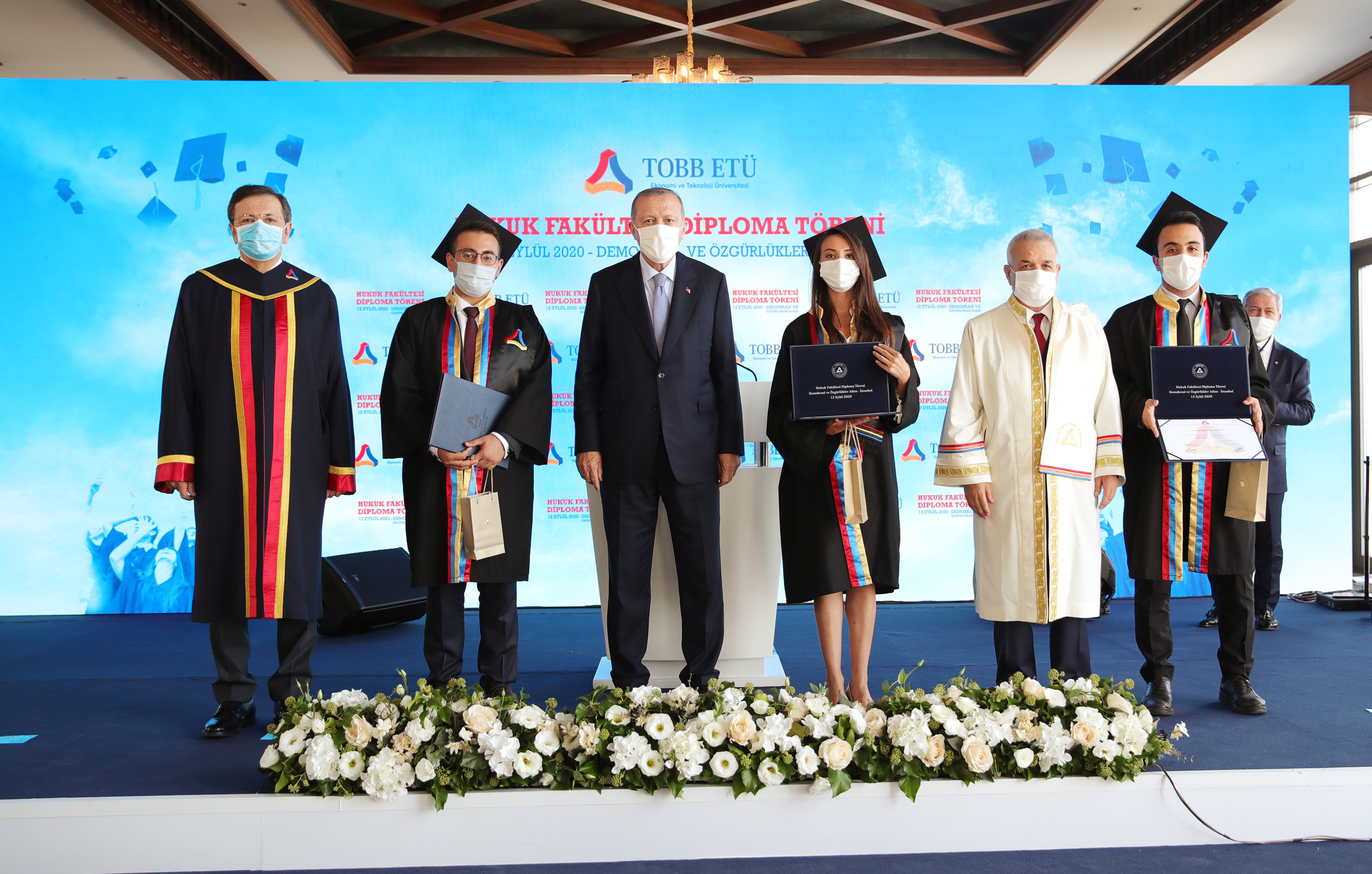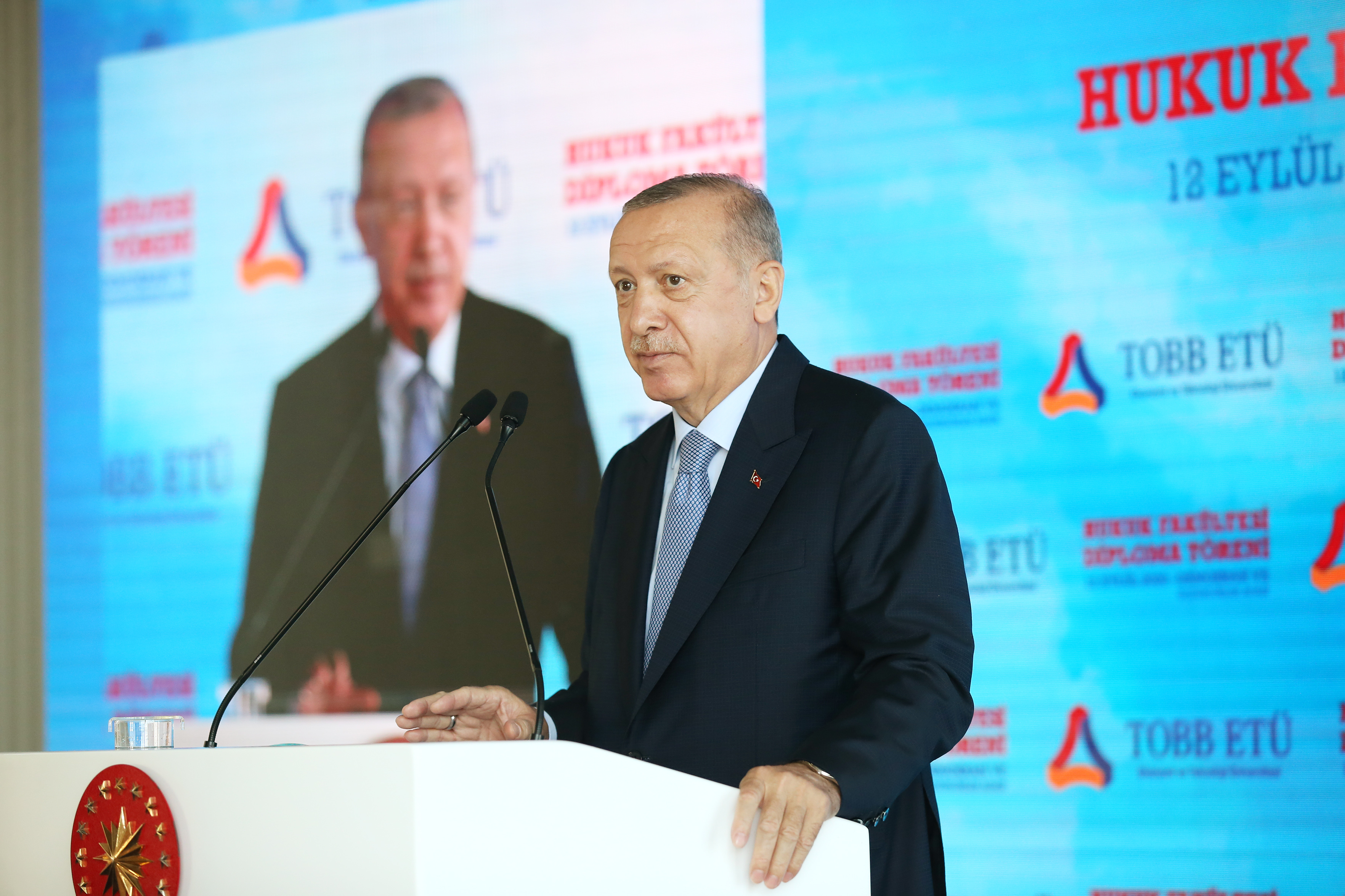Cumhurbaşkanı Erdoğan, Demokrasi ve Özgürlükler Adası'nda düzenlenen Türkiye Odalar ve Borsalar Birliği (TOBB) Ekonomi ve Teknoloji Üniversitesi (ETÜ) Hukuk Fakültesi Mezuniyet Töreni'nde yaptığı konuşmada sözlerine, bugün mezuniyet sevinci yaşayan tüm öğrencileri tebrik ederek başladı.
