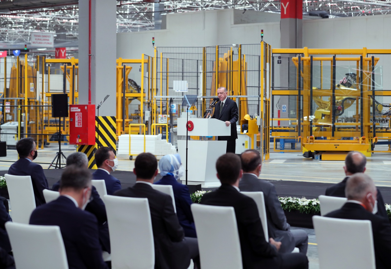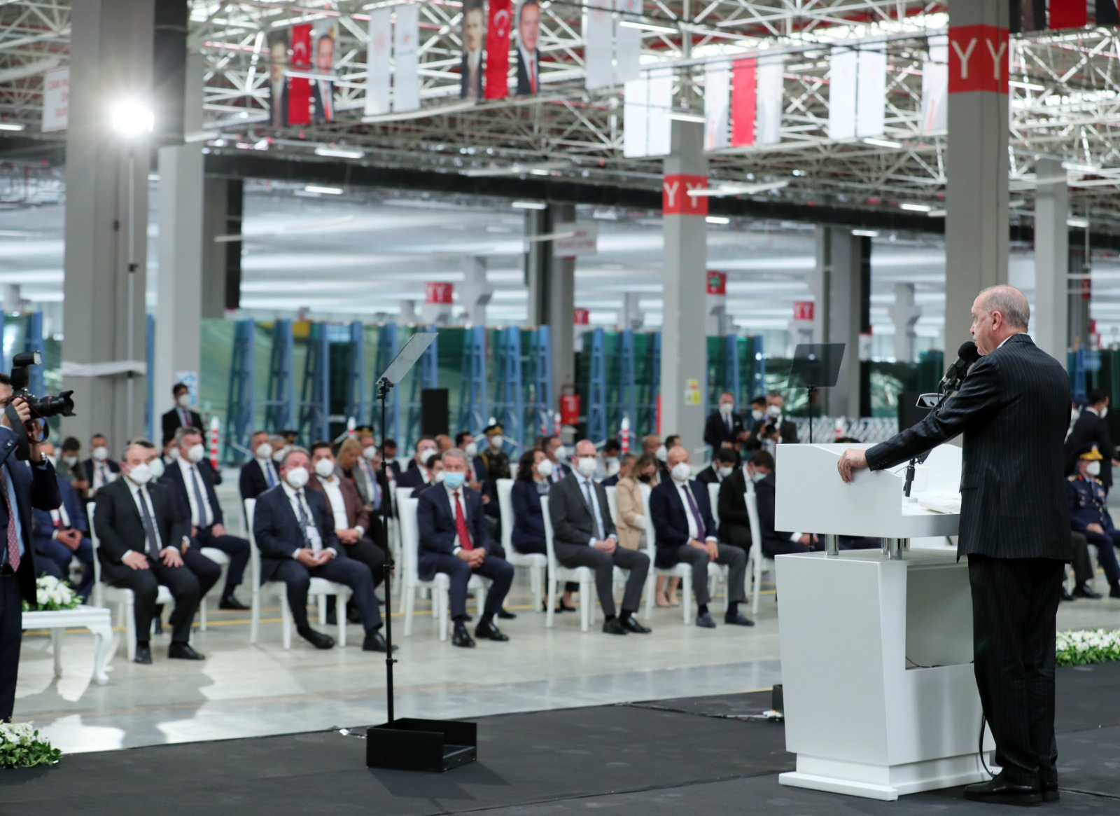 Üretim süresi devam eden yerli otomobile de değinen Cumhurbaşkanı Erdoğan, "Otomotiv sektöründe yaşanan yapısal değişimi, üretim süresi devam eden Türkiye'nin otomobili ile yakalayacağımıza inanıyoruz. Kendi tasarımımız olan elektrikli aracımızı, 2022 yılının sonunda banttan indirmeyi hedefliyoruz." diye konuştu.