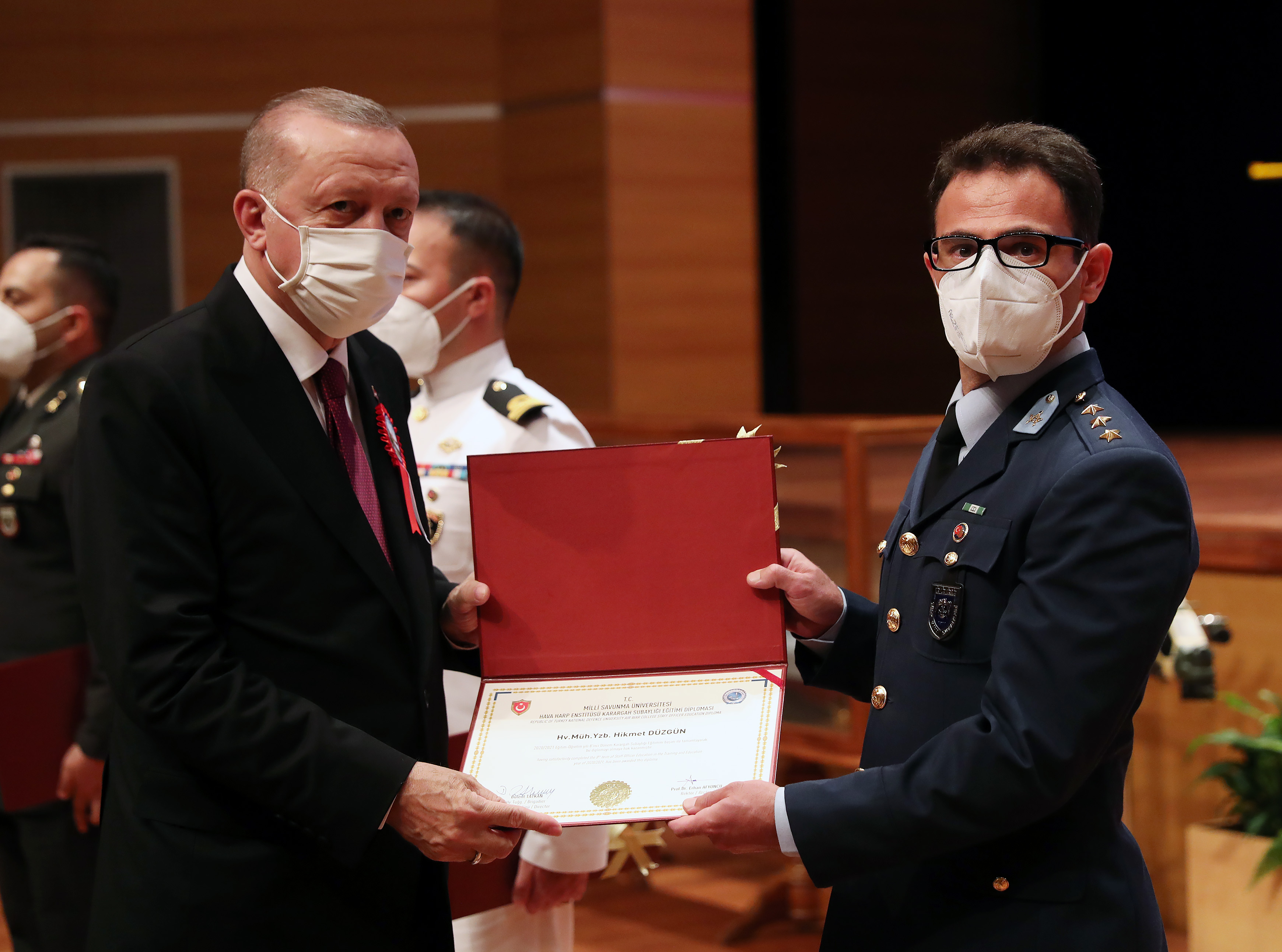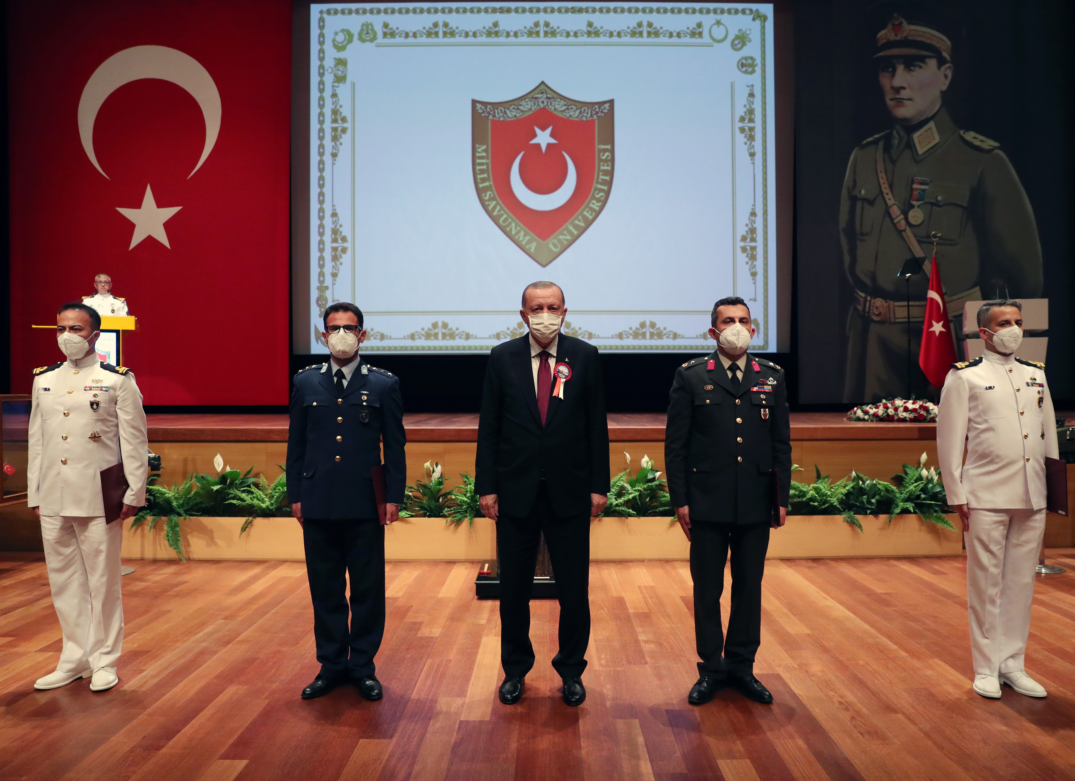 Cumhurbaşkanı Recep Tayyip Erdoğan, Milli Savunma Üniversitesi mezuniyet töreninde yaptığı konuşmada, “Türkiye’nin savunma sanayi teknolojilerinde geçtiğimiz 15-20 yılda katettiği mesafe, tüm dünyanın dikkatle takip ettiği, örnek aldığı bir başarı hikayesidir. Aynı başarıyı, Milli Savunma Üniversitemizde subay ve astsubay eğitimi alanında da görüyoruz. Ordumuzun er, erbaş seviyesindeki insan kaynağıyla ilgili yeni modeller de oldukça tatminkar bir şekilde yürüyor.” dedi.