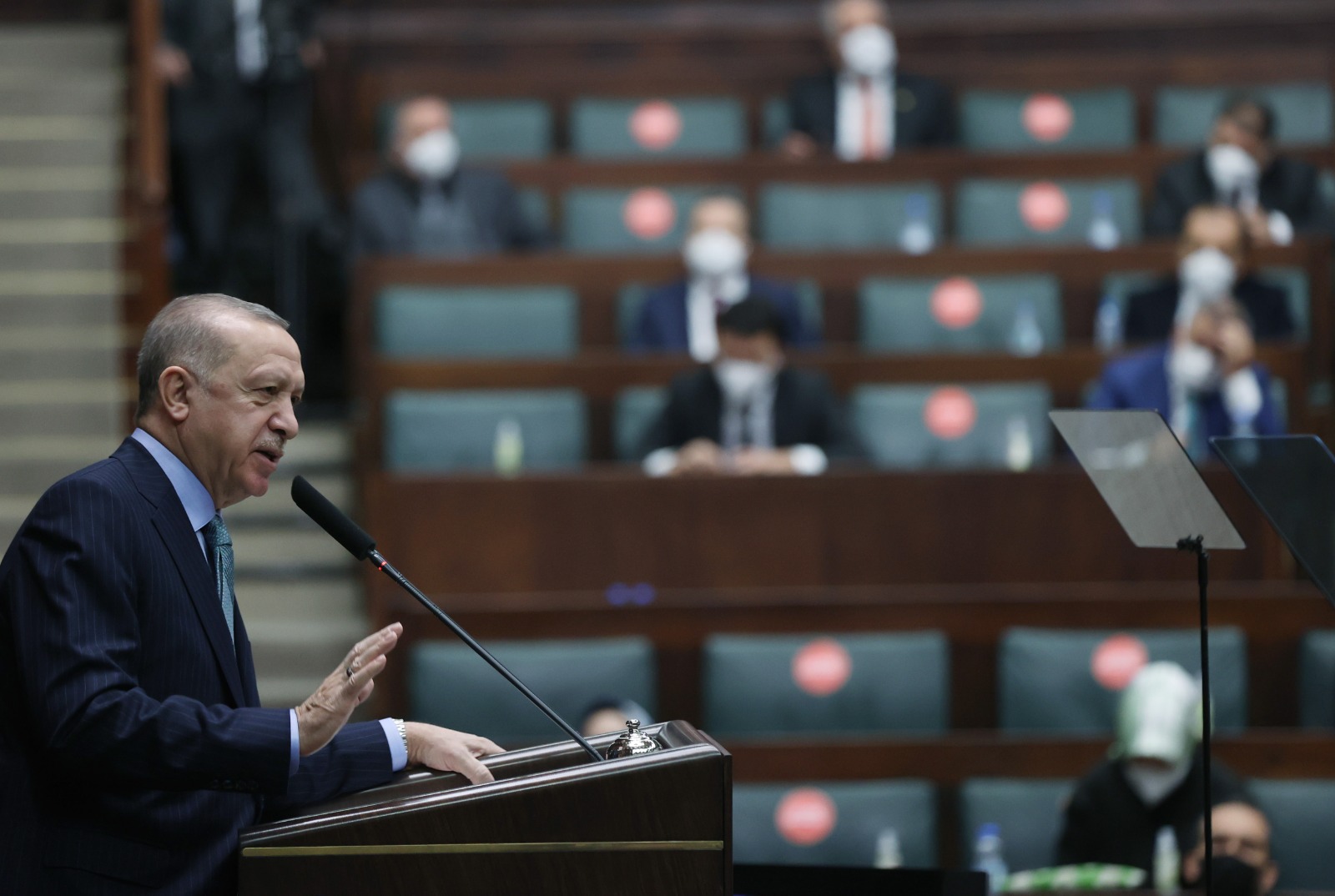 Gelişmiş ülkeler başta olmak üzere tüm dünyada ekonomiler geçen yıl ciddi bir daralma yaşarken Türkiye'nin büyümesini sürdürebilen az sayıdaki devlet arasında yer aldığına dikkati çeken Cumhurbaşkanı Erdoğan, "Bir süredir maruz kaldığımız ekonomik tuzaklarla mücadele ederken salgın bahanesiyle yeni bir finansal dalgalanma oluşturmak isteyenlere elimizdeki tüm araçları kullanarak fırsat vermedik. Kılıçdaroğlu'nun sürekli sorup durduğu dövizlerin önemli bir bölümü, işte bu mücadelede kullanılmıştır." değerlendirmesinde bulundu.