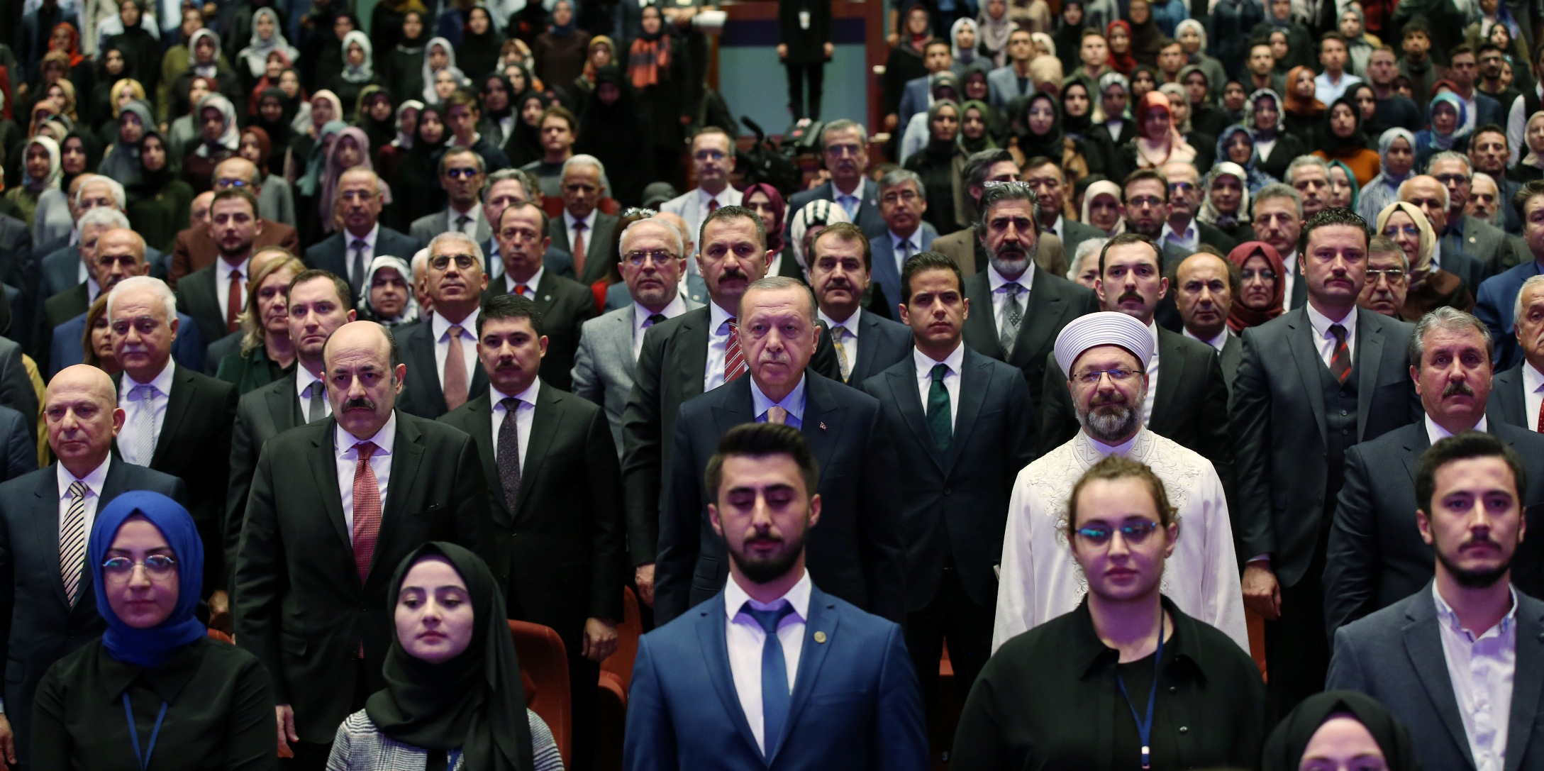 Erdoğan, Türkiye'nin yeniden İslam coğrafyasının umudu haline gelmesinde hep birlikte verilen mücadelenin büyük katkısı olduğunu ifade ederek, şöyle konuştu: