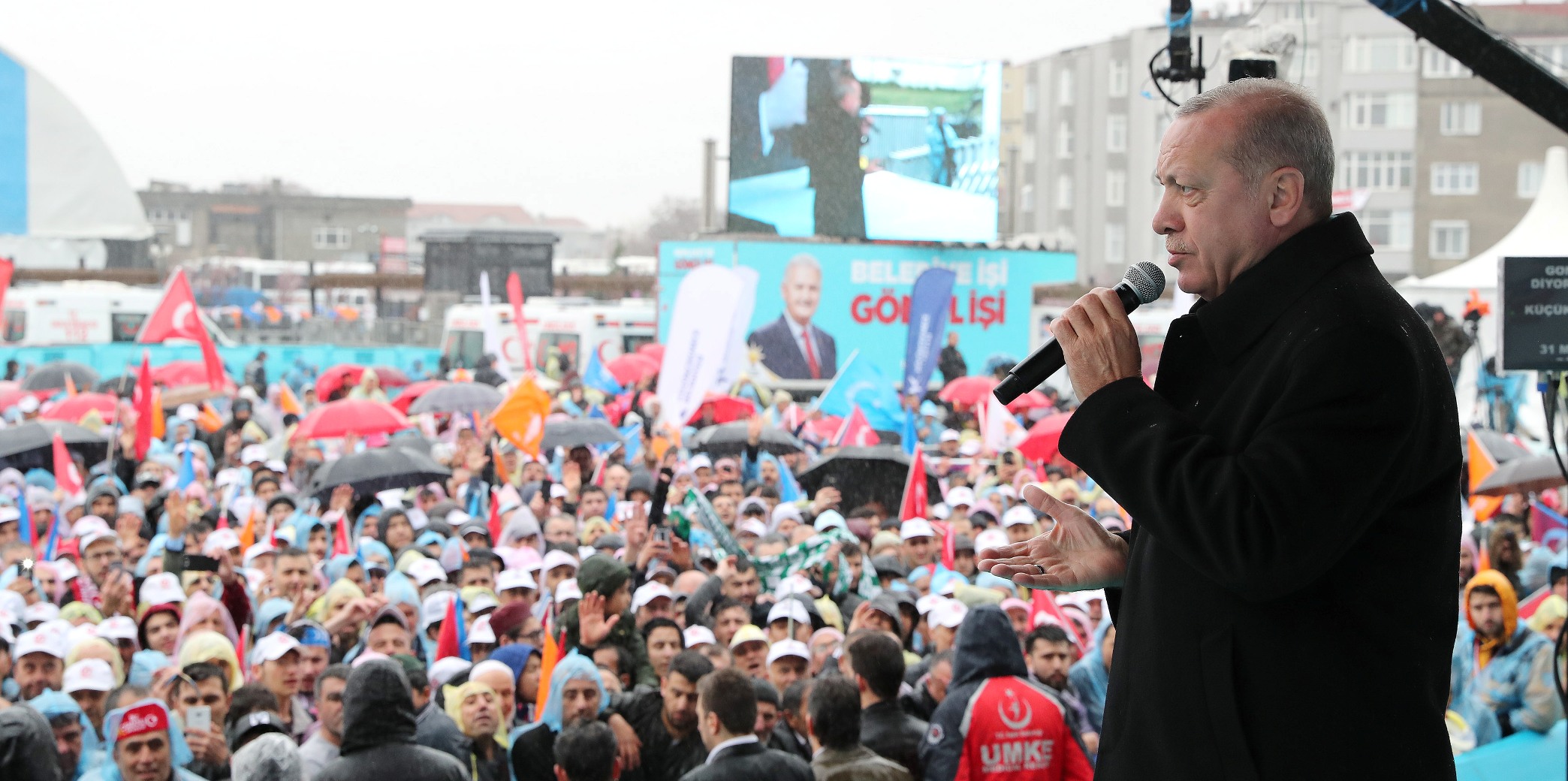 Onun için rabiamız var. Tek millet, tek bayrak, tek vatan, tek devlet. Bu topraklar, bölünemez. Bir olacağız, iri olacağız, diri olacağız, kardeş olacağız, hep birlikte Türkiye olacağız. Milletimizle birlikteliğimize, beraberliğimize, kardeşliğimize sıkı sıkıya sahip çıktığımız sürece bu ülkeye diz çöktüremeyecekler. Sınırlarımıza da, bayrağımıza da, ezanımıza da, ekonomimize de saldırsalar, millete diz çöktürtemeyecekler, bu nedenle 31 Mart beka seçimidir."