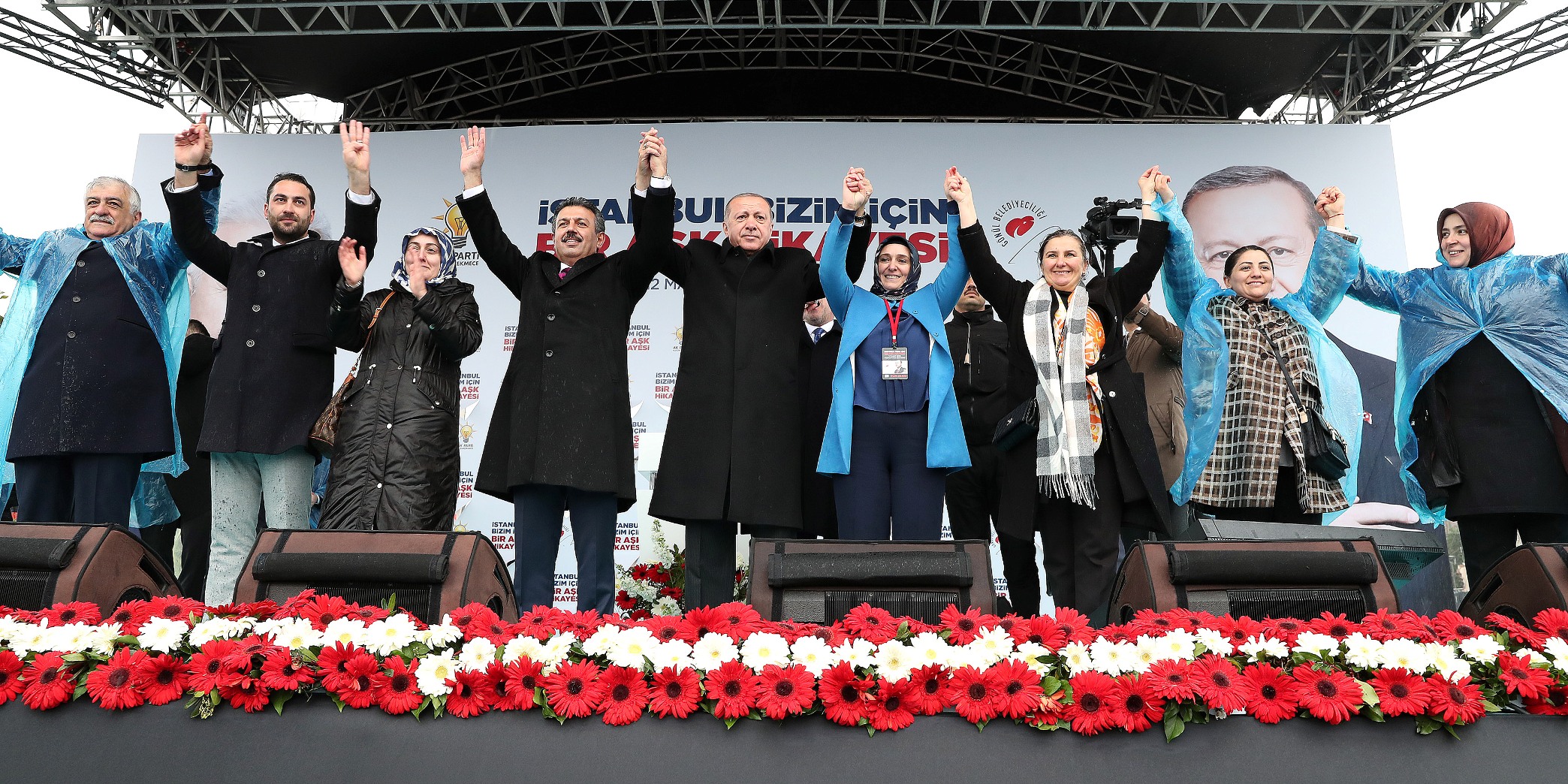 Şimdi ise çok daha farklı bir İstanbul'da yaşanıldığını dile getiren Erdoğan, mitinge katılan vatandaşlarla "Beraber yürüdük biz bu yollarda, beraber ıslandık yağan yağmurda, şimdi dinlediğim tüm şarkılarda bana her şey sizi hatırlatıyor, bana her şey Küçükçekmece'yi hatırlatıyor." dizelerini seslendirdi.