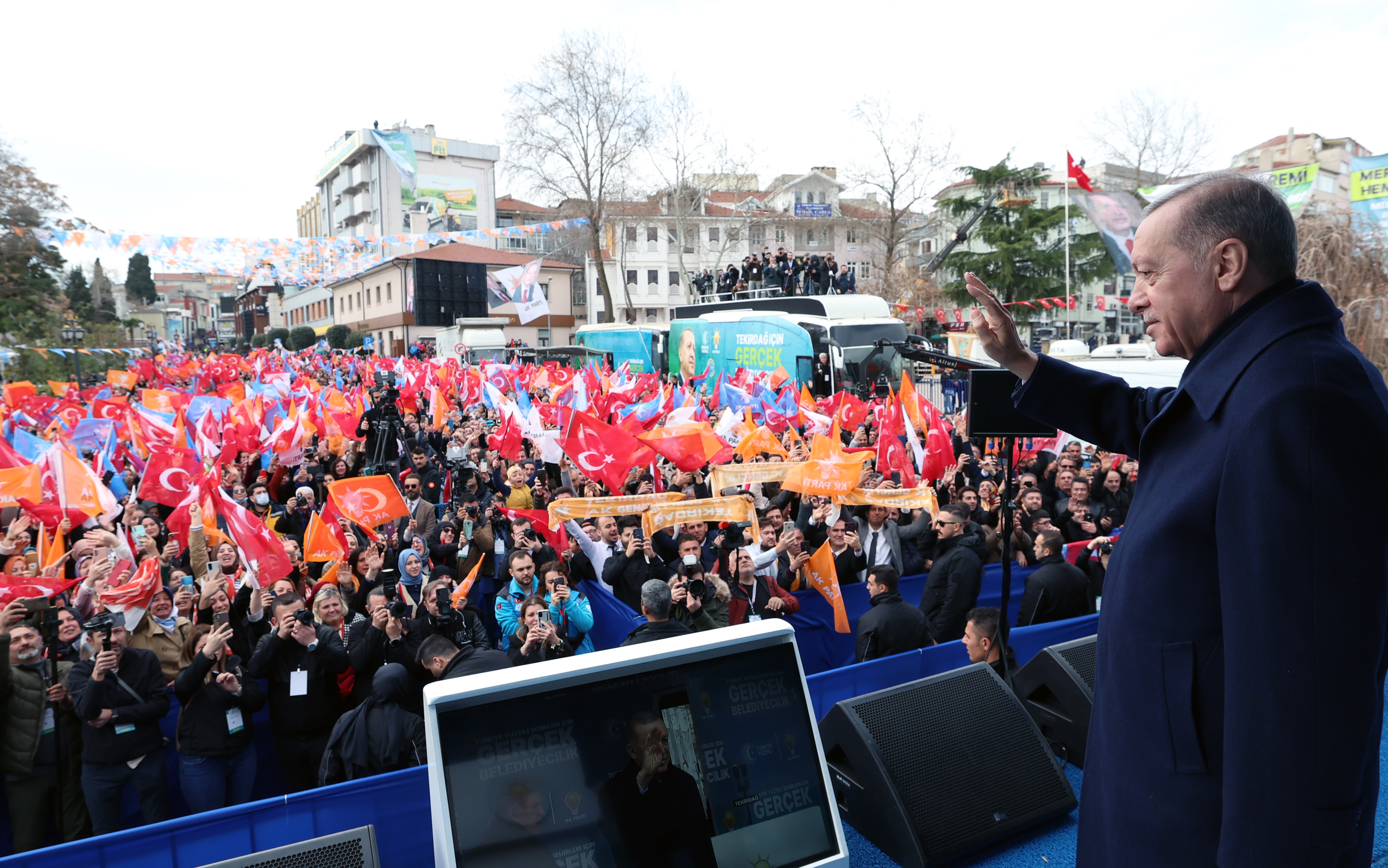 Cumhurbaşkanı Erdoğan, Tekirdağlıların 31 Mart'ta sandıklara gittiğinde en doğru, en isabetli kararı vereceğinden şüphe duymadığını dile getirerek, meydandakilere, "Gençler öyle mi? Şimdi Tekirdağ'a soruyorum, hazır mıyız? Tekirdağ, 31 Mart'ta Türkiye Yüzyılı şehirleri için hazır mıyız? 31 Mart'ta Türkiye Yüzyılı şehirleri için kararlı mıyız? 31 Mart'ta gerçek belediyeciliği tercih ediyor muyuz? Bunun için seçim gününe kadar kapı kapı dolaşmaya var mıyız? Büyük ve güçlü Türkiye vizyonumuza sıkı sıkıya sahip çıkmaya var mıyız? Seçim akşamı Tekirdağ'la birlikte Türkiye haritasını Cumhur İttifakı'nın renkleriyle boyamaya var mıyız?" sorularını yöneltti.