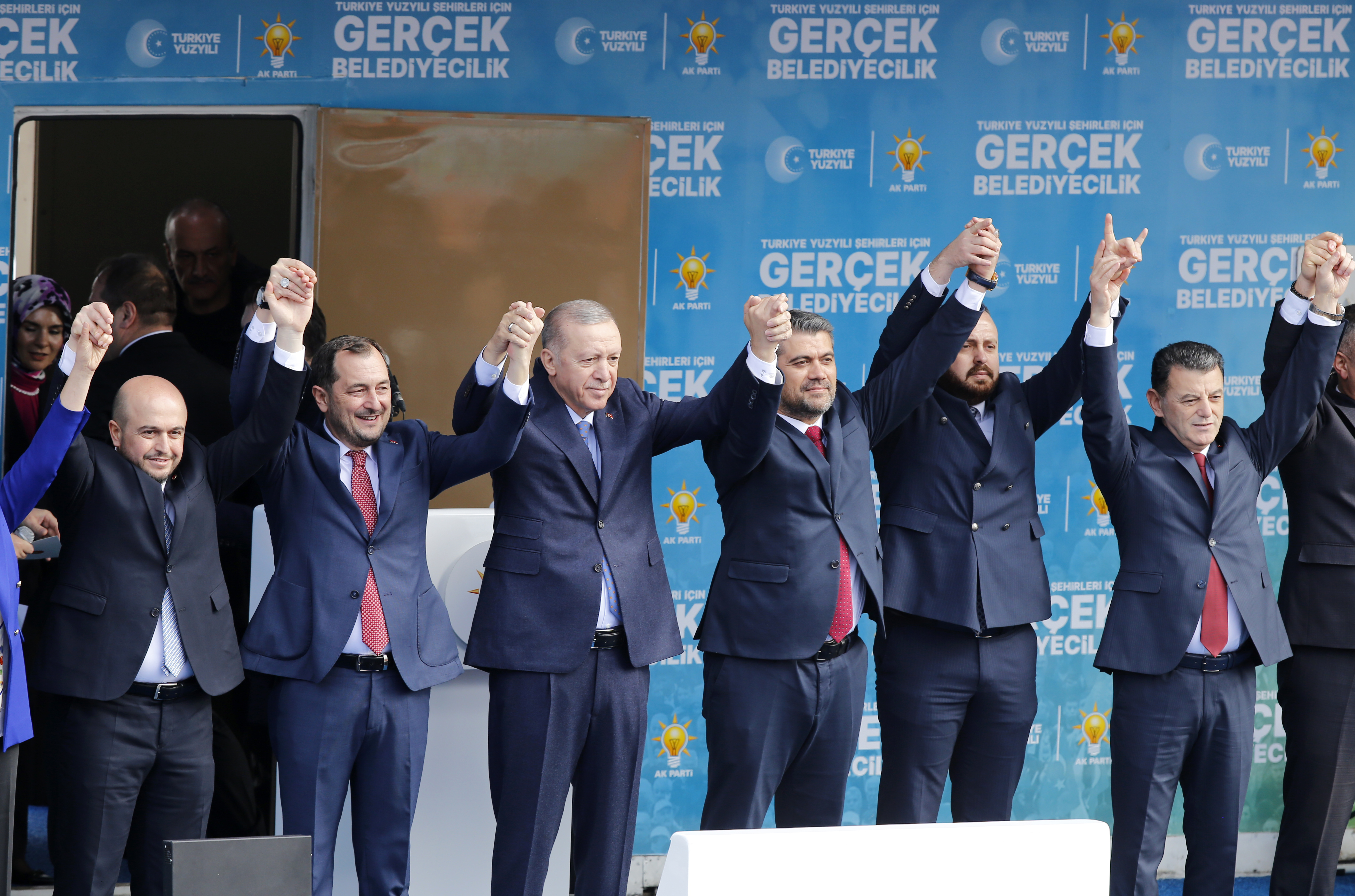 CHP'nin idare ettiği illerde vatandaşların vizyoner projelerle tanışmayı bırakın klasik belediyecilik hizmetlerini bile almakta zorlandığına dikkati çeken Cumhurbaşkanı Erdoğan, "Düşünebiliyor musunuz? Millet görev vermiş, yetki vermiş, imkân vermiş ama bunlar çıkıyor, temel atmamakla, asfalt dökmemekle, yol yapmamakla övünebiliyor. Kimi, belediye başkanı olduğu şehre fırsat bulursa veya yolu düşerse uğruyor. Yönetimdeki zafiyetlerinin faturasını ise ya hükümete ya vatandaşa keserek kendi kusurlarını örtmeye çalışıyor." diye konuştu.