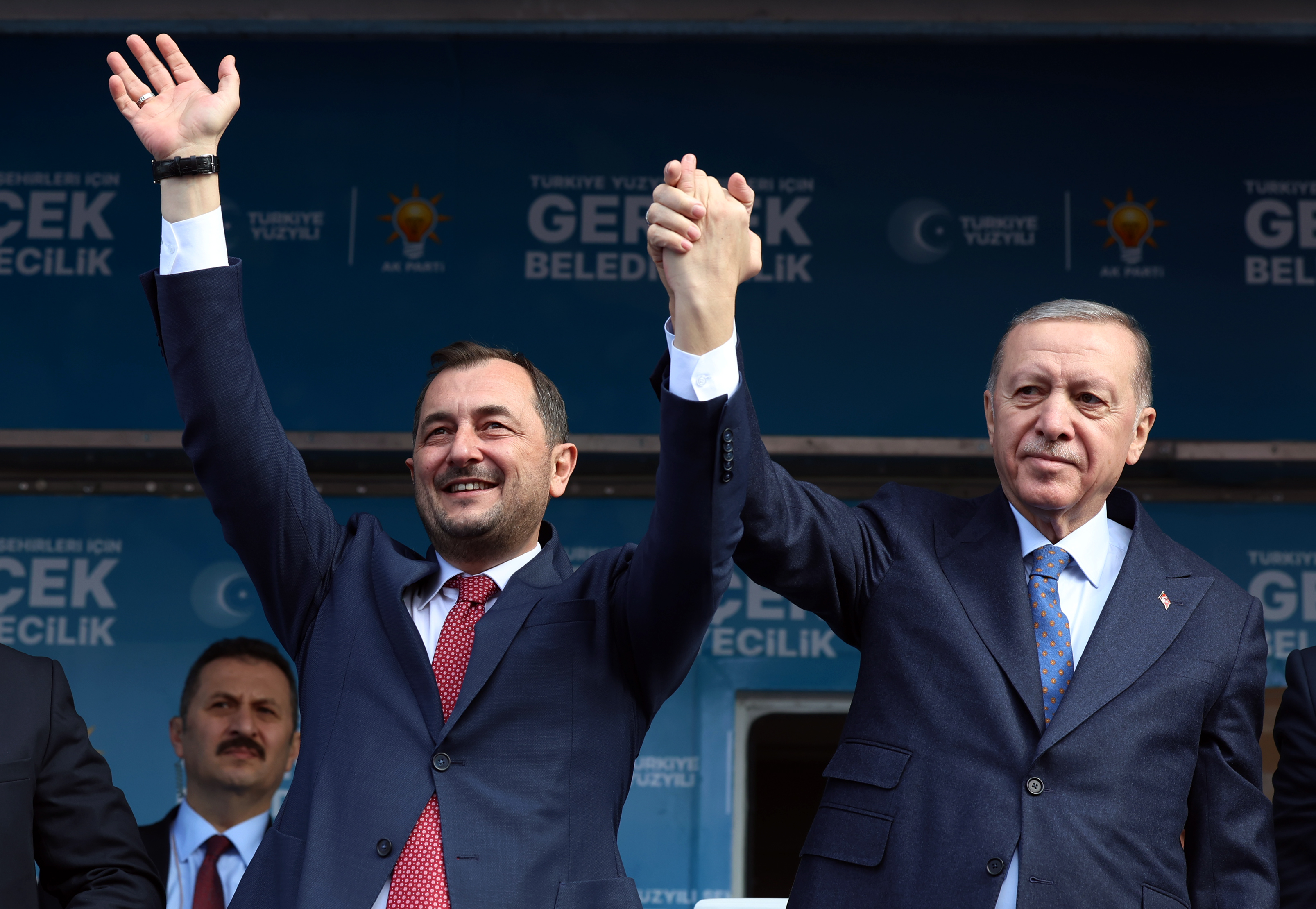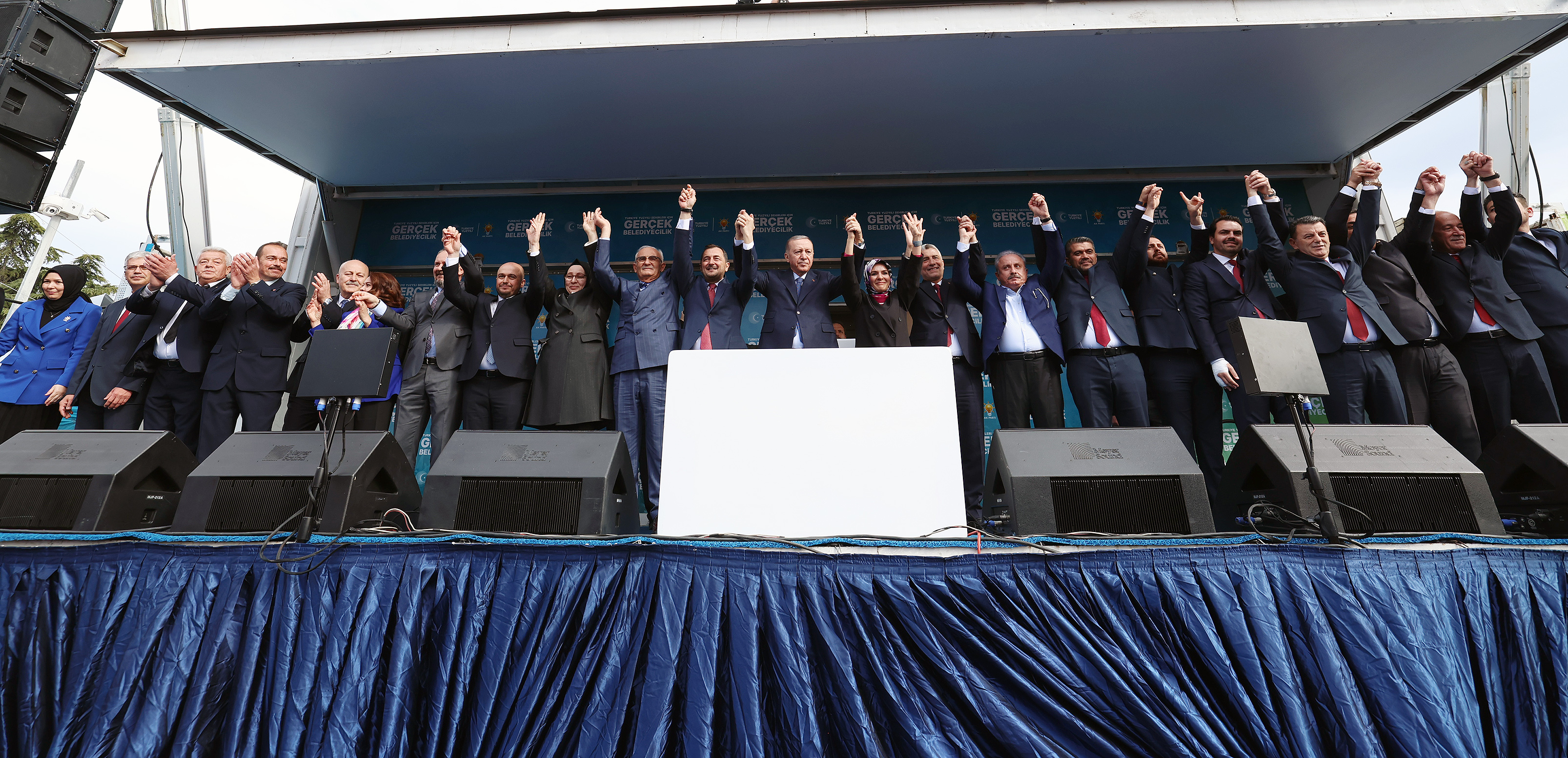 Konuşmasının ardından Cumhurbaşkanı Erdoğan, Cumhur İttifakı'nın Tekirdağ Büyükşehir Belediye Başkan adayı Cüneyt Yüksel ve ilçe belediye başkan adaylarıyla birlikte vatandaşları selamladı.